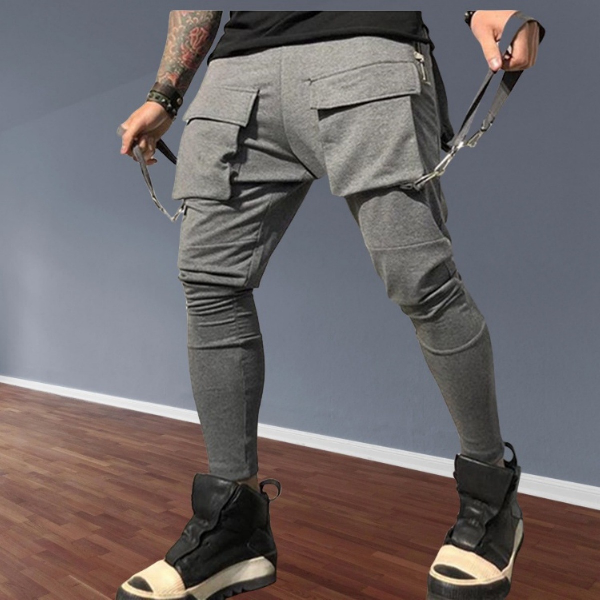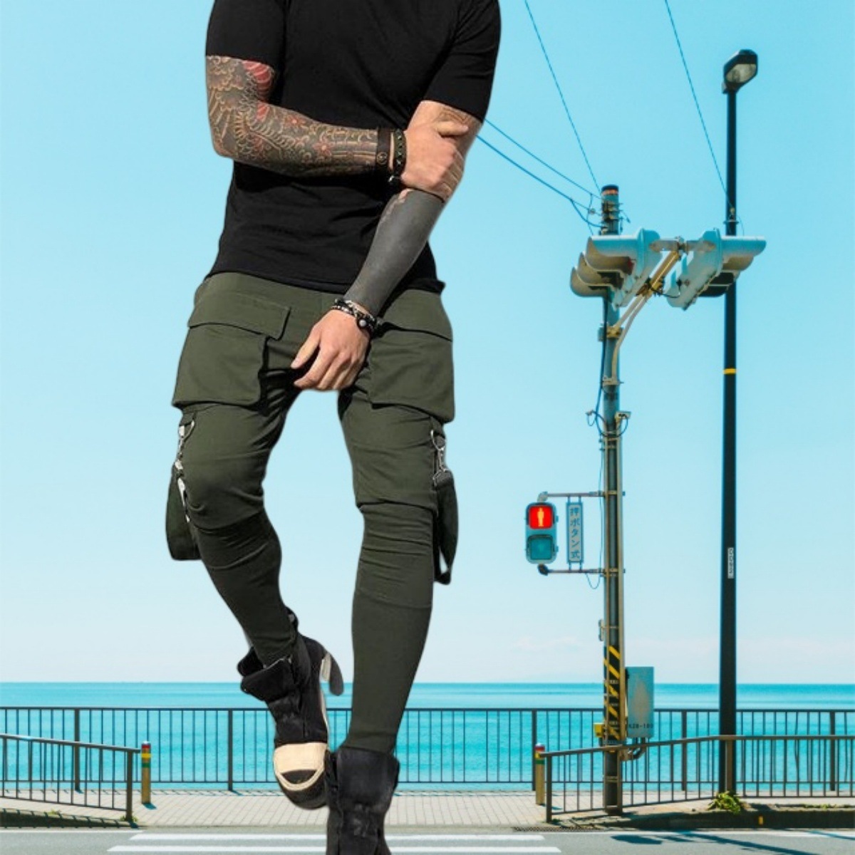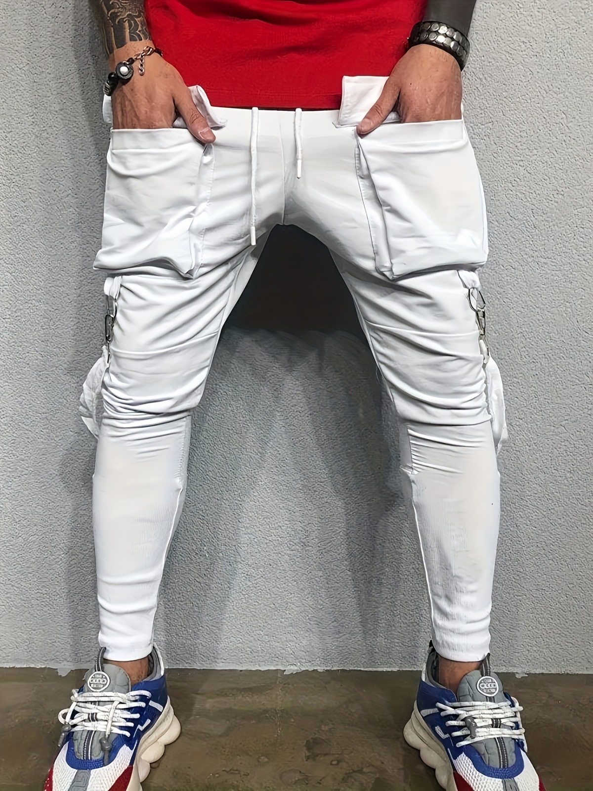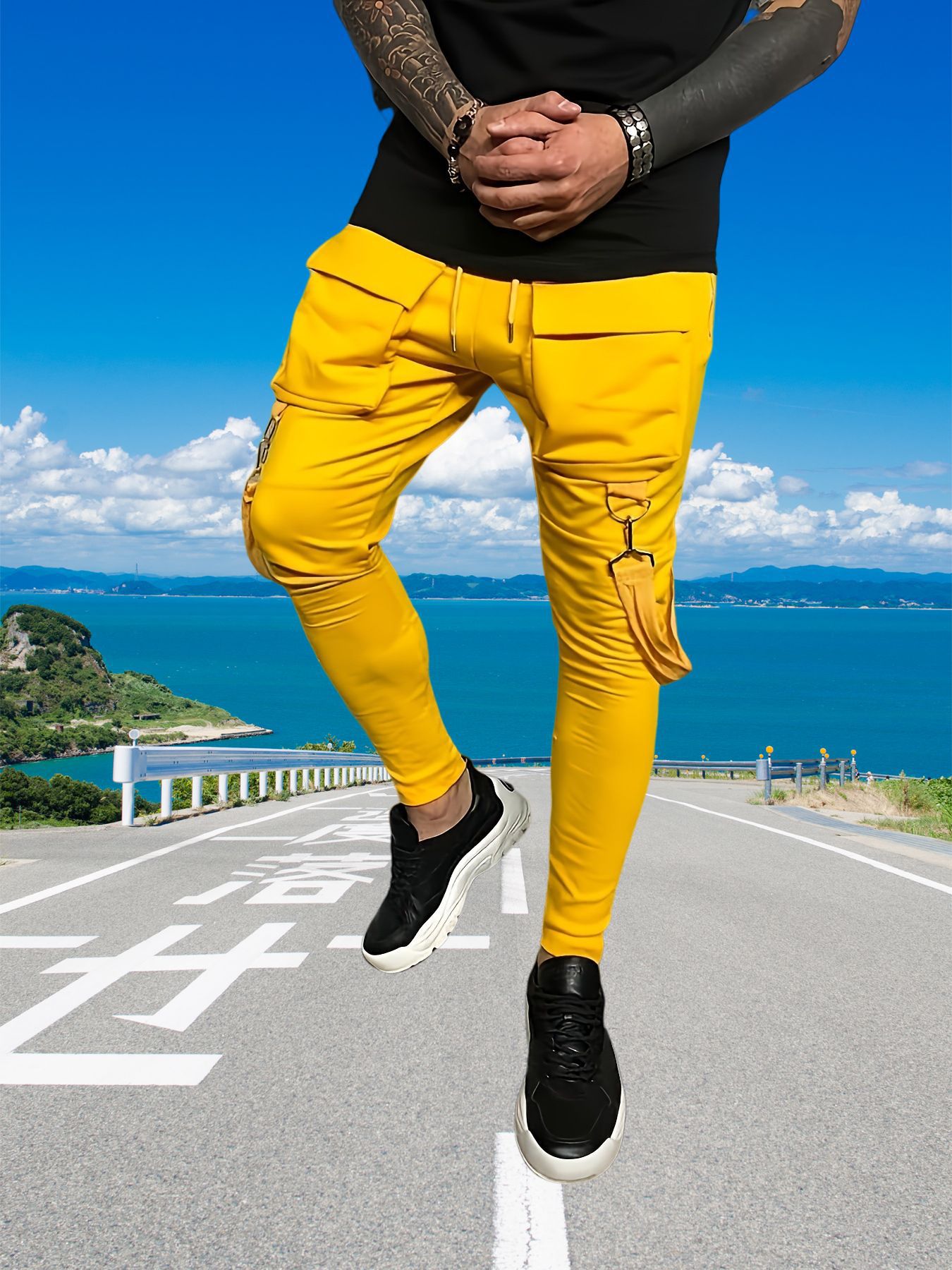 국경 새 봄과 가을 남자 풋리스 바지 남자 패션 올 매치 힙합 대형 포켓 캐주얼 스포츠 바지스토어 가기