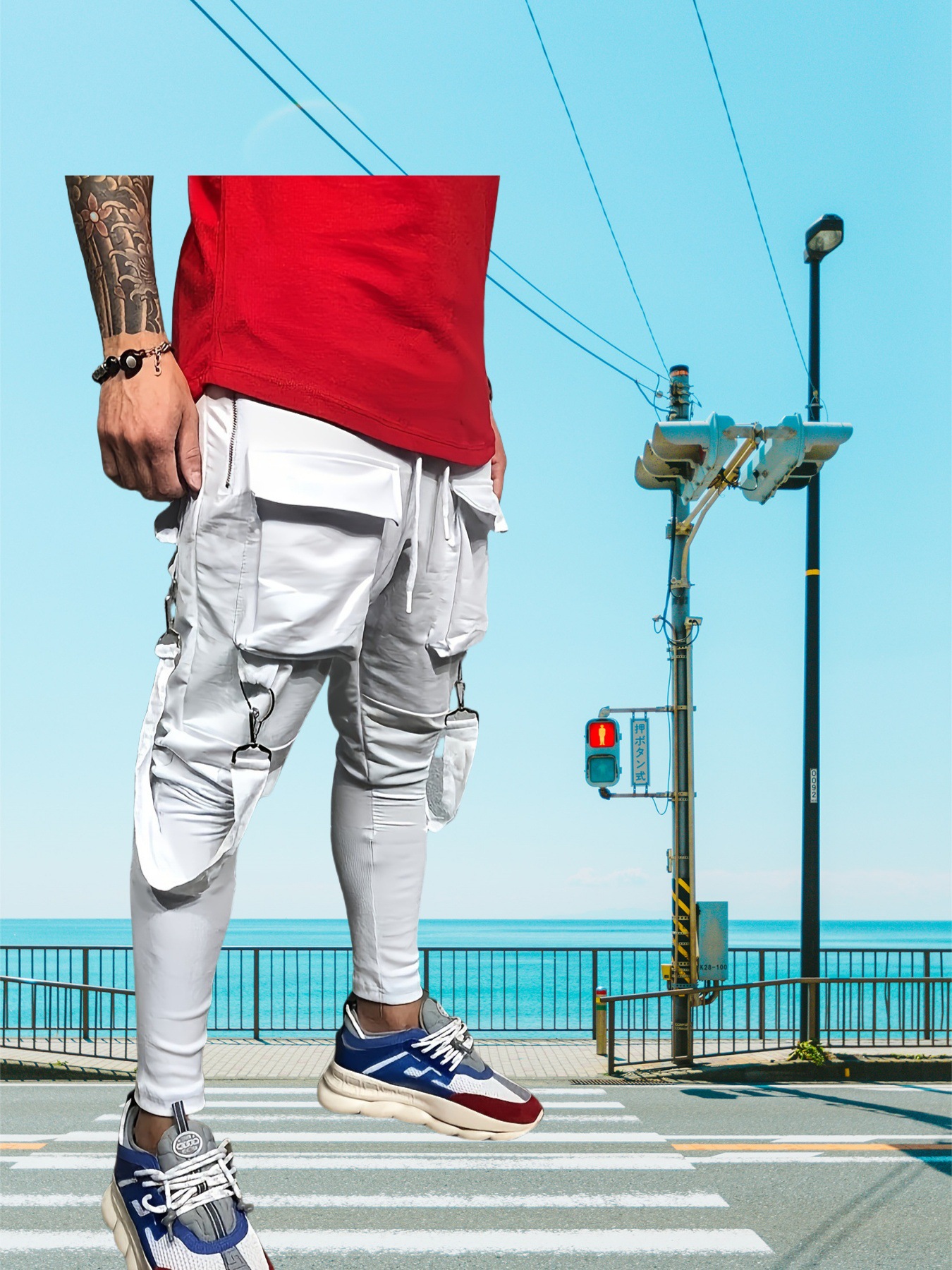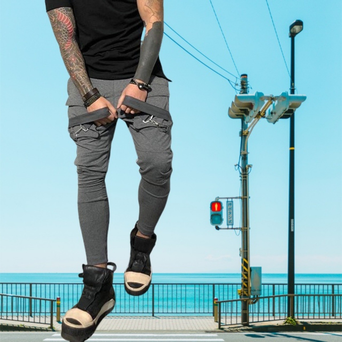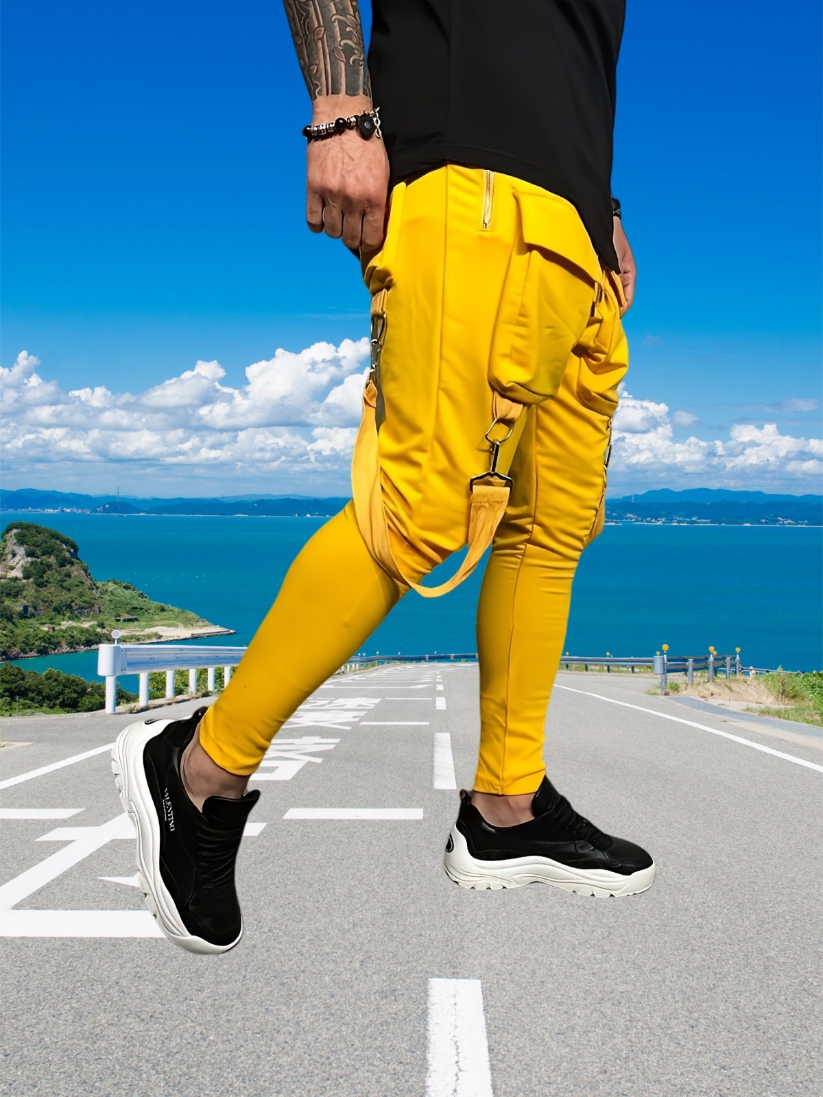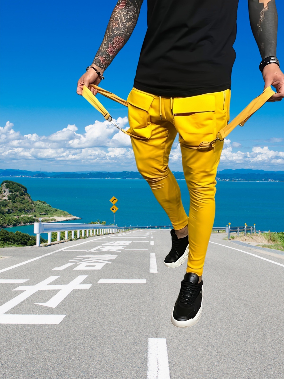 국경 새 봄과 가을 남자 풋리스 바지 남자 패션 올 매치 힙합 대형 포켓 캐주얼 스포츠 바지스토어 가기