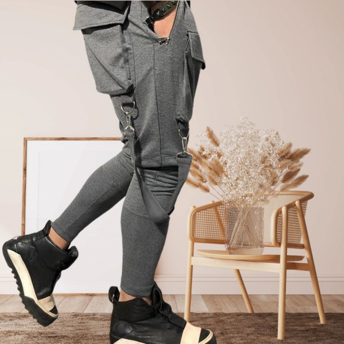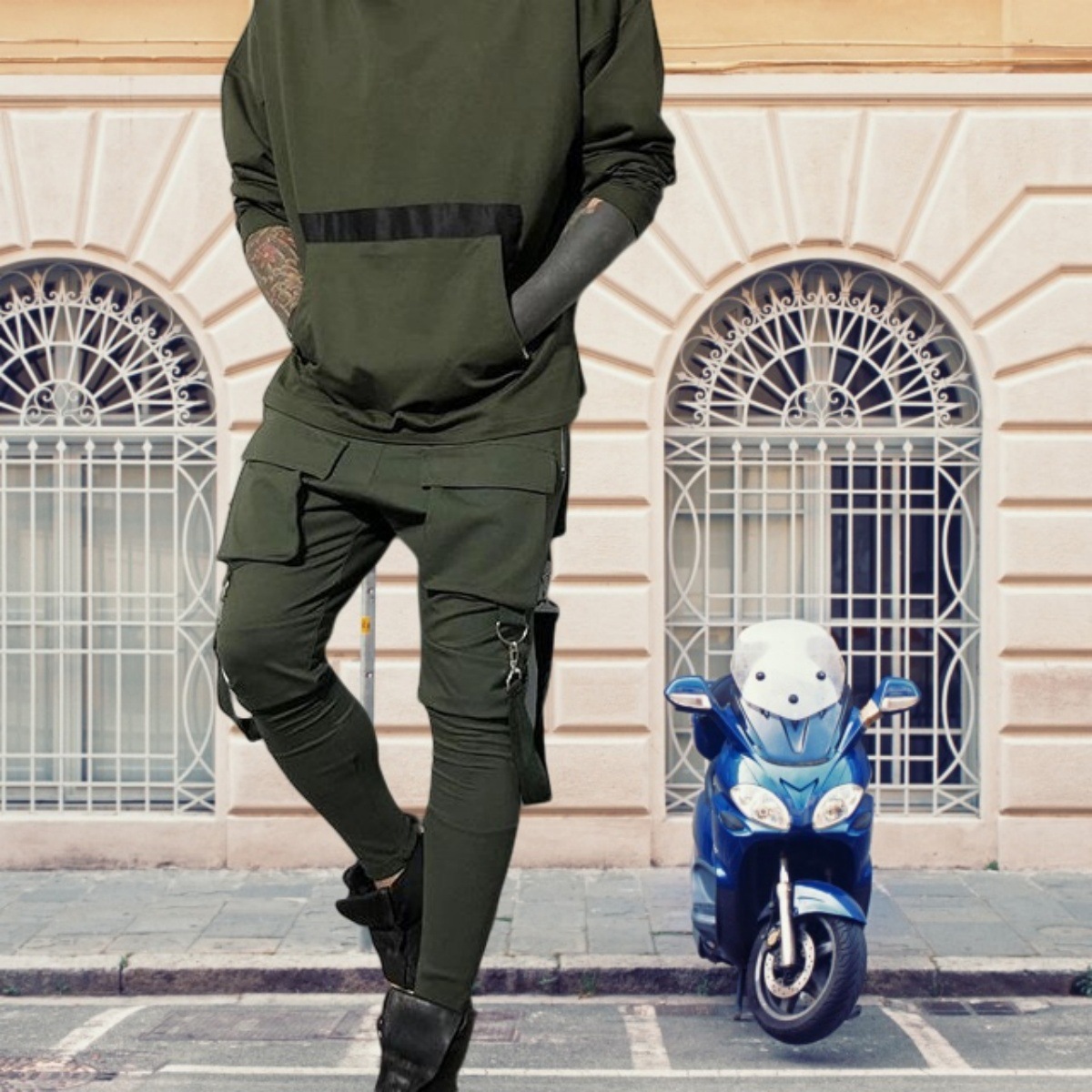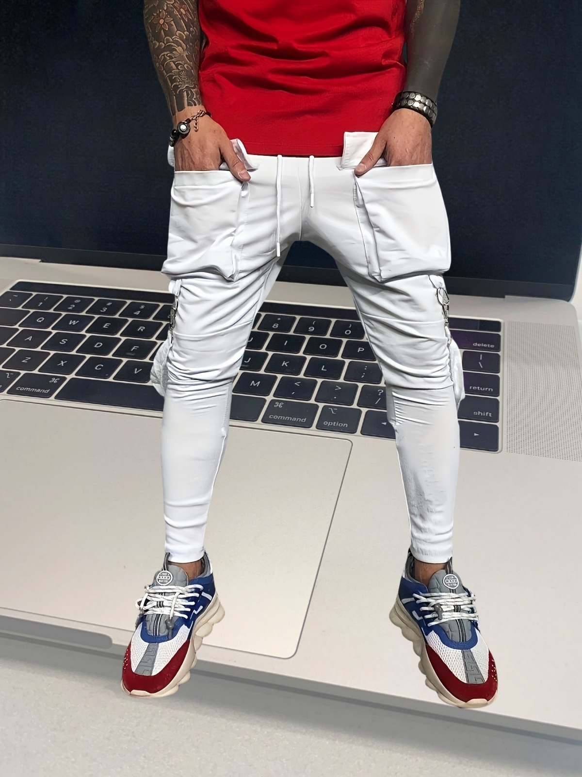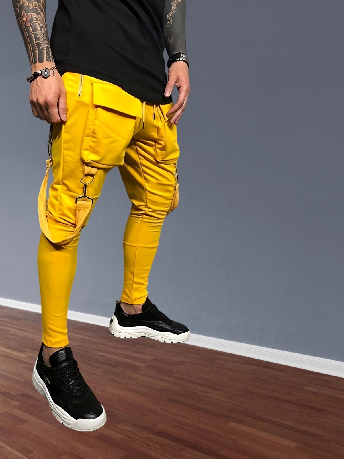 국경 새 봄과 가을 남자 풋리스 바지 남자 패션 올 매치 힙합 대형 포켓 캐주얼 스포츠 바지스토어 가기