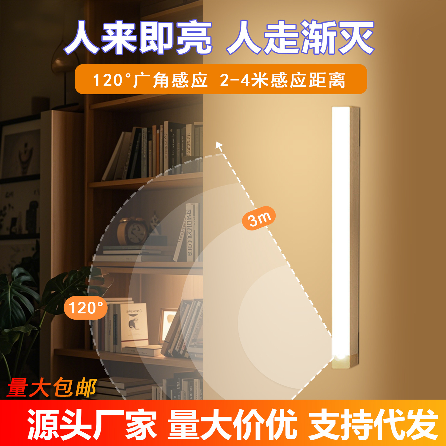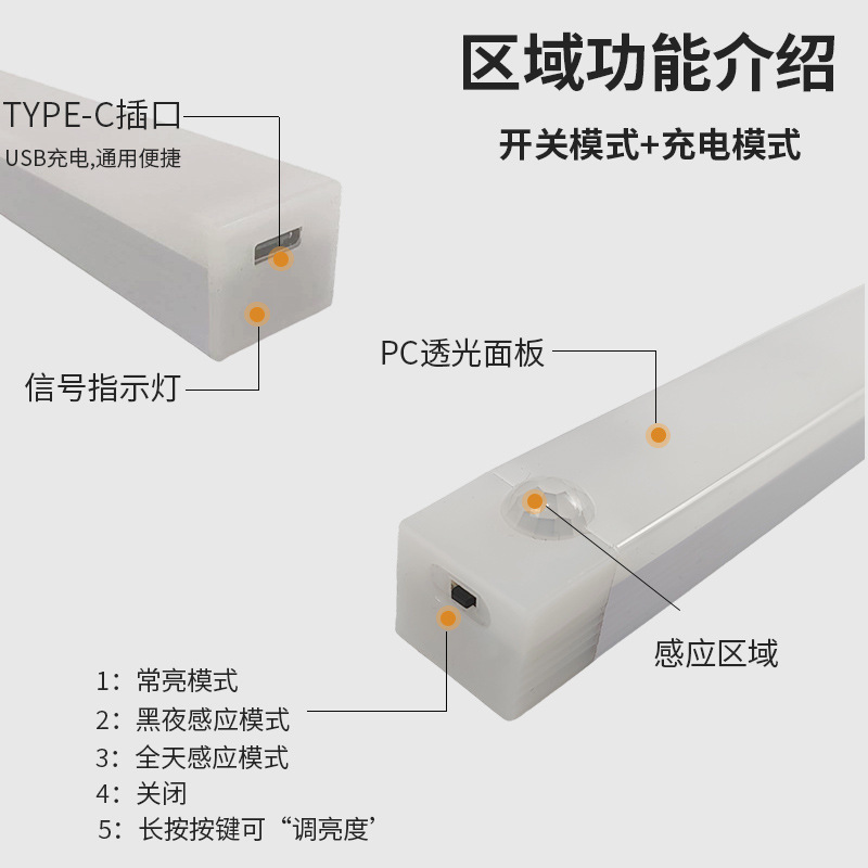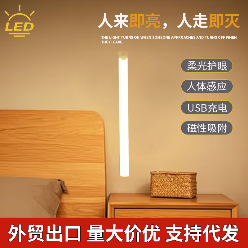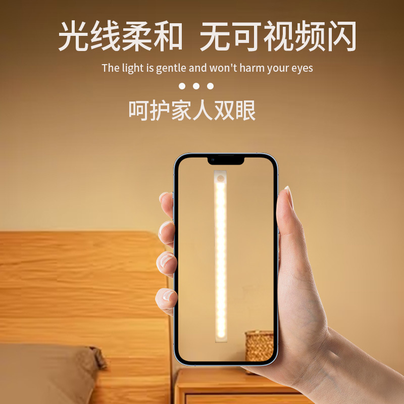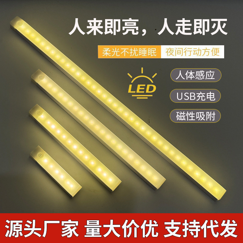 따뜻한 빛 led 지능형 인체 유도 밤 빛 무선 자기 흡입 충전 홈 침실 통로 캐비닛 빛 자기 흡입
