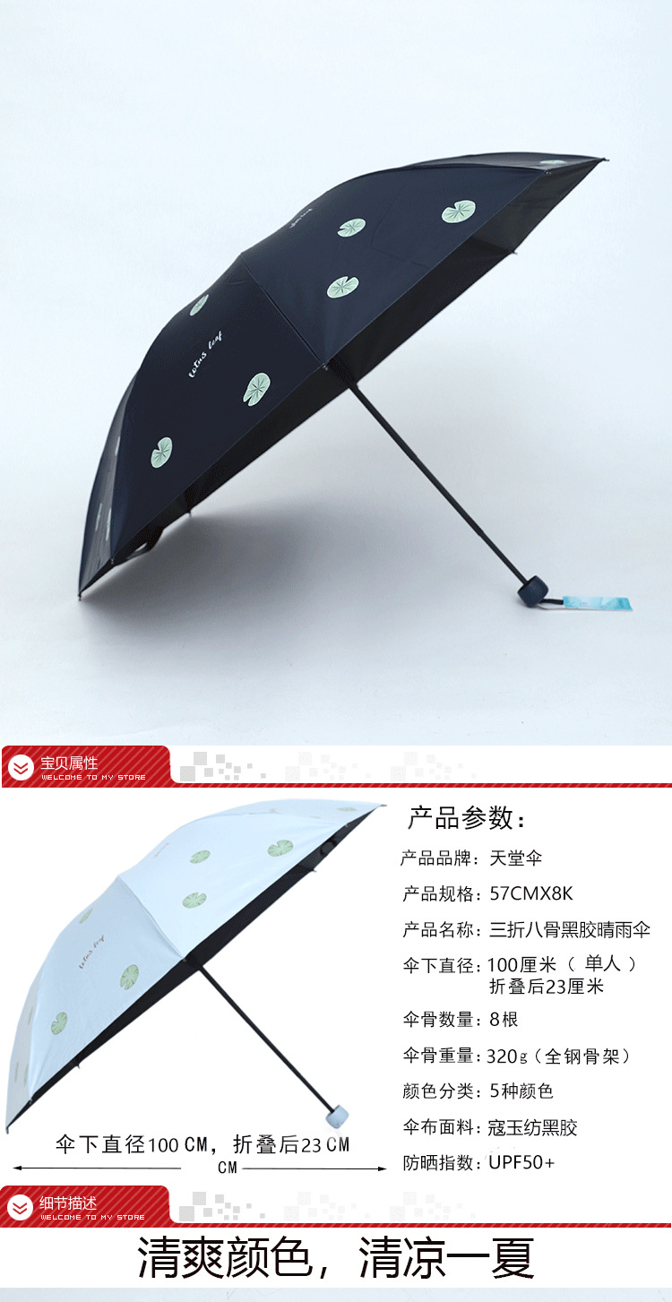 새로운 파라다이스 우산 33963E 황혼의 야생 노래 태양 보호 자외선 보호 햇빛과 비 보호 이중 목적 작은 신선한 검은 고무 태양 우산스토어 가기