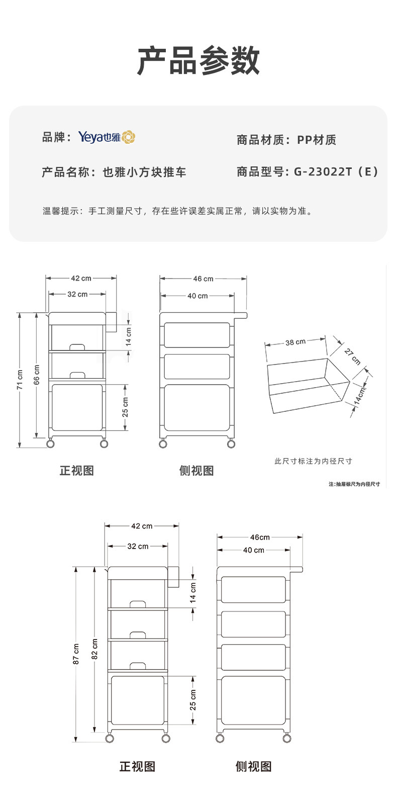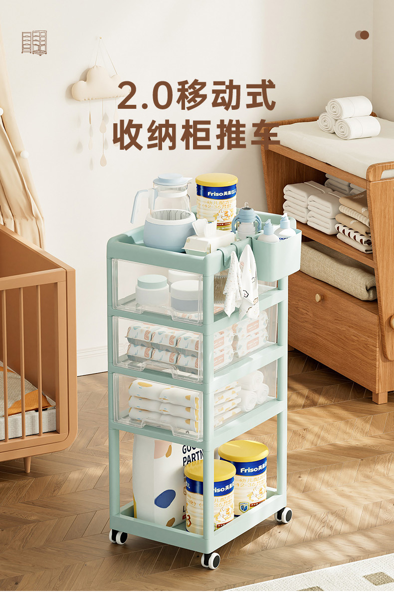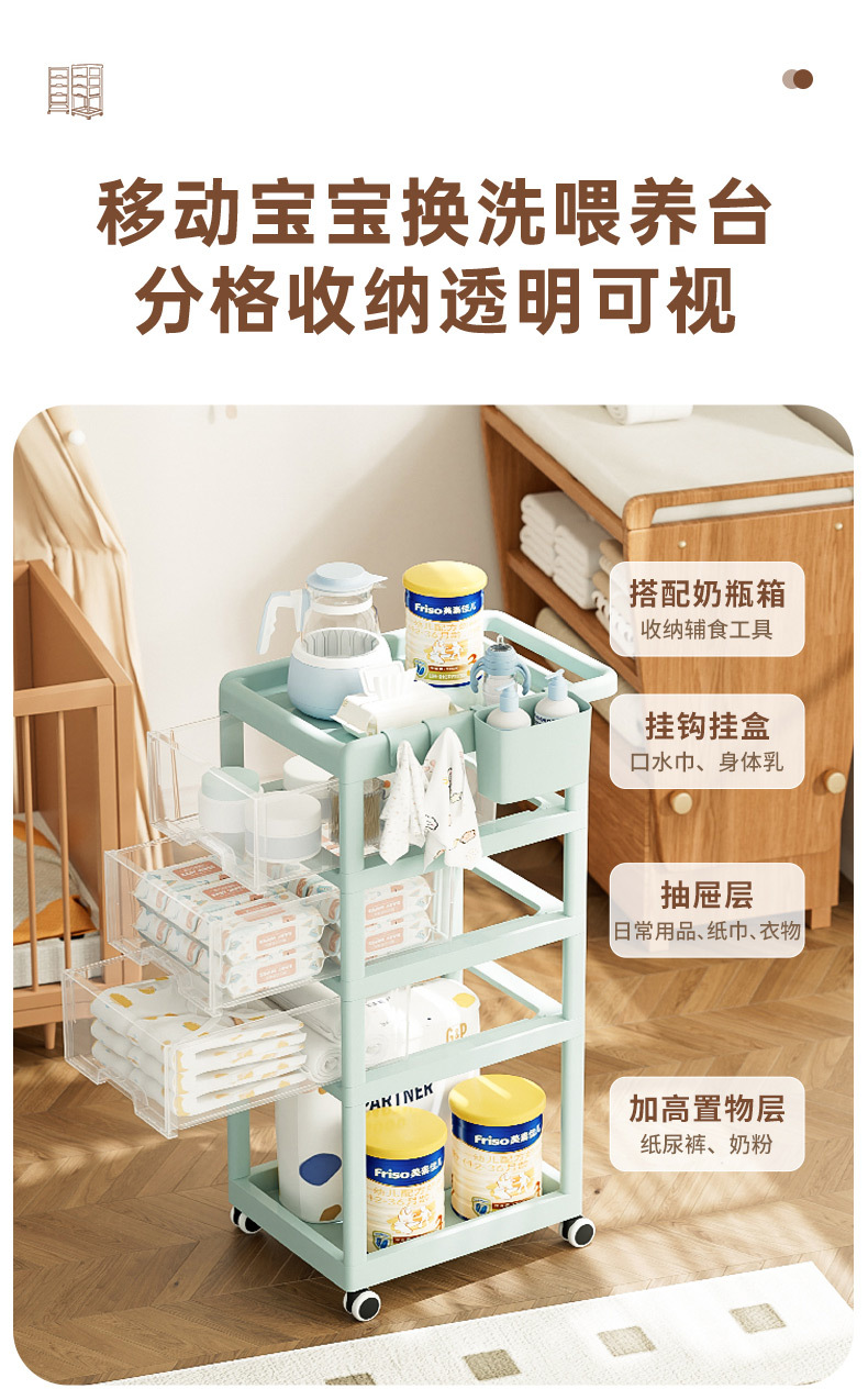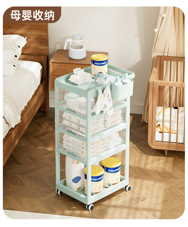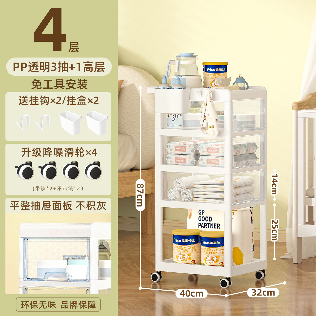 ✅아기와 아기 용 Yeya 트롤리 스토리지 랙 다층 서랍 모바일 스토리지 랙 일본식 투명 트롤리