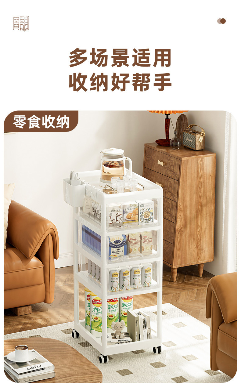 • 사각 트롤리 [반투명 투명 서랍 3개 + 높은 층 1개 + 후크 2개 및 걸이 상자 2개] Subeiqing