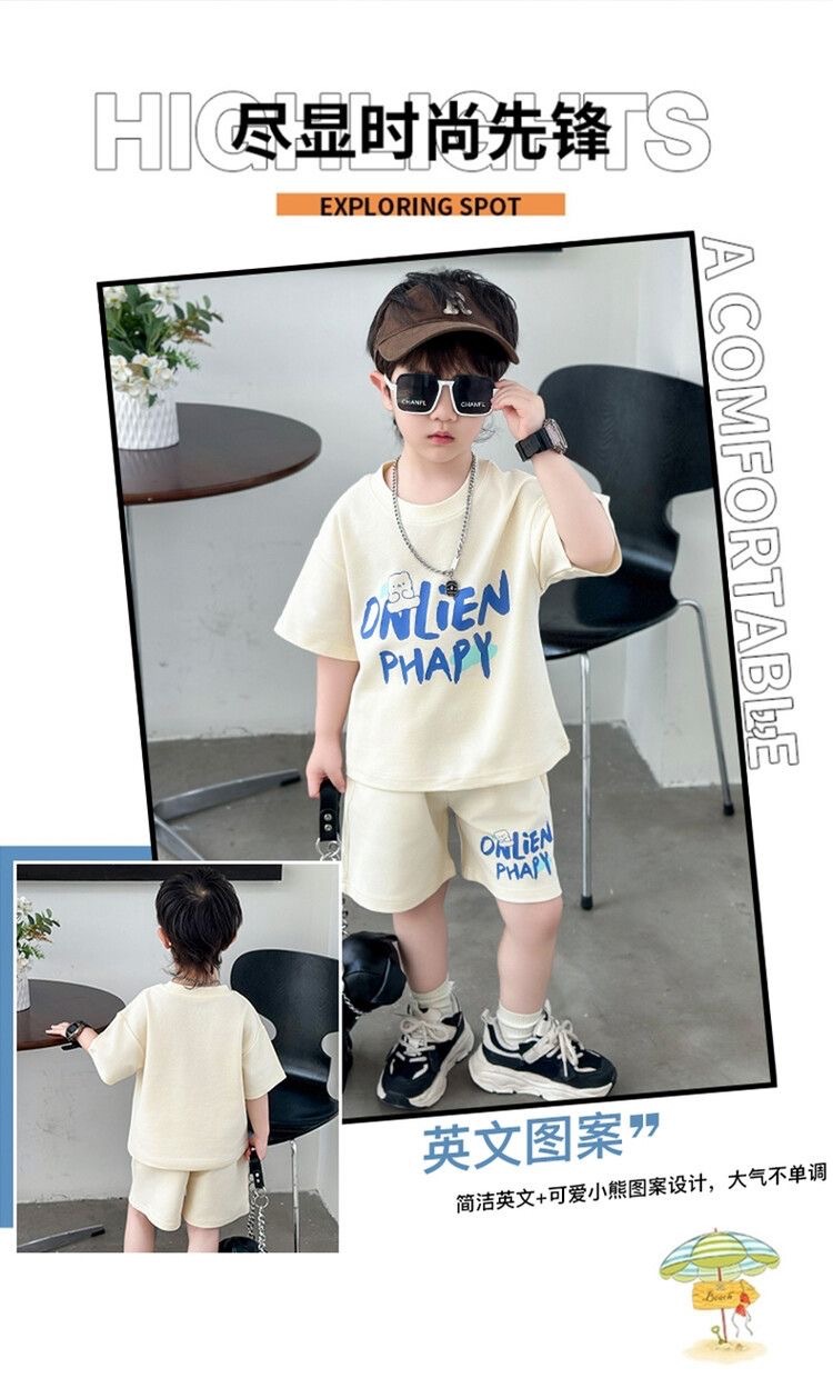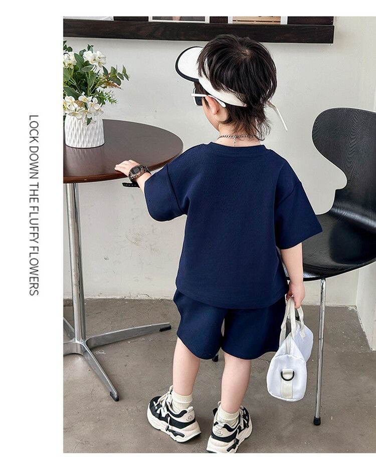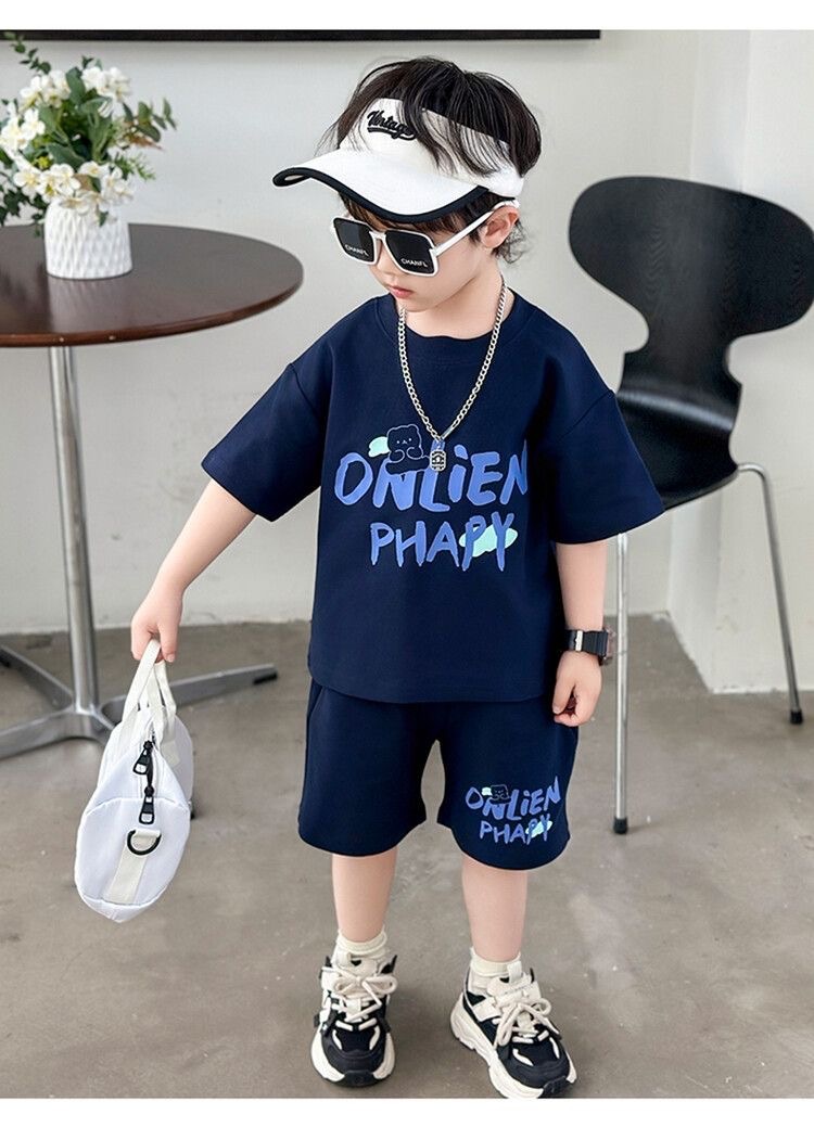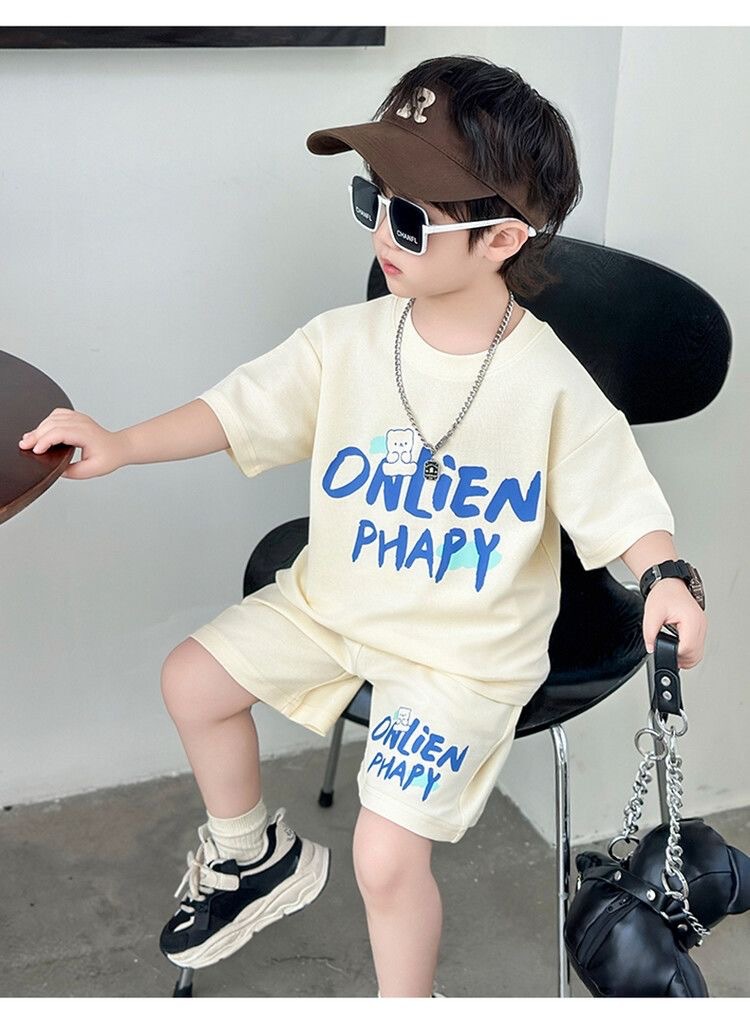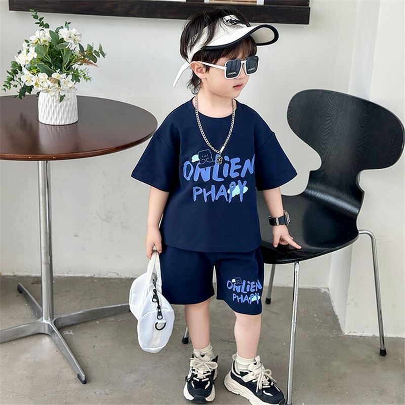 여름 새로운 소년과 소녀 홍콩 스타일 캐주얼 세트 반팔 유행 잘 생긴 패션 브랜드 스포츠 잘 생긴 편안한 투피스 세트