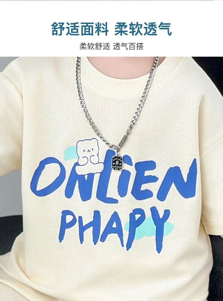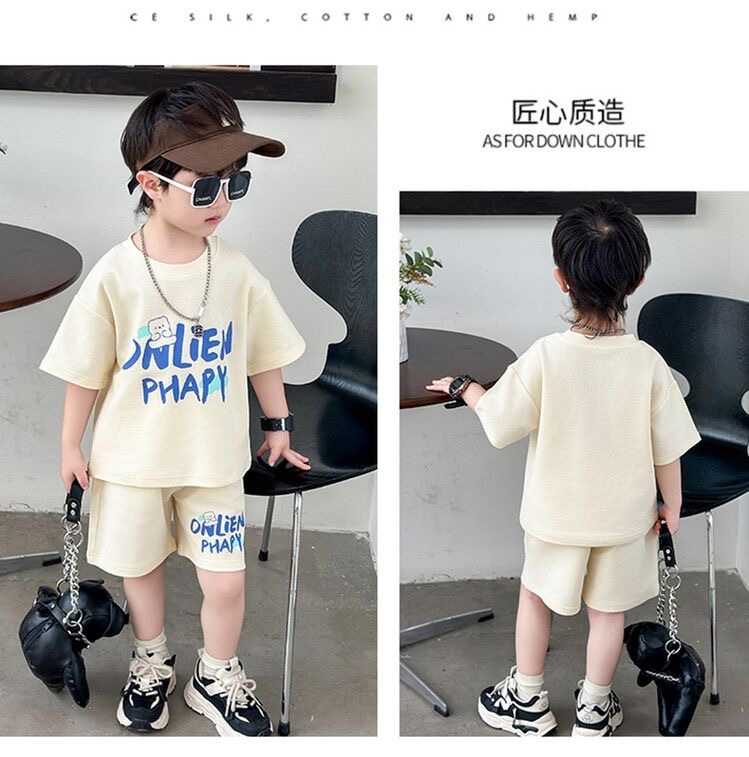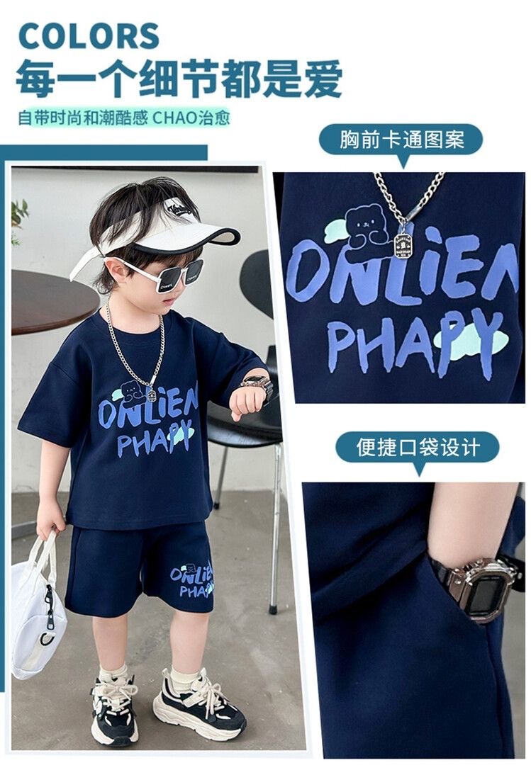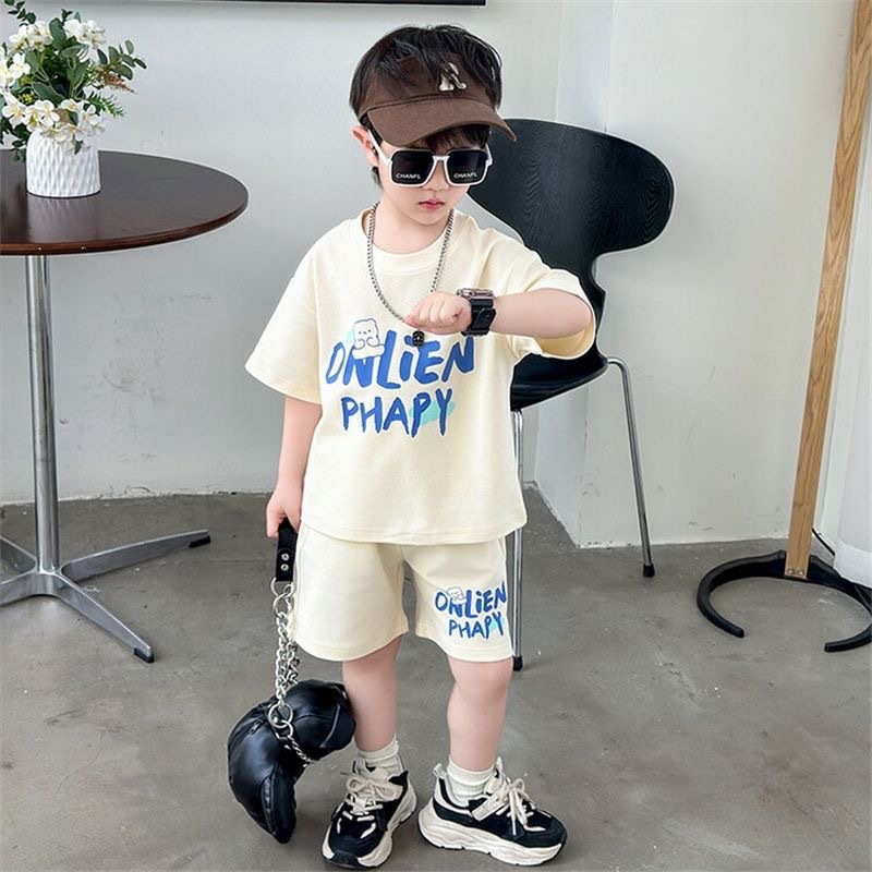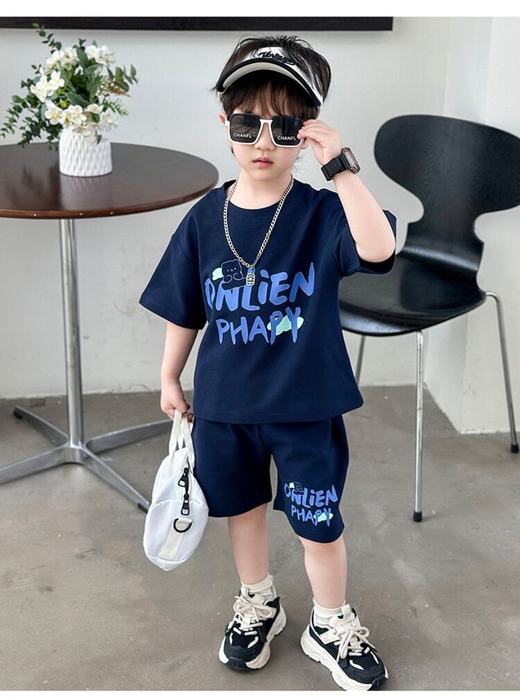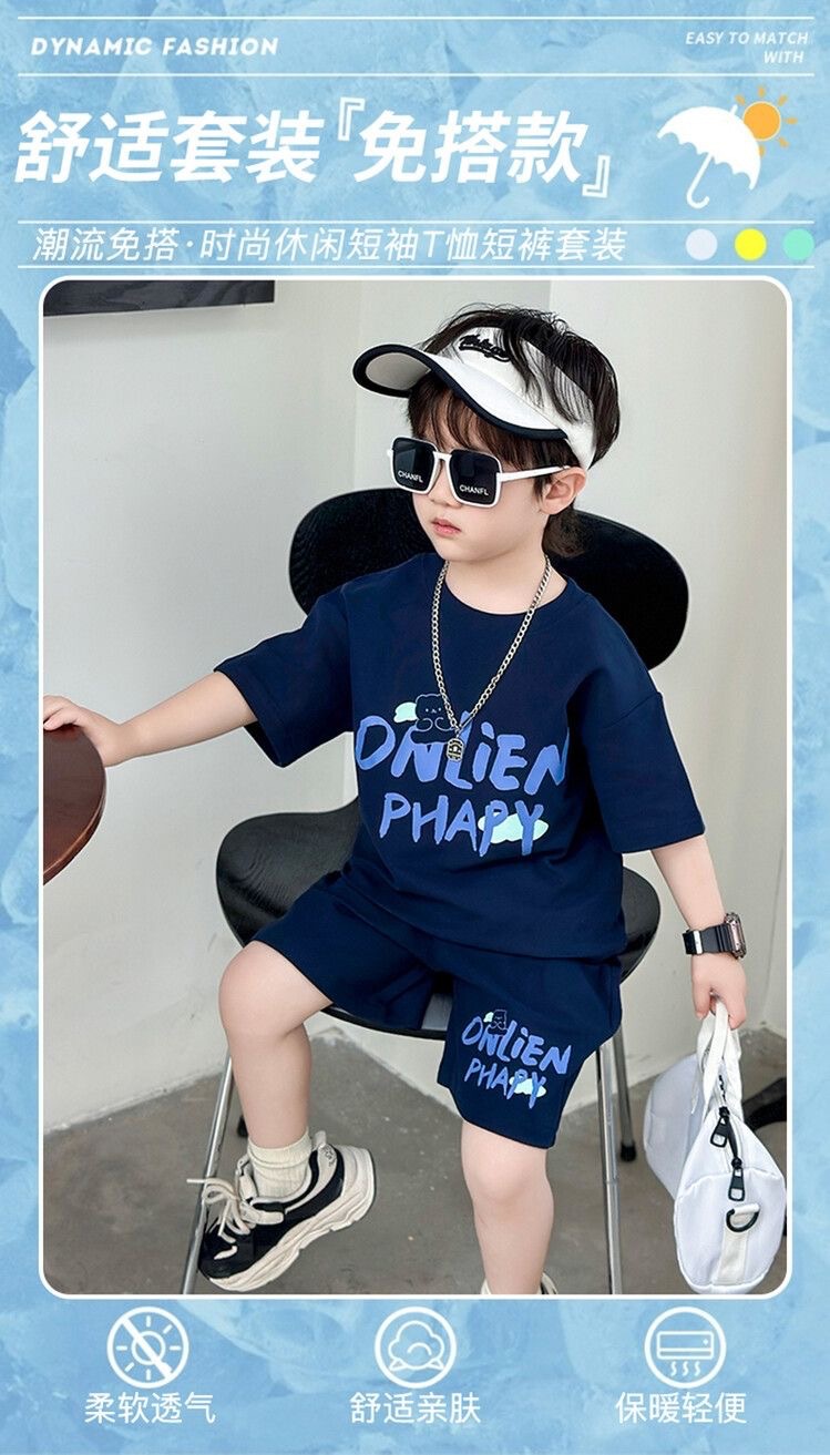 여름 새로운 소년과 소녀 홍콩 스타일 캐주얼 세트 반팔 유행 잘 생긴 패션 브랜드 스포츠 잘 생긴 편안한 투피스 세트