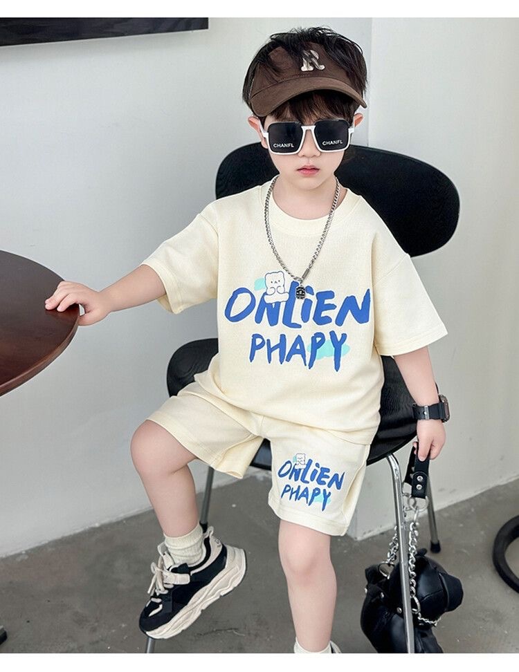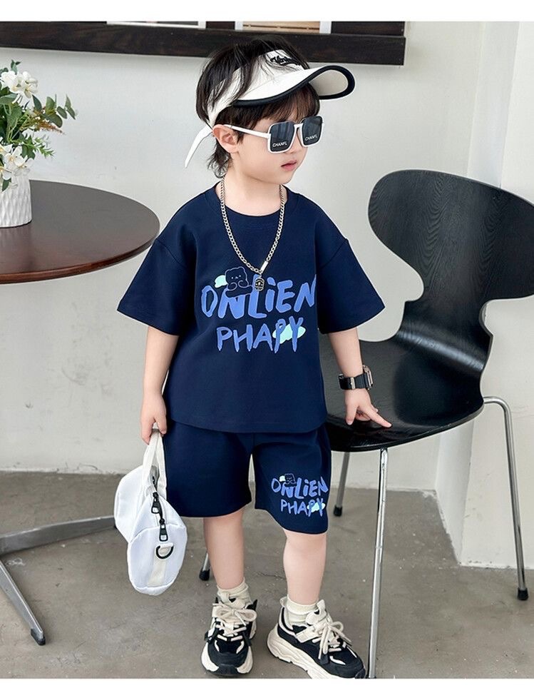 여름 새로운 소년과 소녀 홍콩 스타일 캐주얼 세트 반팔 유행 잘 생긴 패션 브랜드 스포츠 잘 생긴 편안한 투피스 세트스토어 가기