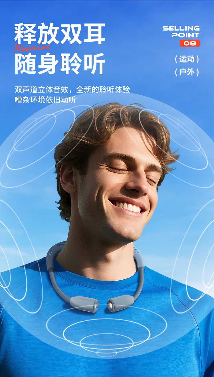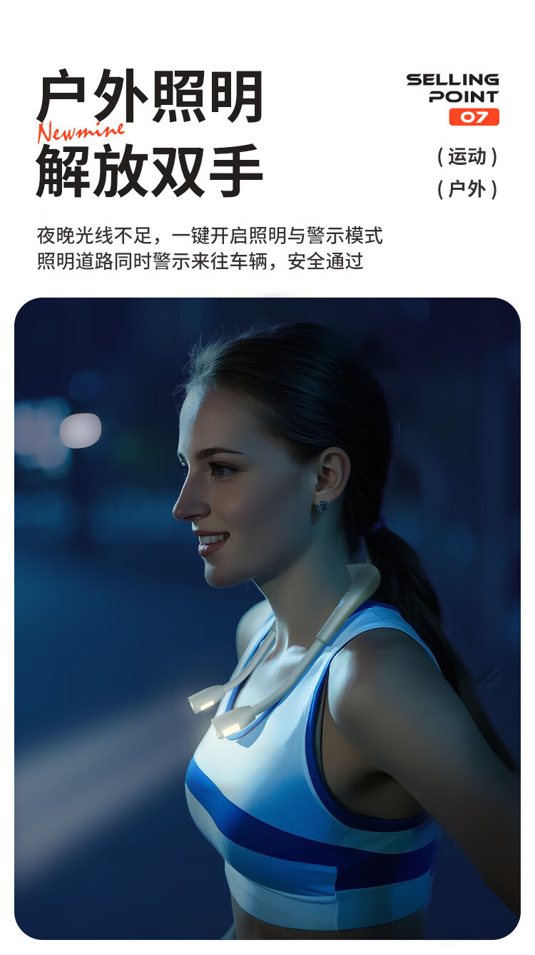 뉴먼 PBS002 무선 블루투스 스피커, 목걸이형, 스포츠, 사이클링, 야간, 비상등, 다기능스토어 가기