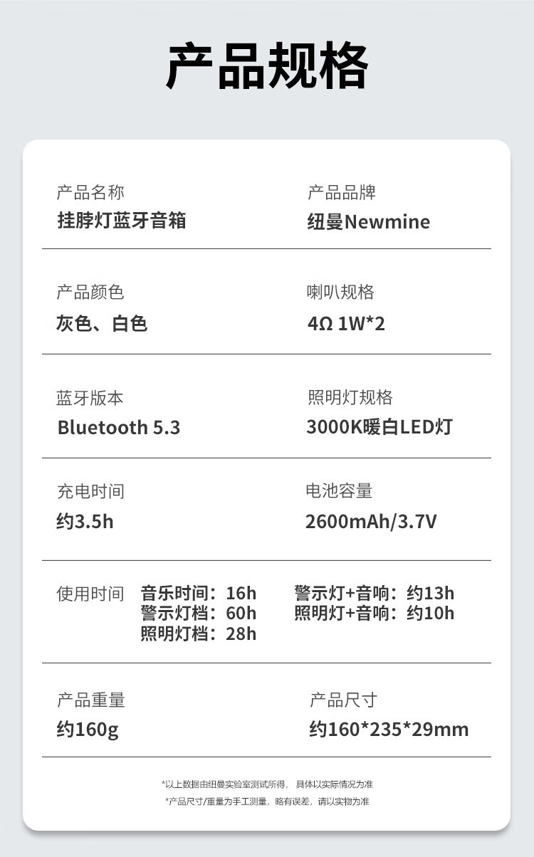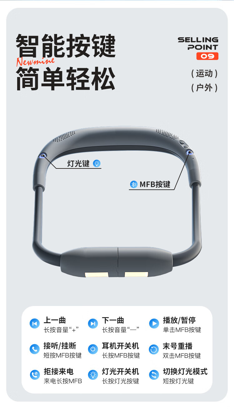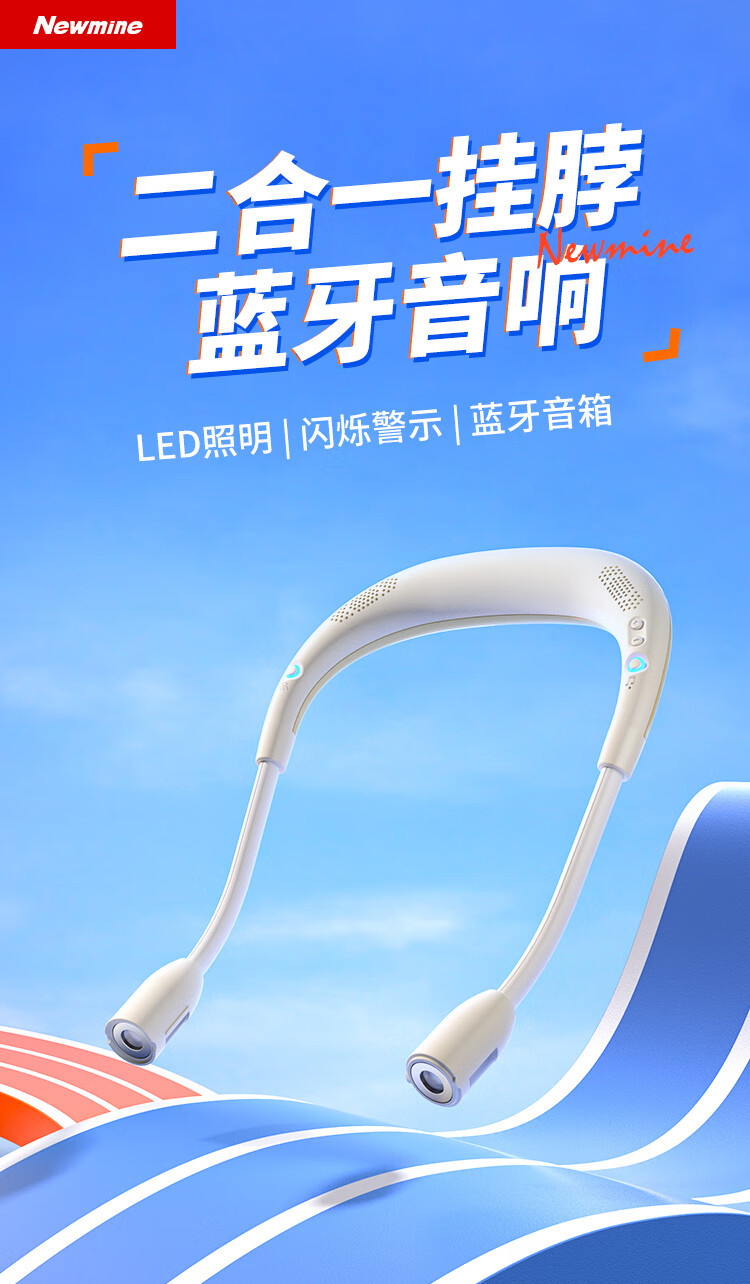 뉴먼 PBS002 무선 블루투스 스피커, 목걸이형, 스포츠, 사이클링, 야간, 비상등, 다기능
