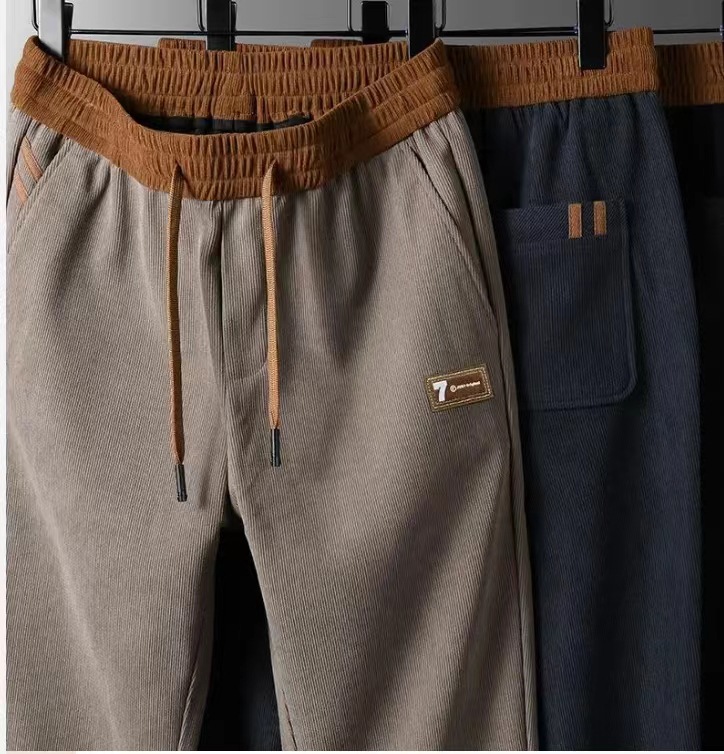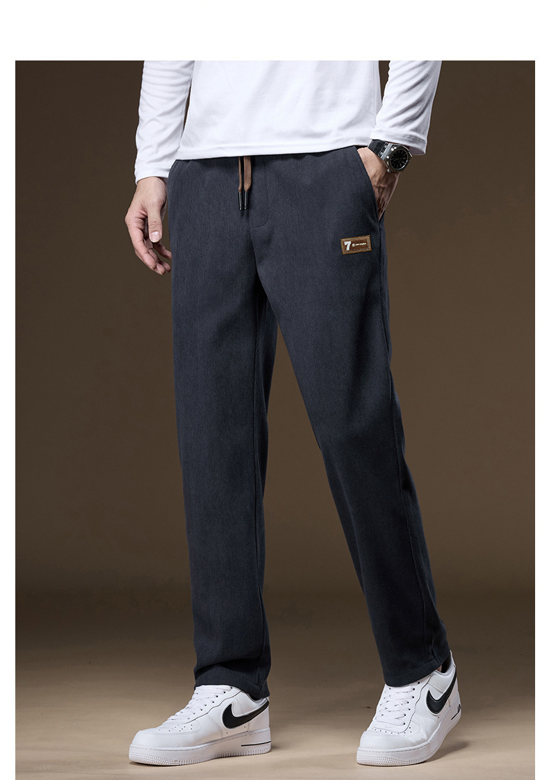 가을과 겨울 새로운 남자 캐주얼 바지 스트레이트 기모 두꺼운 코듀로이 바지 캐주얼 올 매치 엘라스토 바지 남자 머리