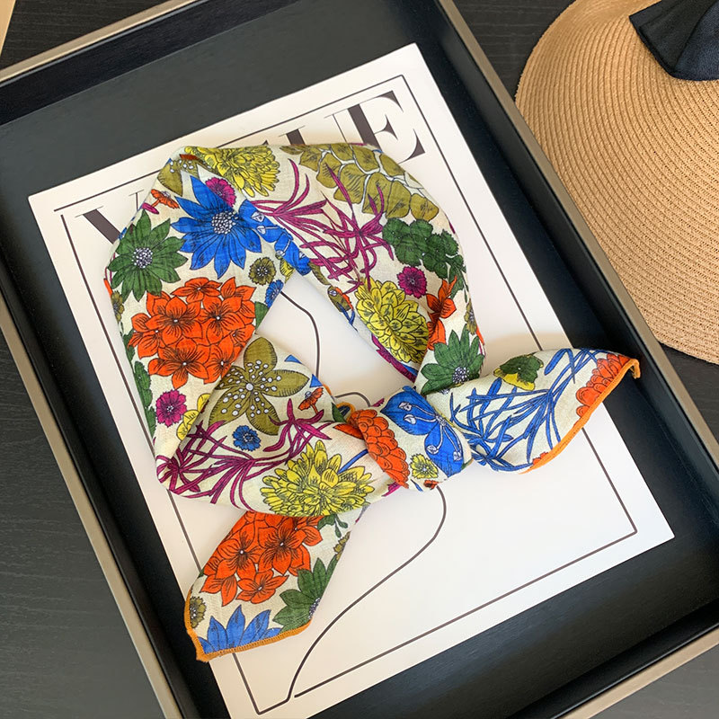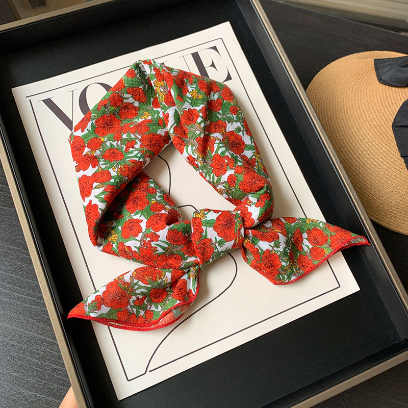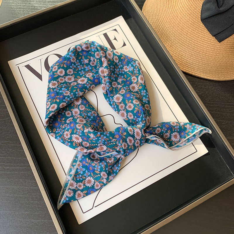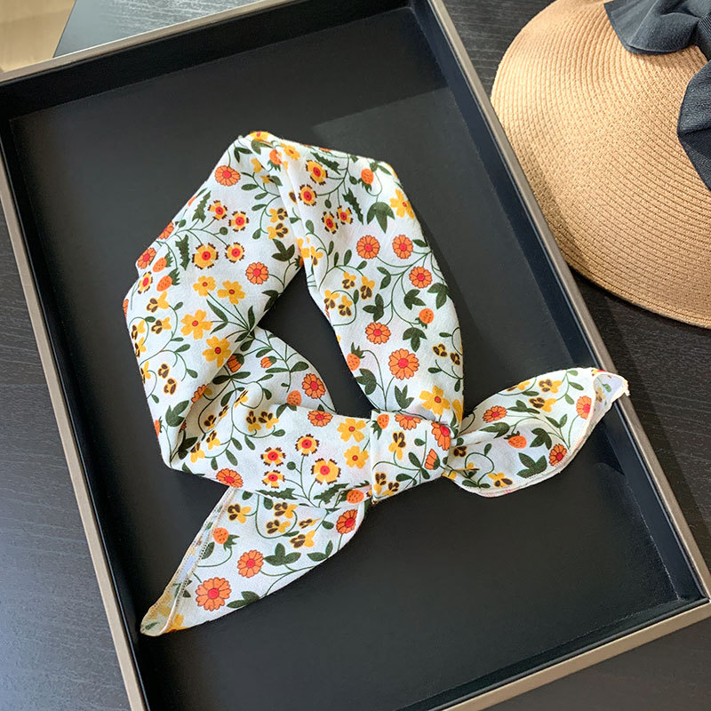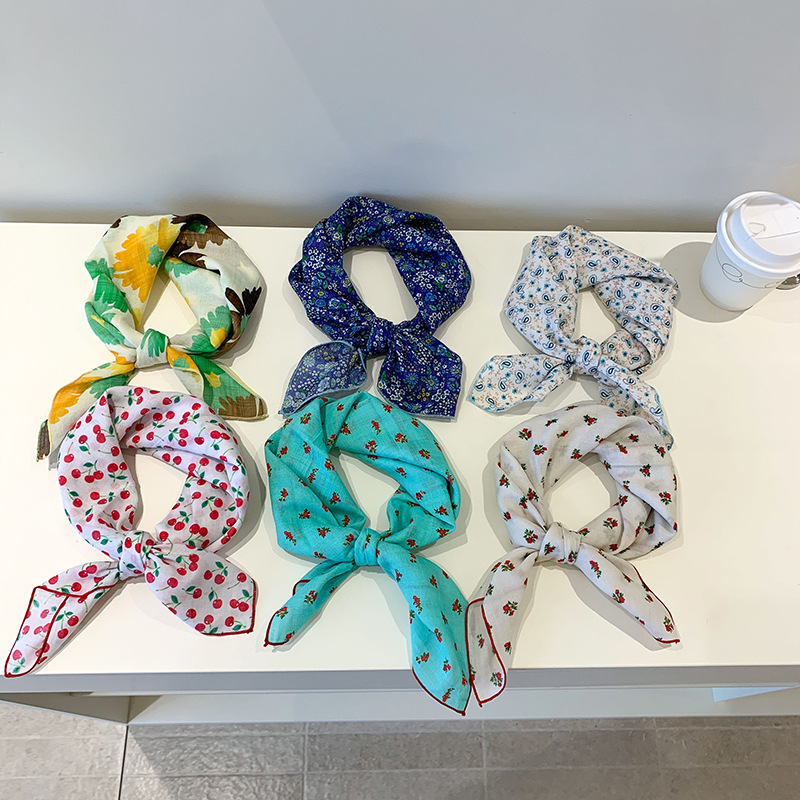 한국식 여성 꽃 신선한 작은 광장 스카프 올 매치 실크 스카프 관광 장식 헤드 스카프 헤어 벨트 스카프 예술적 스카프 봄과 가을