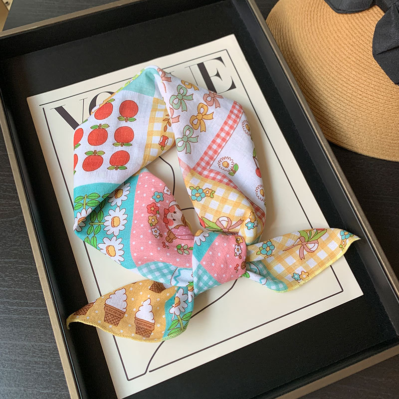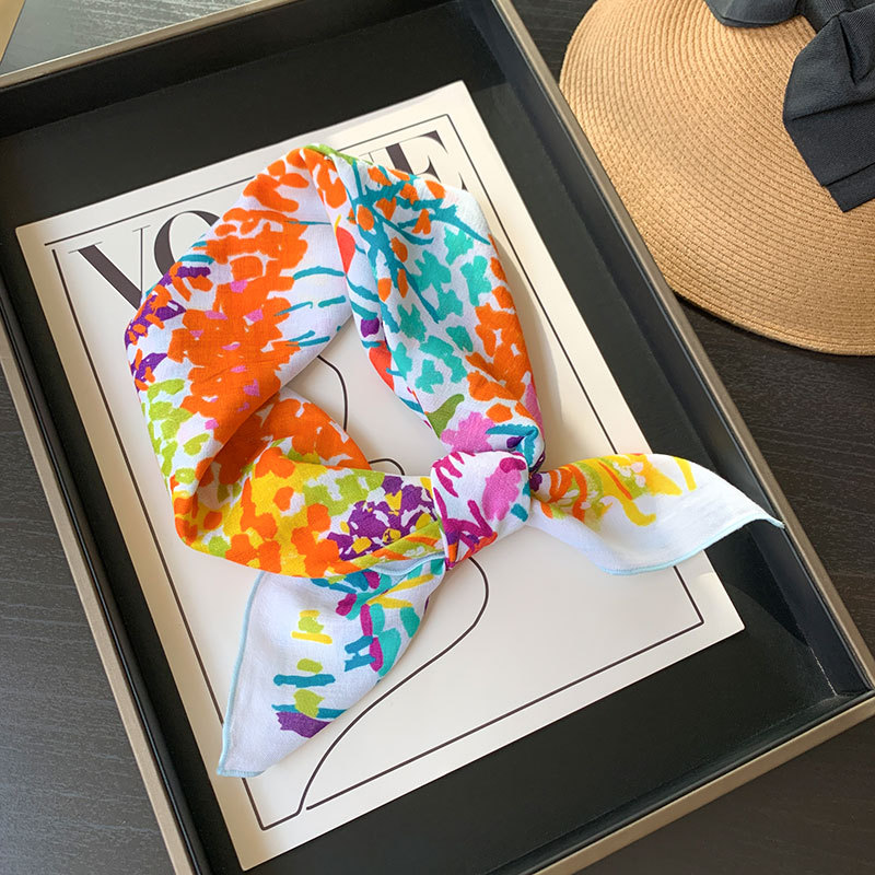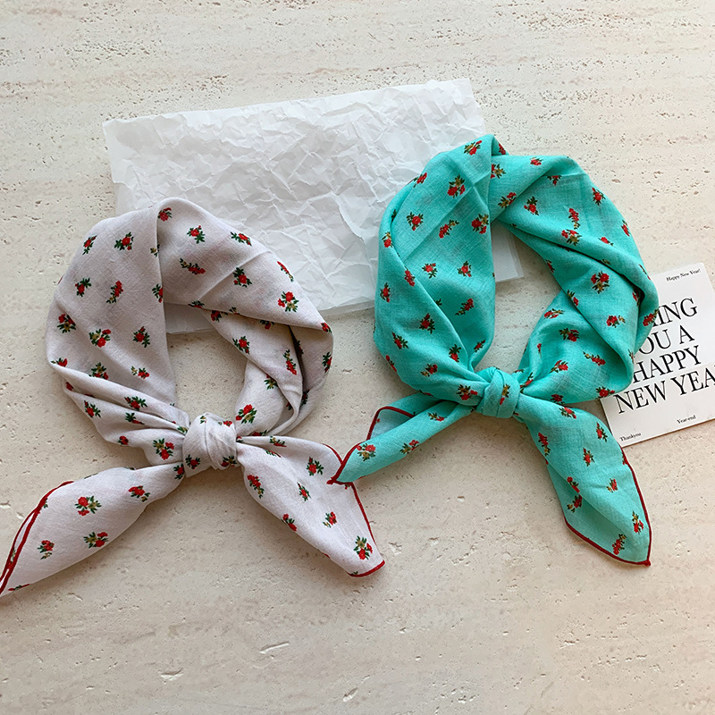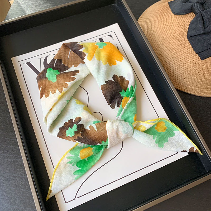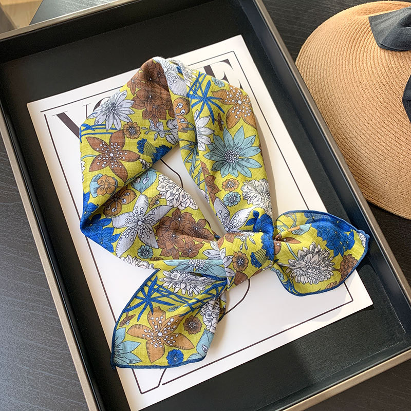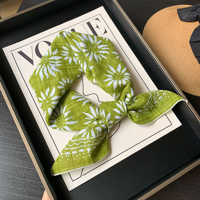 한국식 여성 꽃 신선한 작은 광장 스카프 올 매치 실크 스카프 관광 장식 헤드 스카프 헤어 벨트 스카프 예술적 스카프 봄과 가을