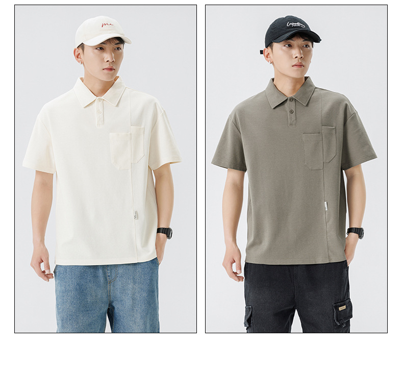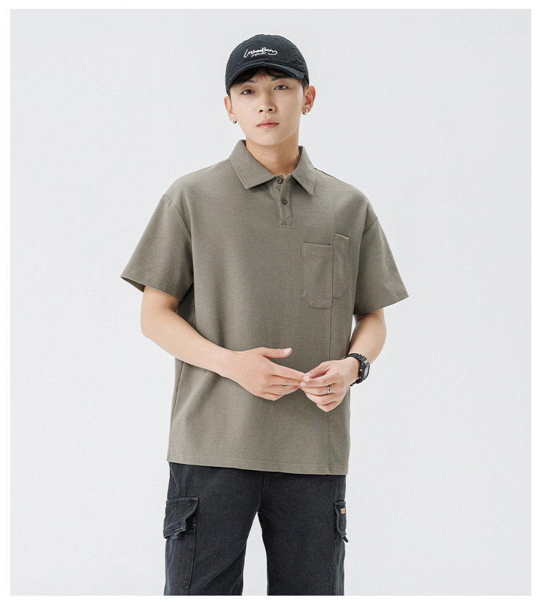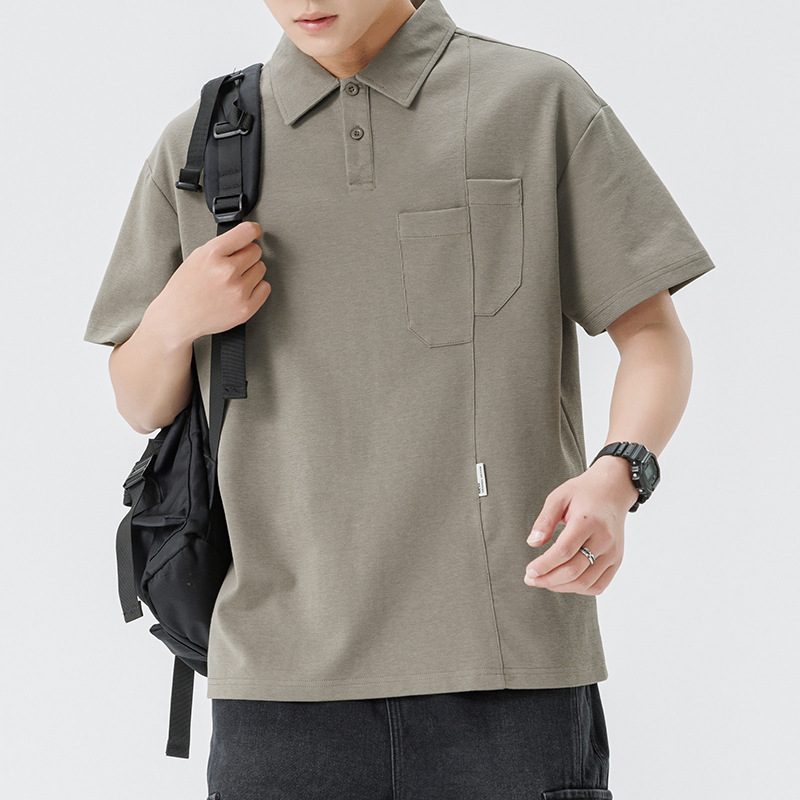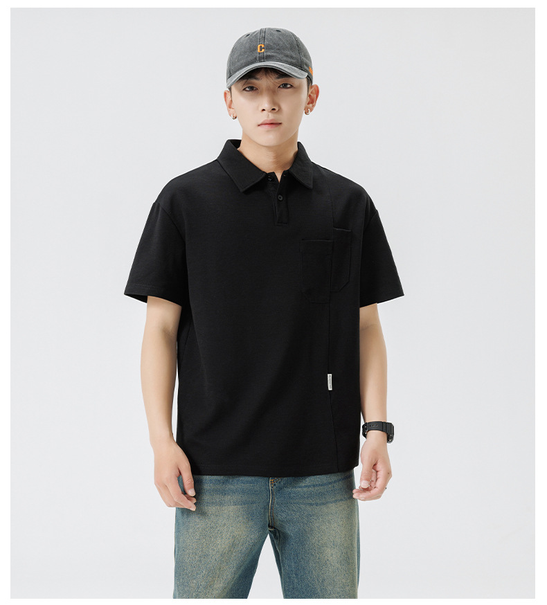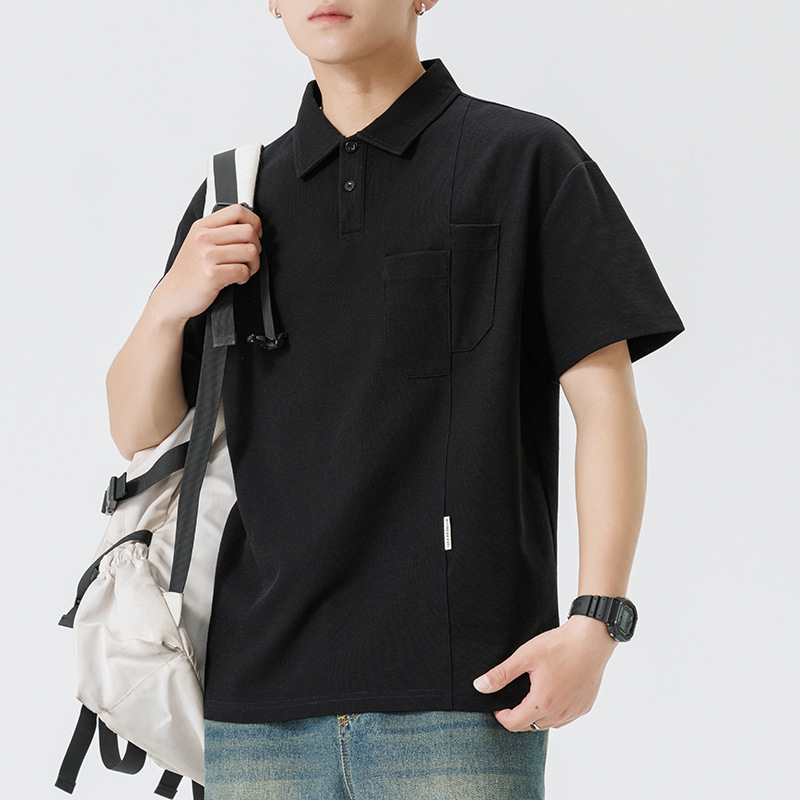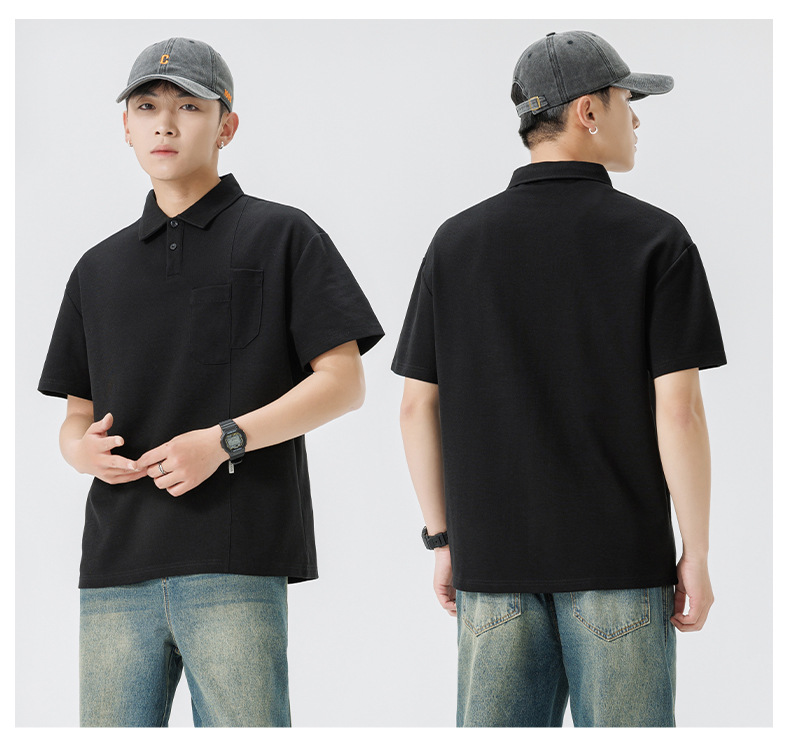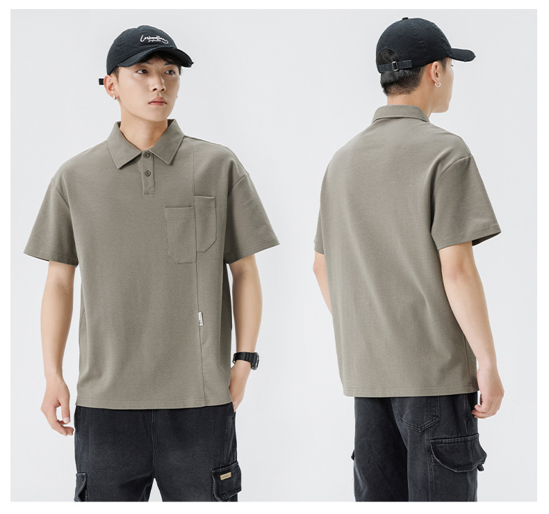 비즈니스 통근 폴로 셔츠 남성 반팔 여름 새로운 한국 스타일 캐주얼 포켓 무거운 질감 남성 넥 티셔츠