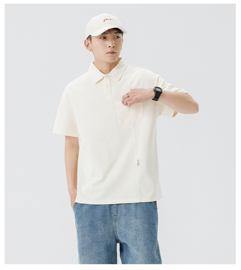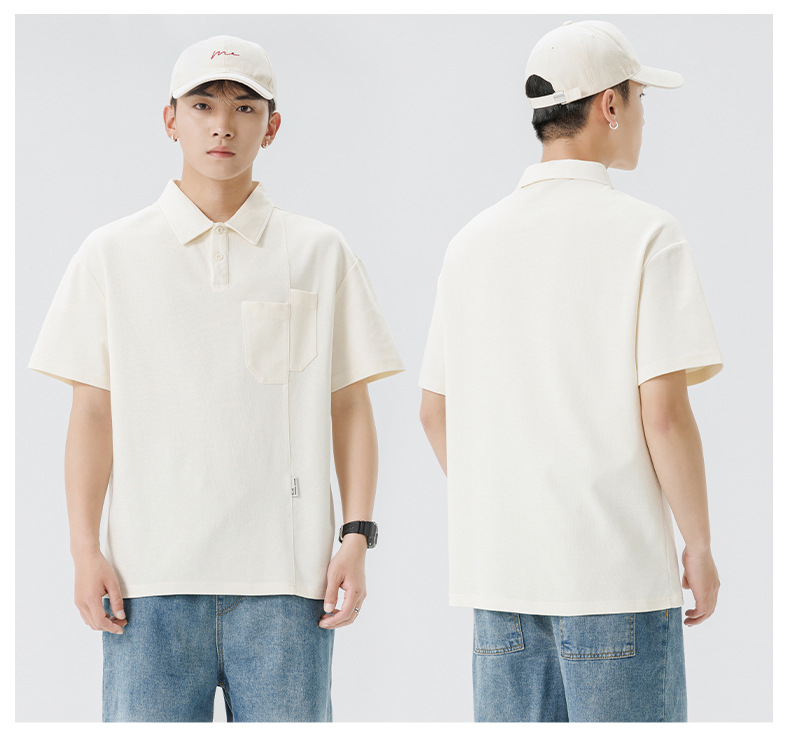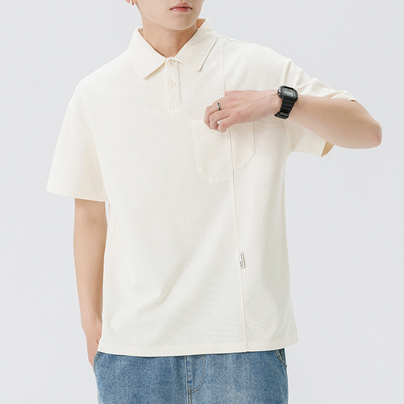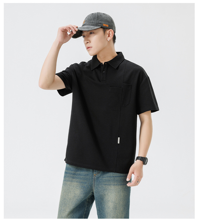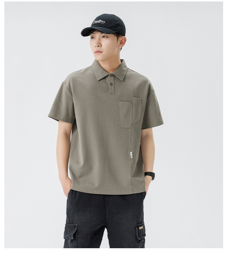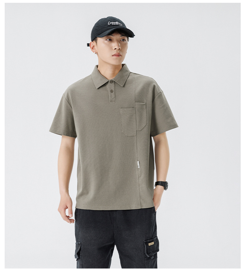 비즈니스 통근 폴로 셔츠 남성 반팔 여름 새로운 한국 스타일 캐주얼 포켓 무거운 질감 남성 넥 티셔츠