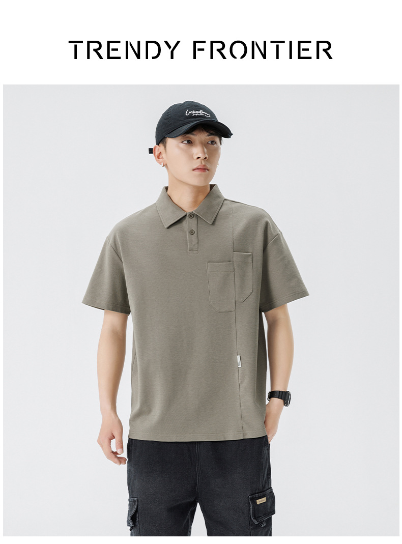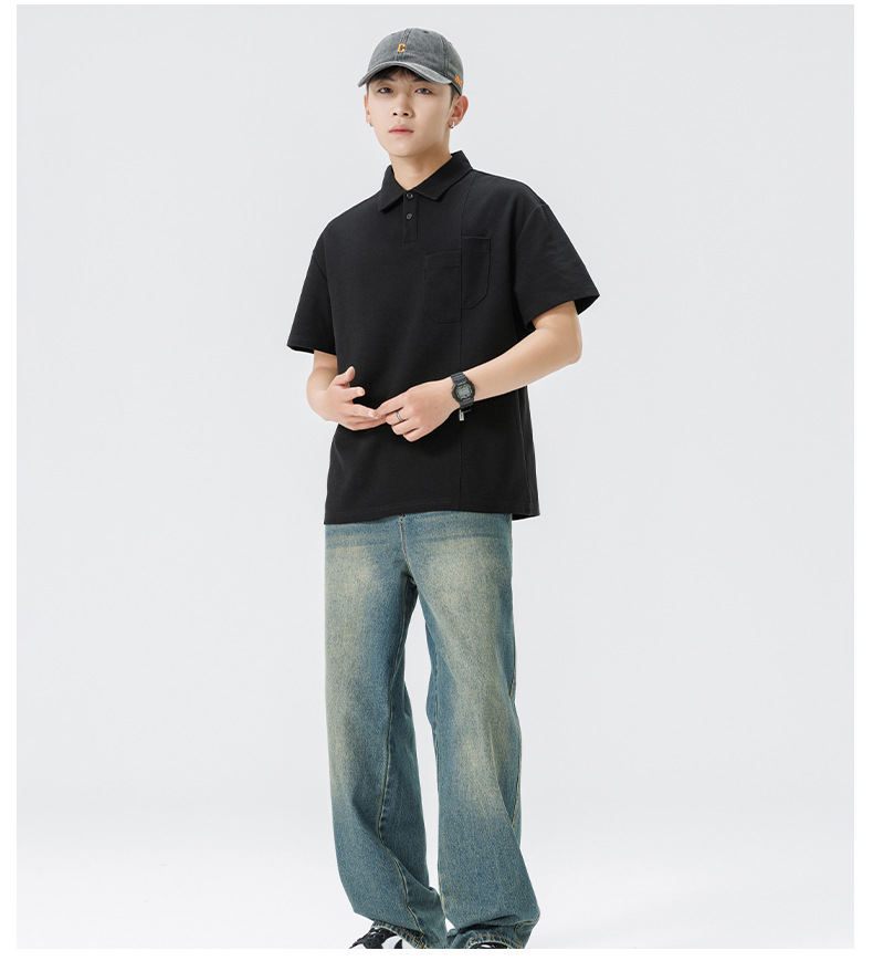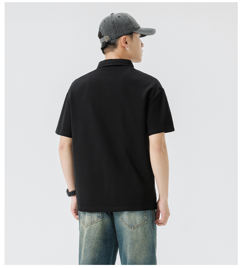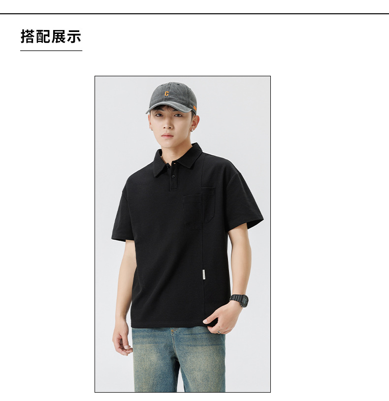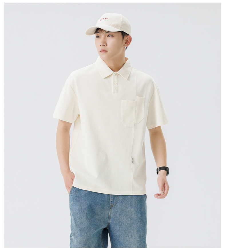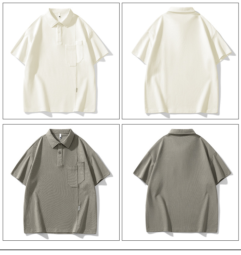 비즈니스 통근 폴로 셔츠 남성 반팔 여름 새로운 한국 스타일 캐주얼 포켓 무거운 질감 남성 넥 티셔츠