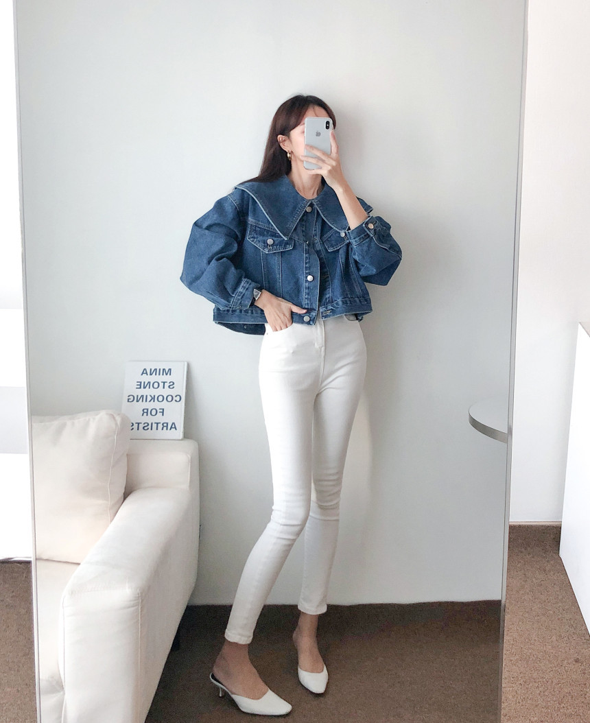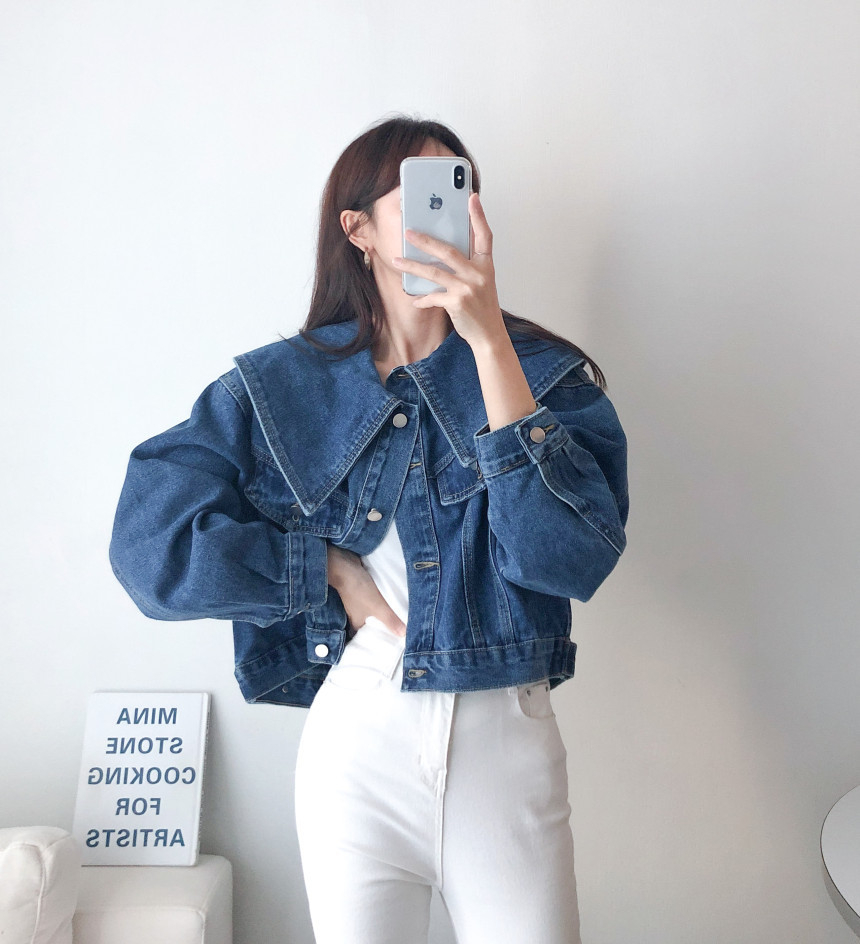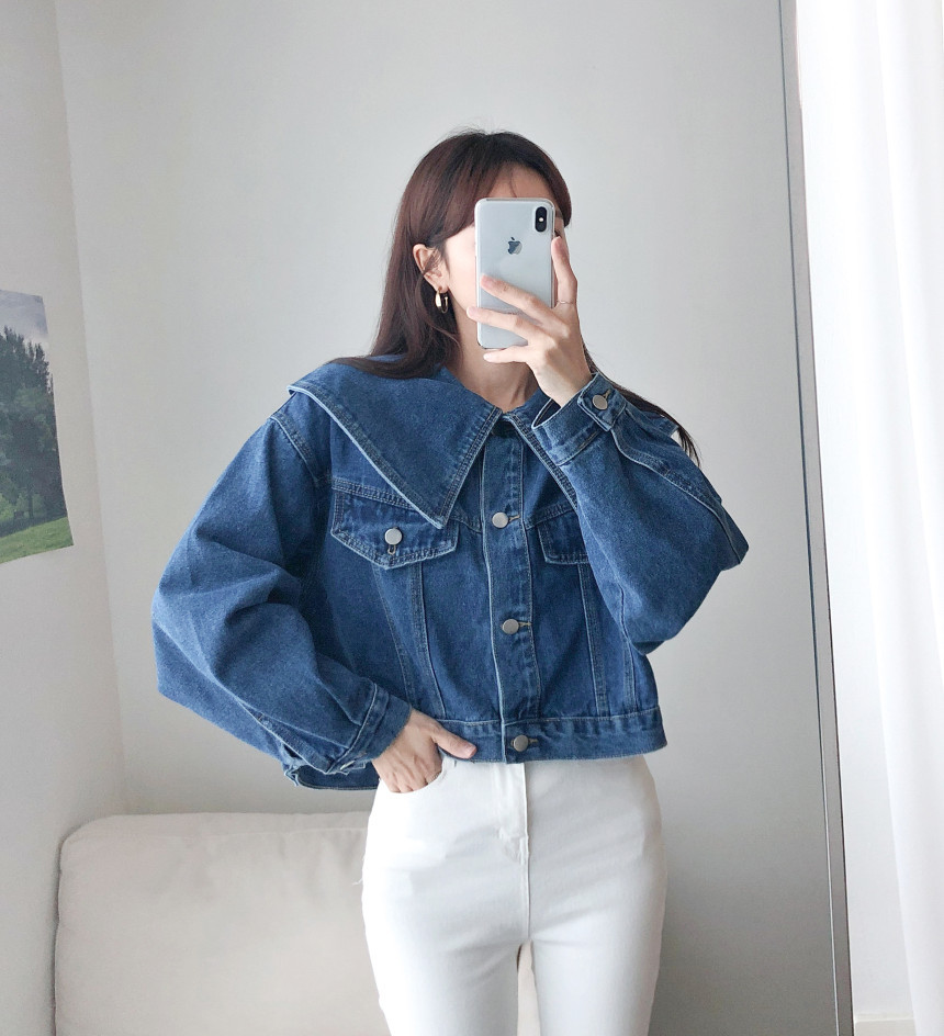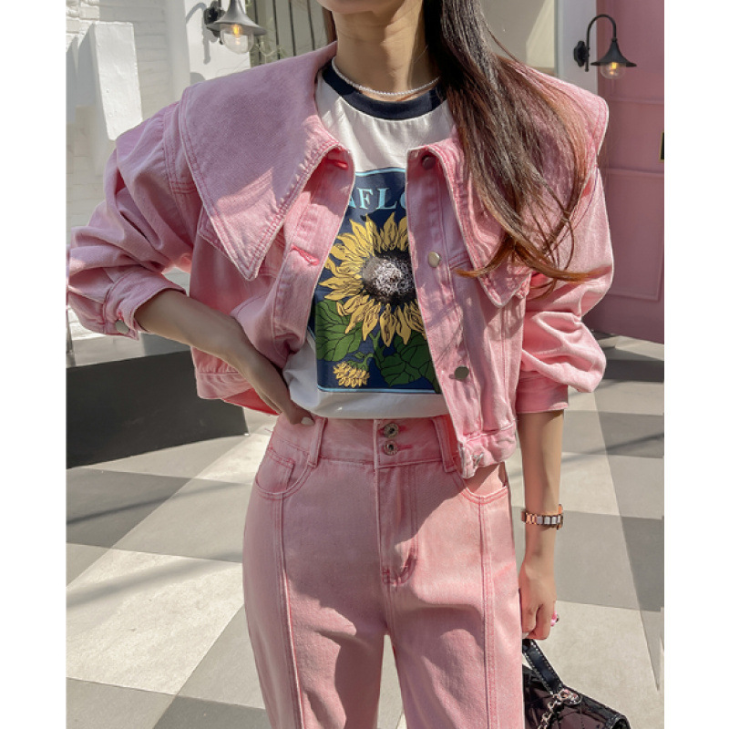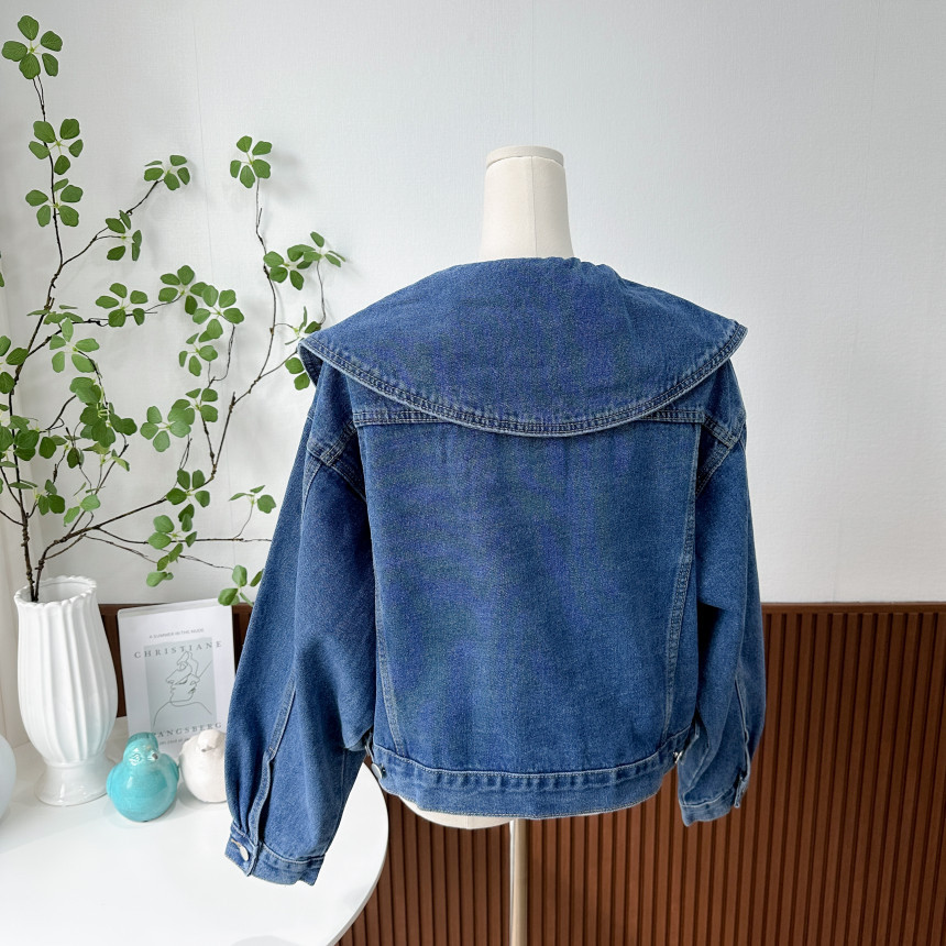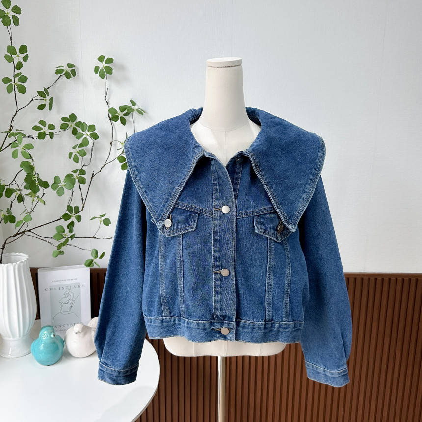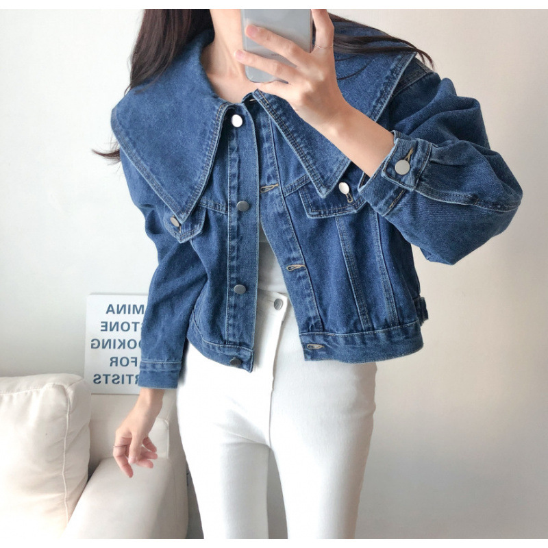 봄 2025 레트로 대형 랩 단일 가슴 느슨한 슬리밍 짧은 긴팔 재킷 여성용 데님 코트스토어 가기