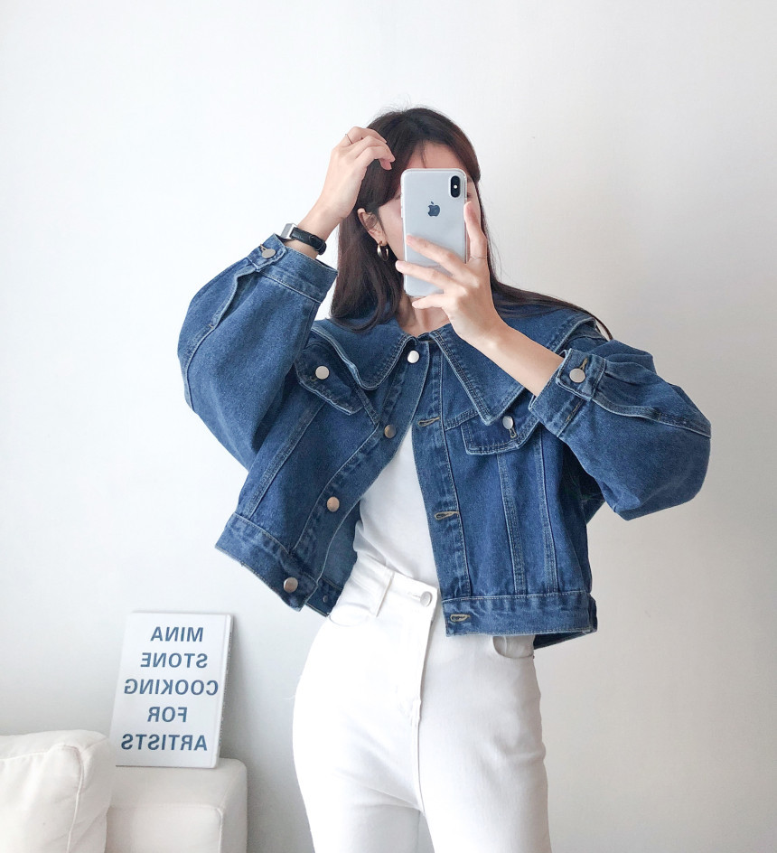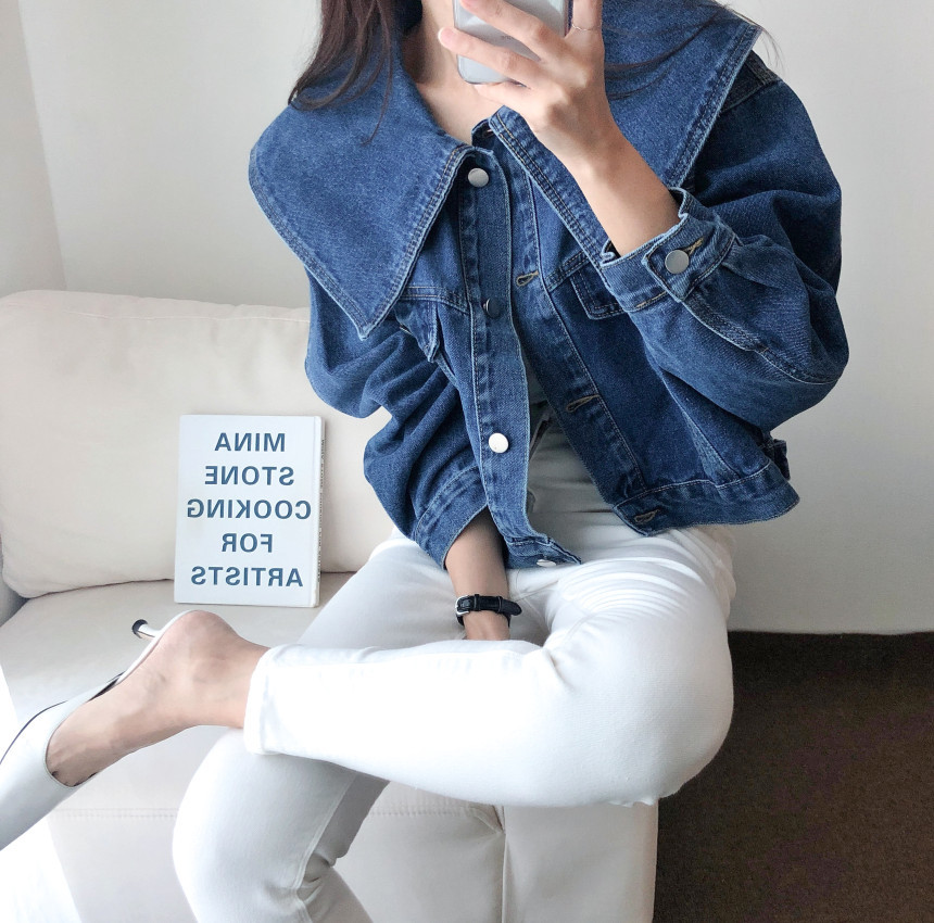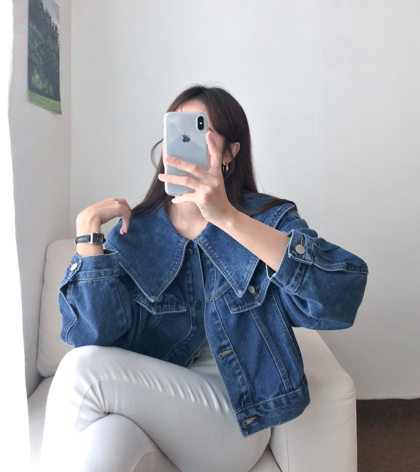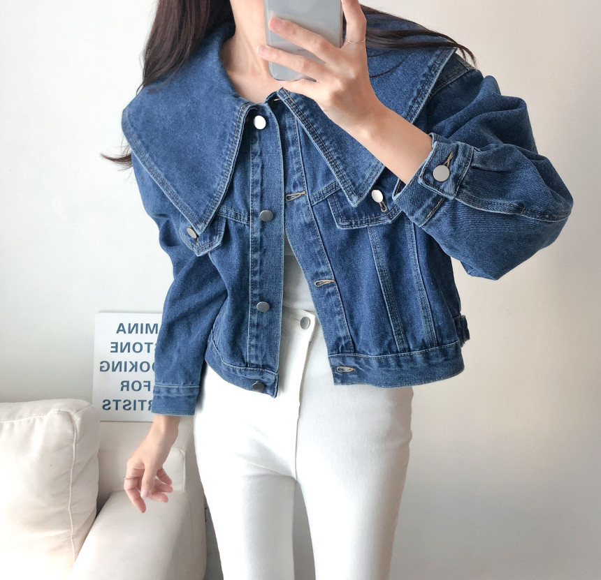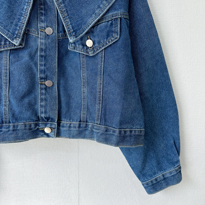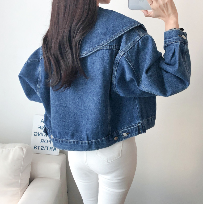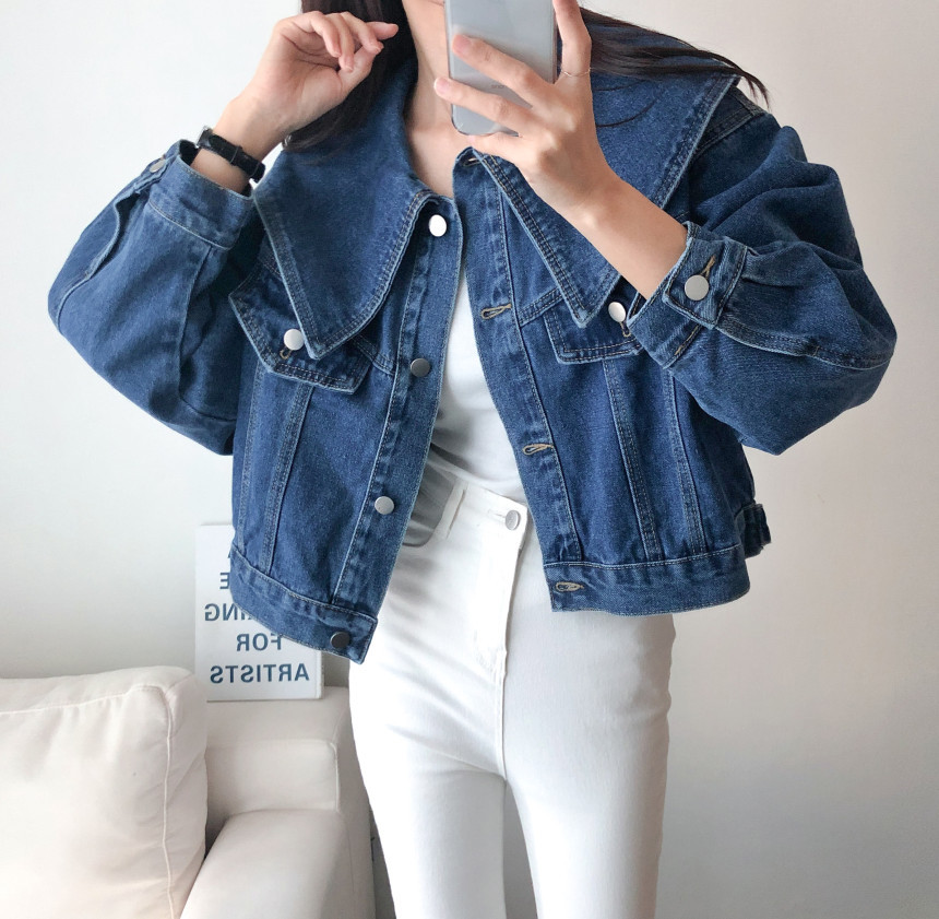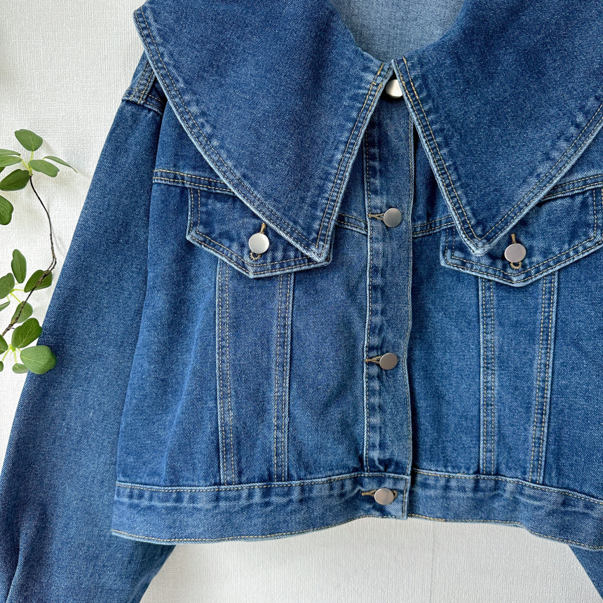 봄 2025 레트로 대형 랩 단일 가슴 느슨한 슬리밍 짧은 긴팔 재킷 여성용 데님 코트
