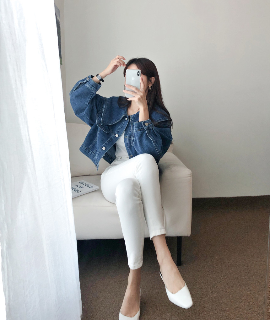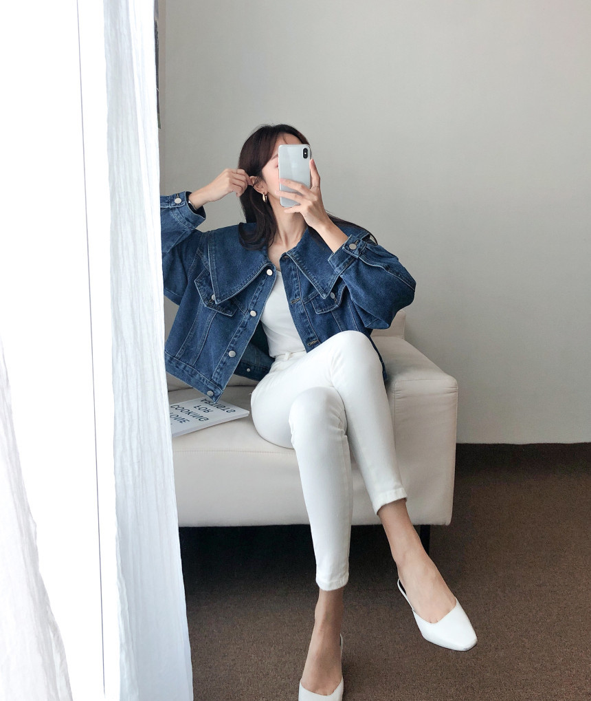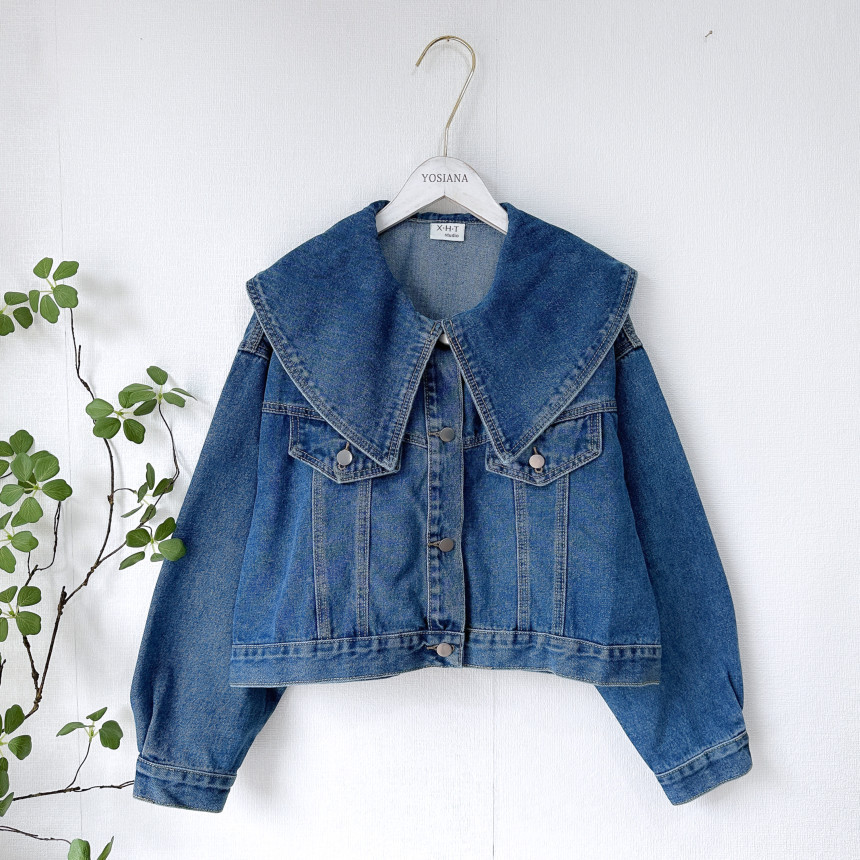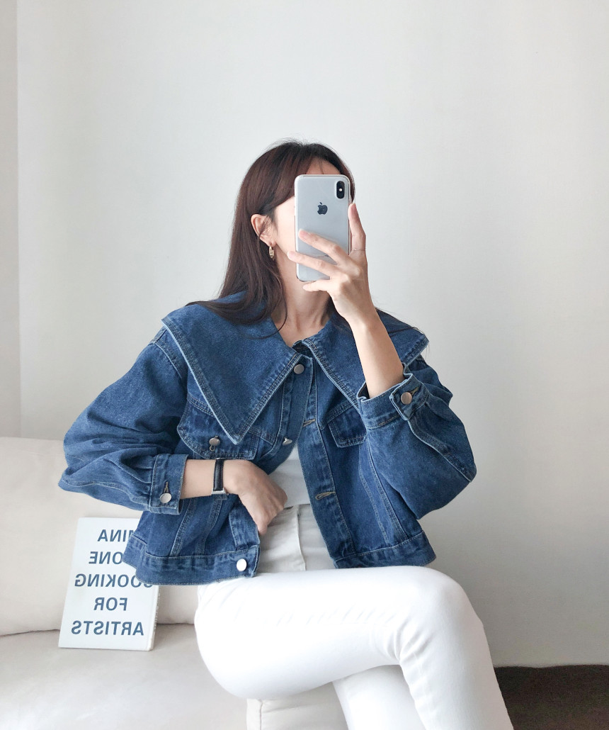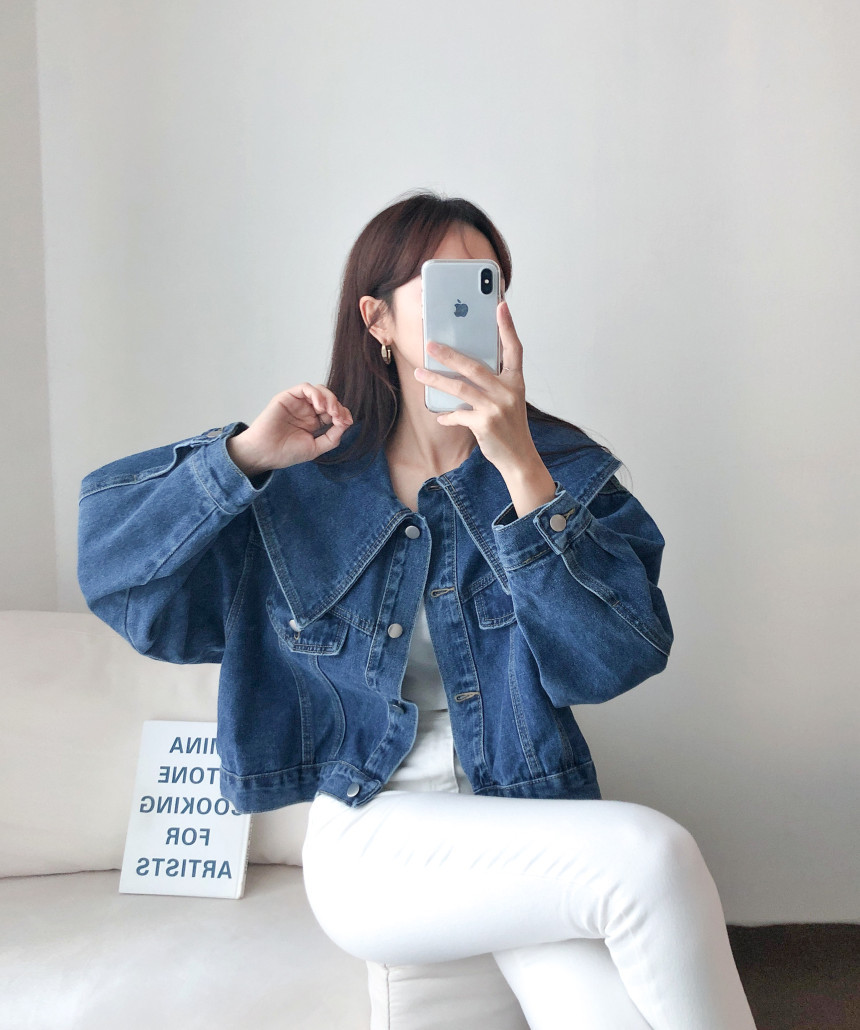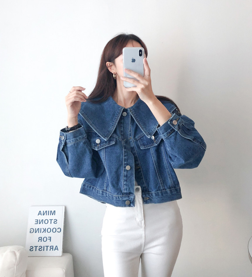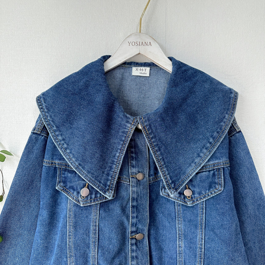봄 2025 레트로 대형 랩 단일 가슴 느슨한 슬리밍 짧은 긴팔 재킷 여성용 데님 코트