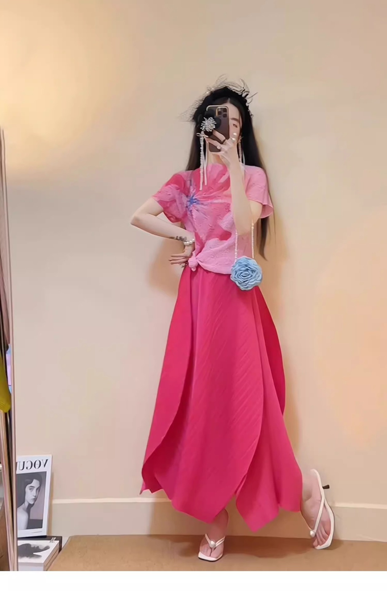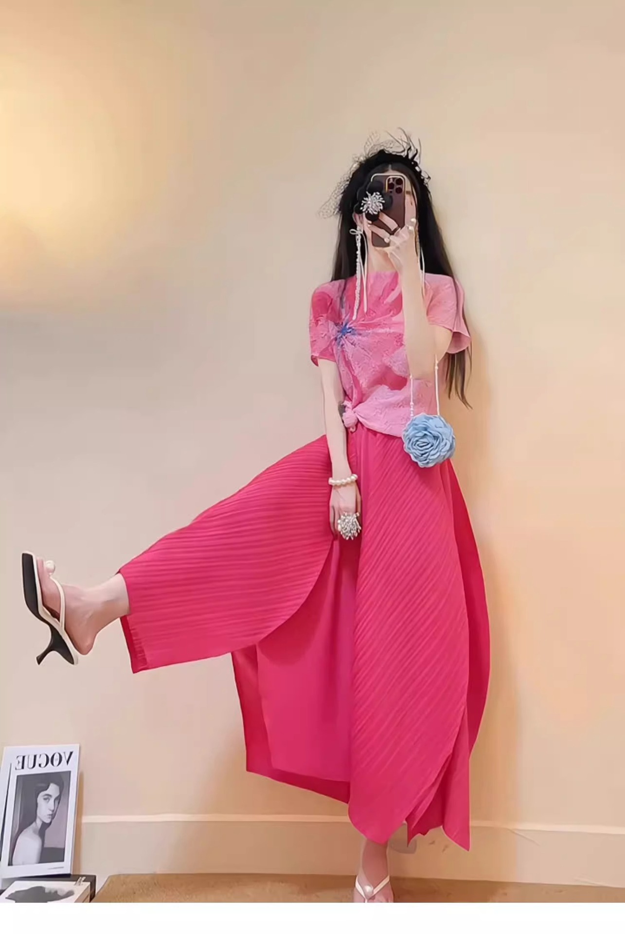 • 로즈 레드 스커트