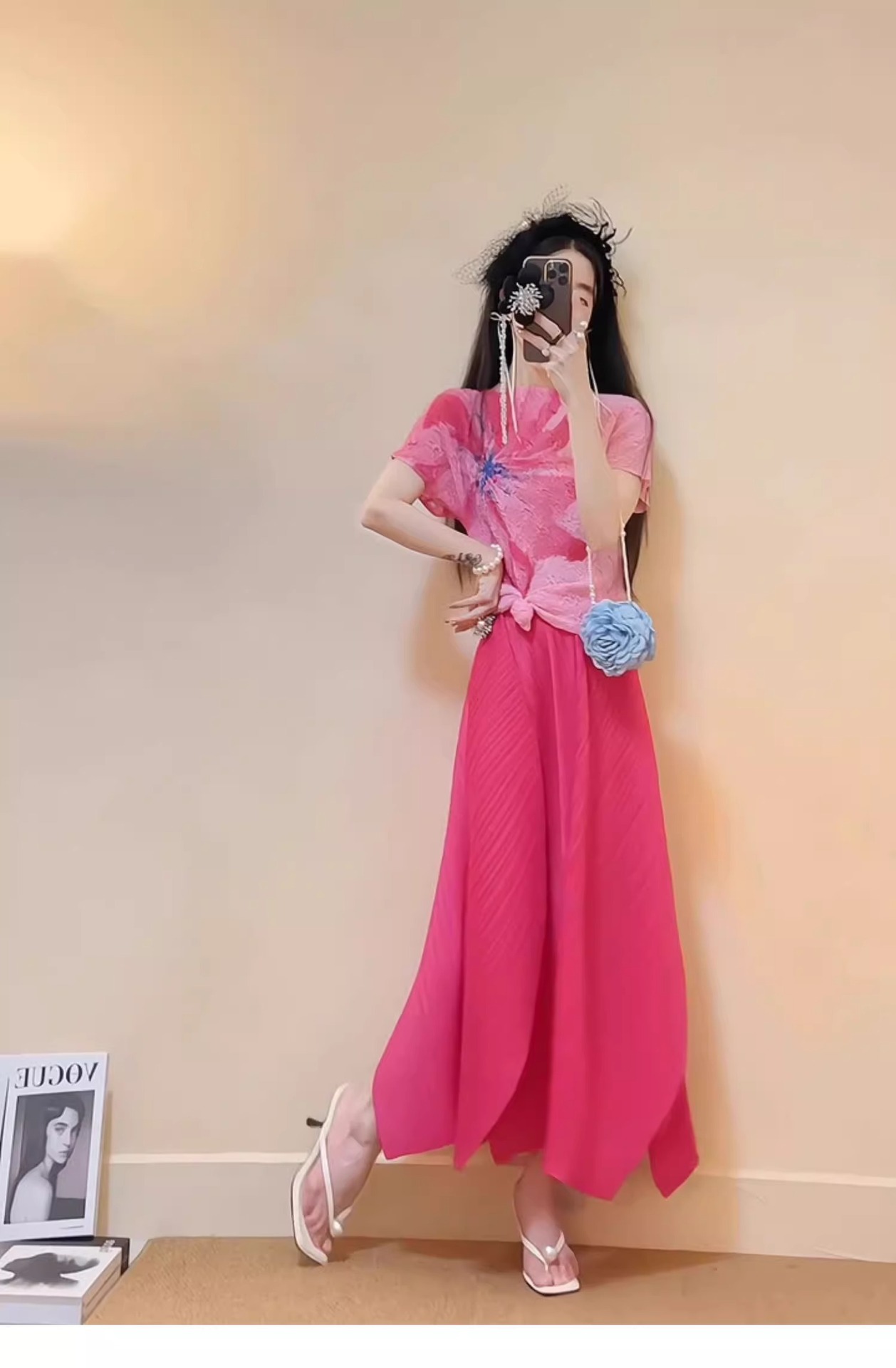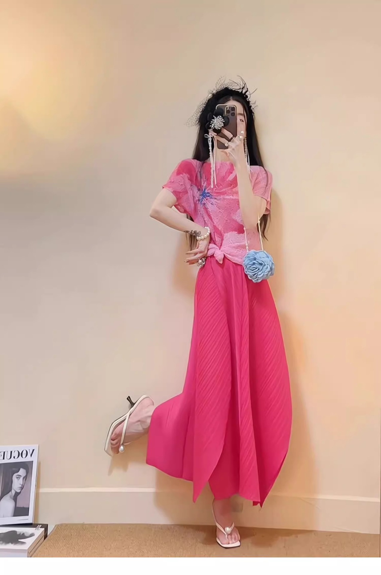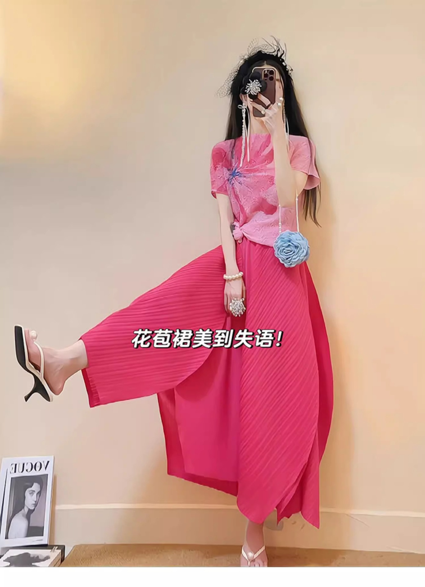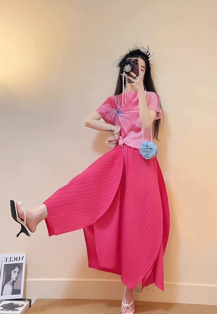 미야케 2025 봄 새로운 세트 여성 패션 세련된 세련된 주름 최고 치마 투피스스토어 가기