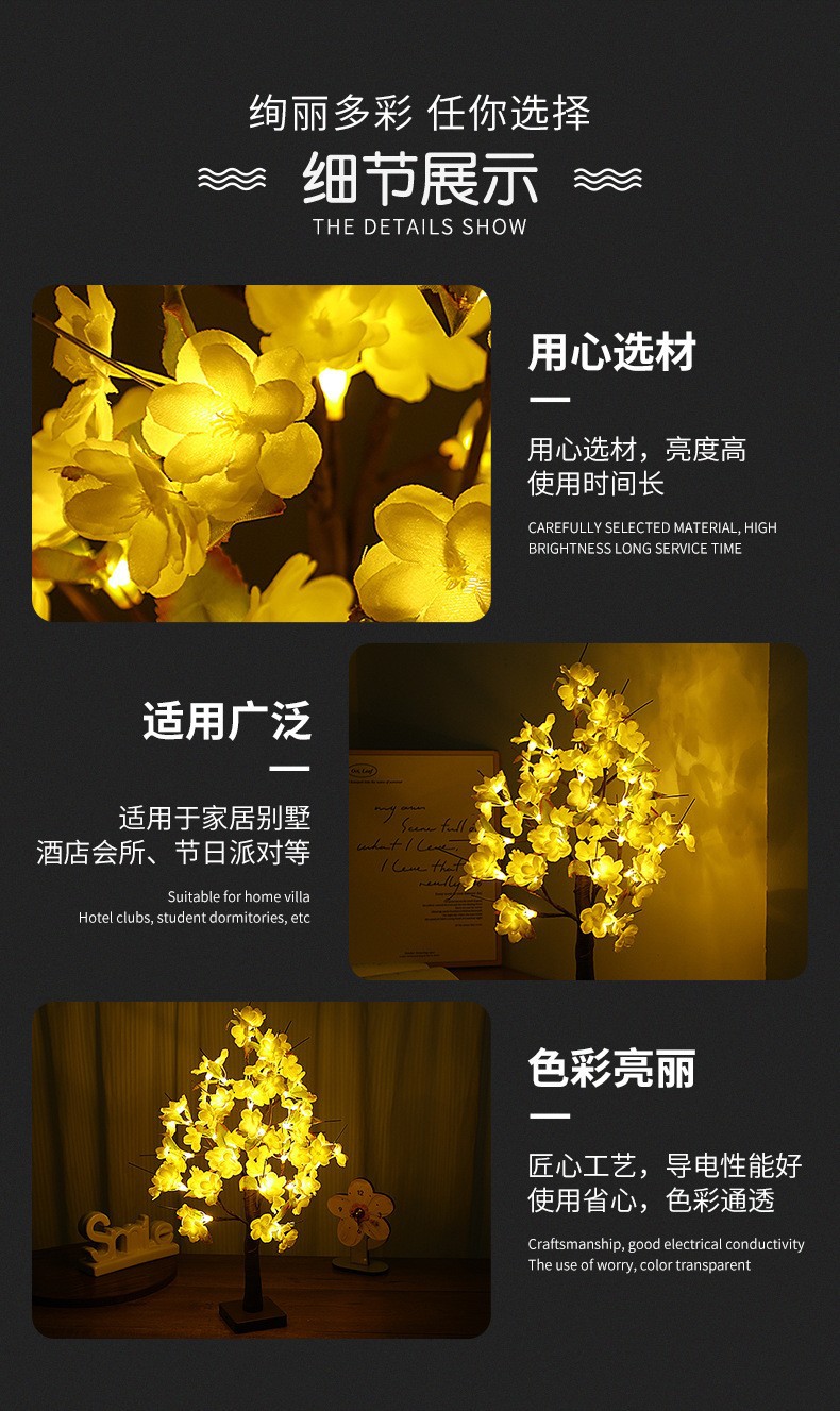 LED 시뮬레이션 배 꽃 나무 램프 국경 새로운 야간 조명 활동 파티 장면 레이아웃 빛나는 나무 장식품 모델링