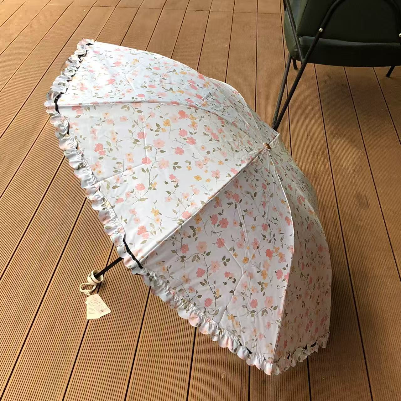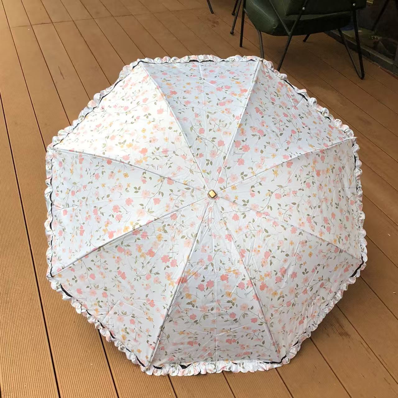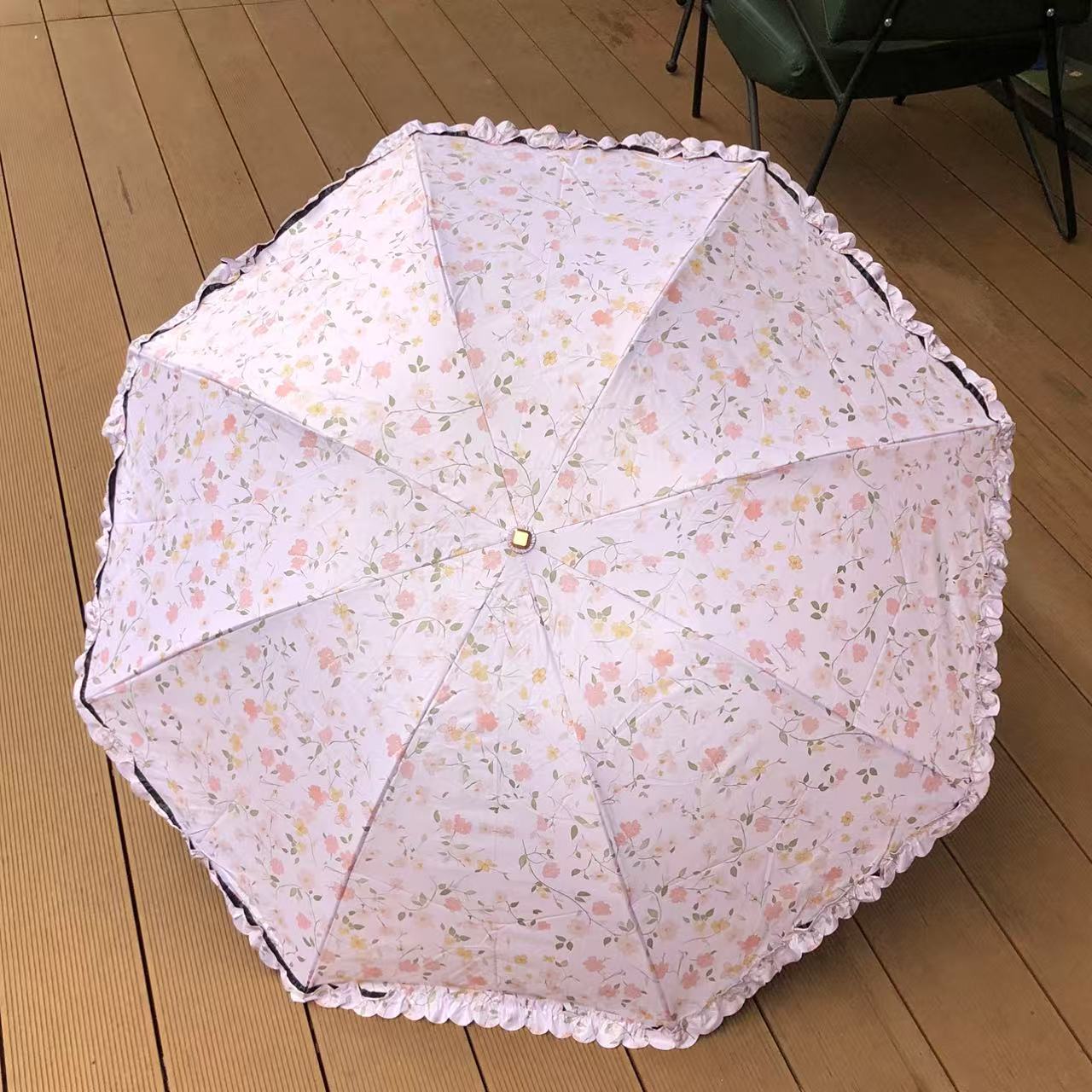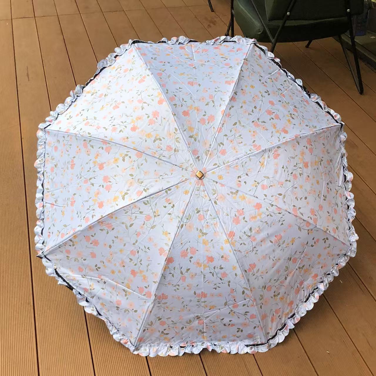 목가적 인 스타일 작은 꽃 Ins 3 배 우산 블랙 고무 양산 우산 선스크린 방풍 자외선 방지 햇빛과 방비 이중 목적 접기스토어 가기