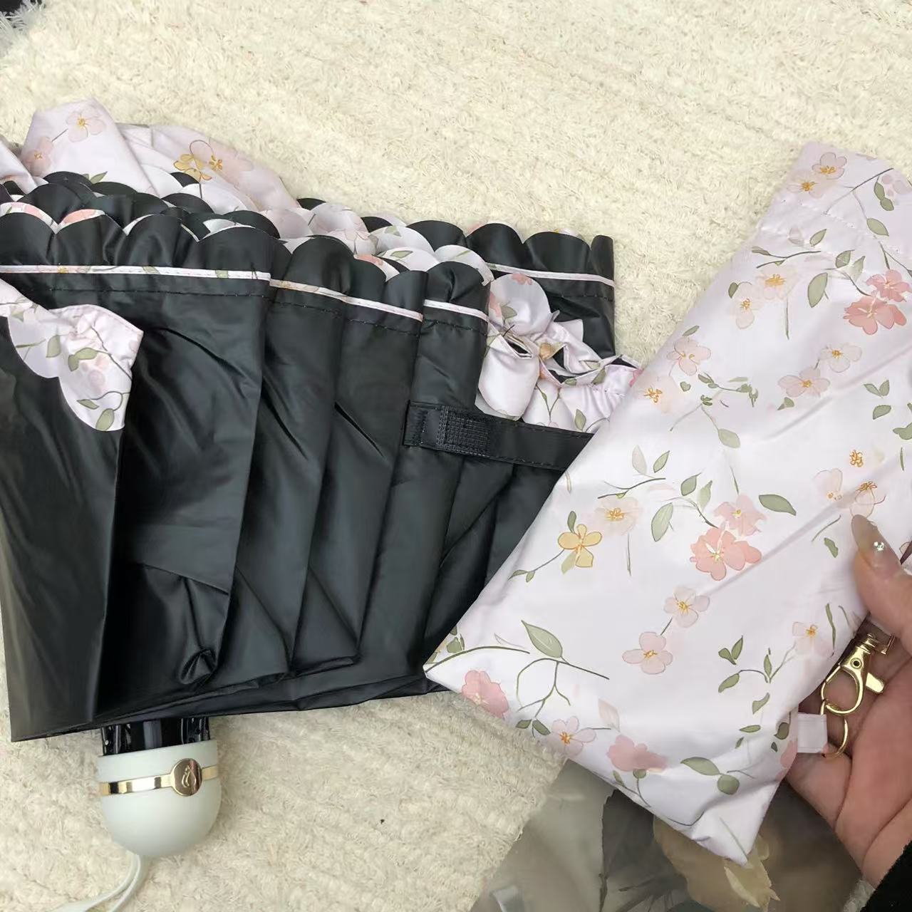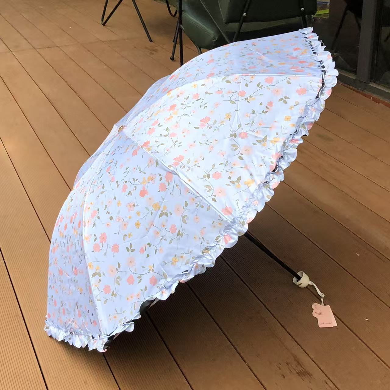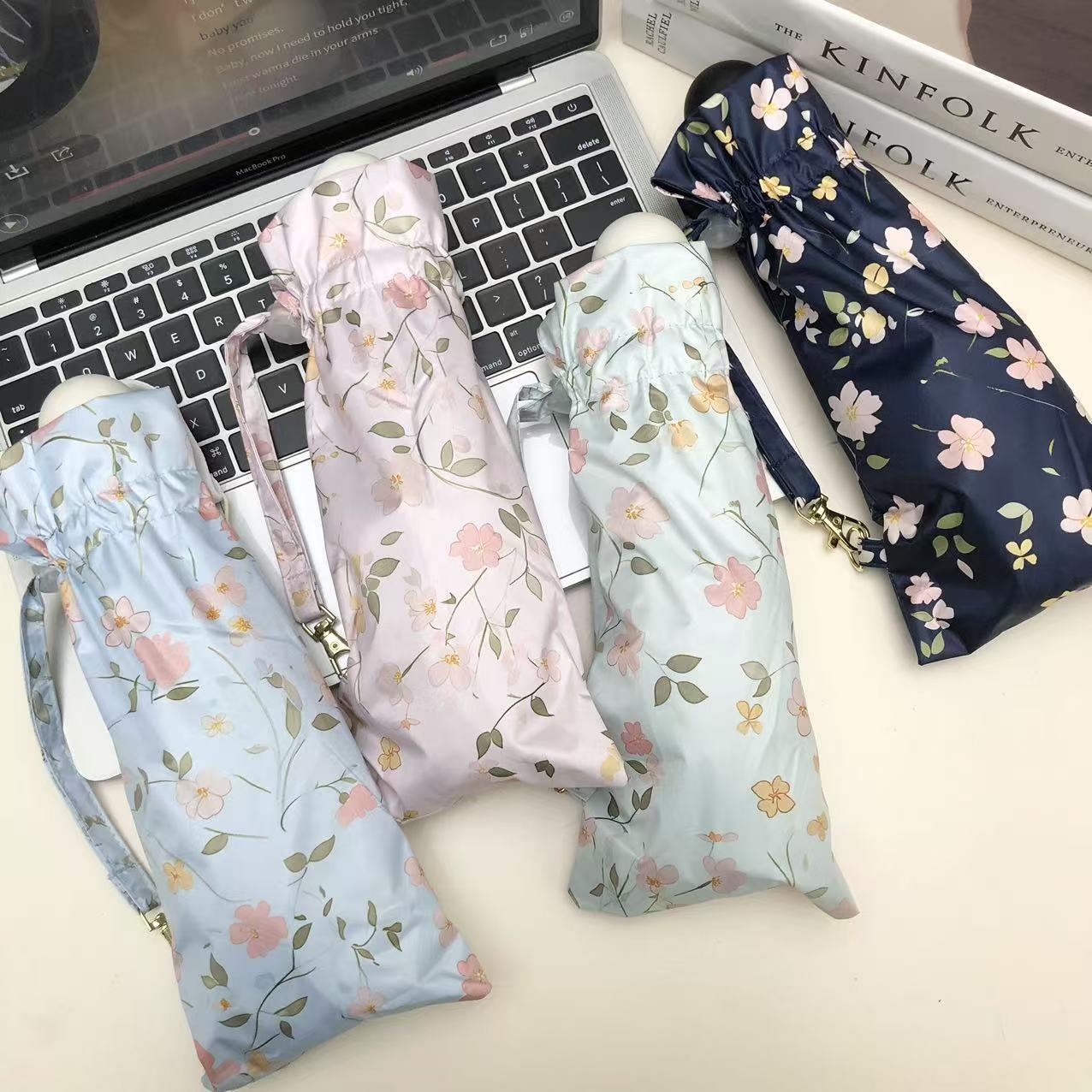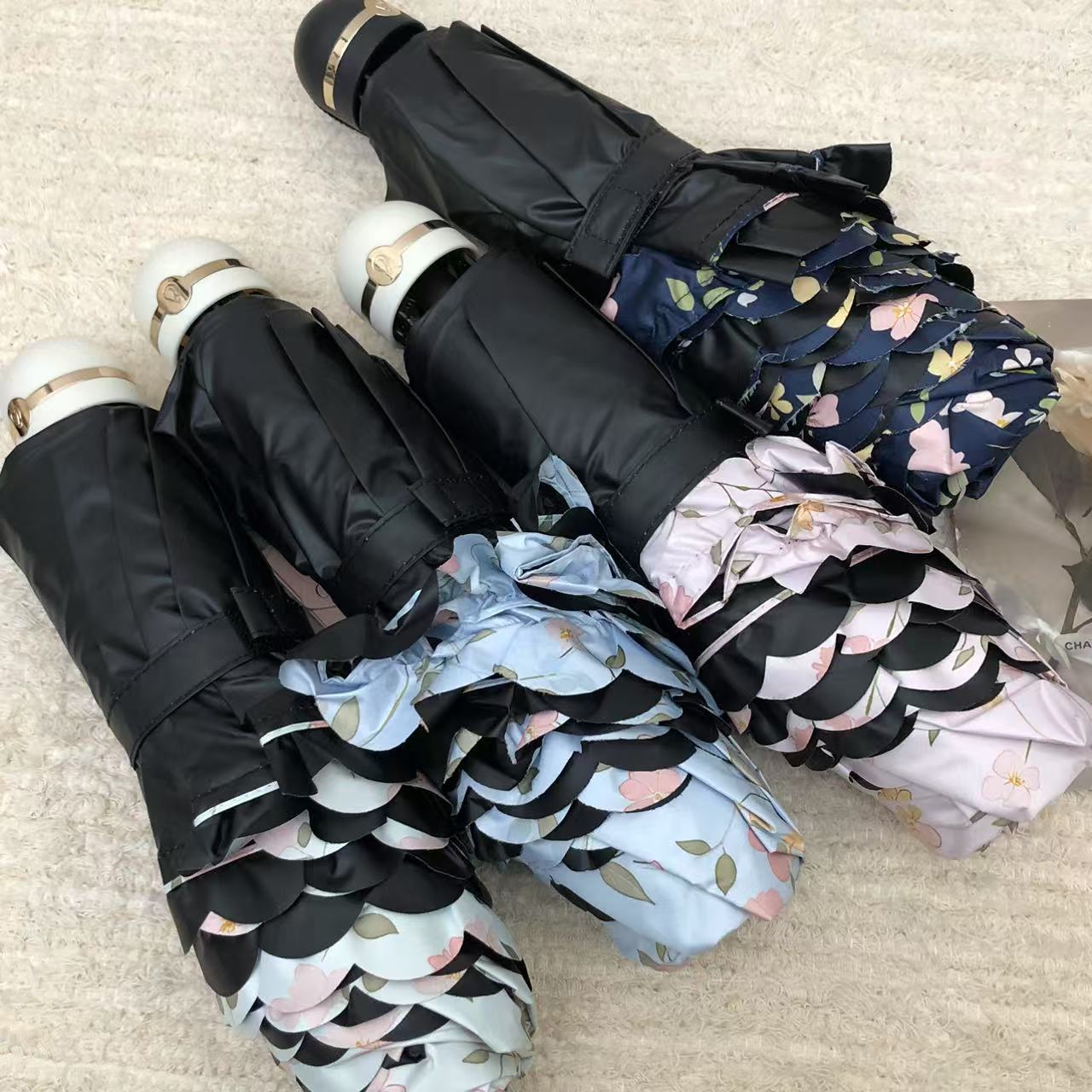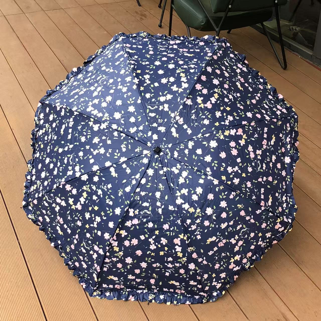 목가적 인 스타일 작은 꽃 Ins 3 배 우산 블랙 고무 양산 우산 선스크린 방풍 자외선 방지 햇빛과 방비 이중 목적 접기스토어 가기