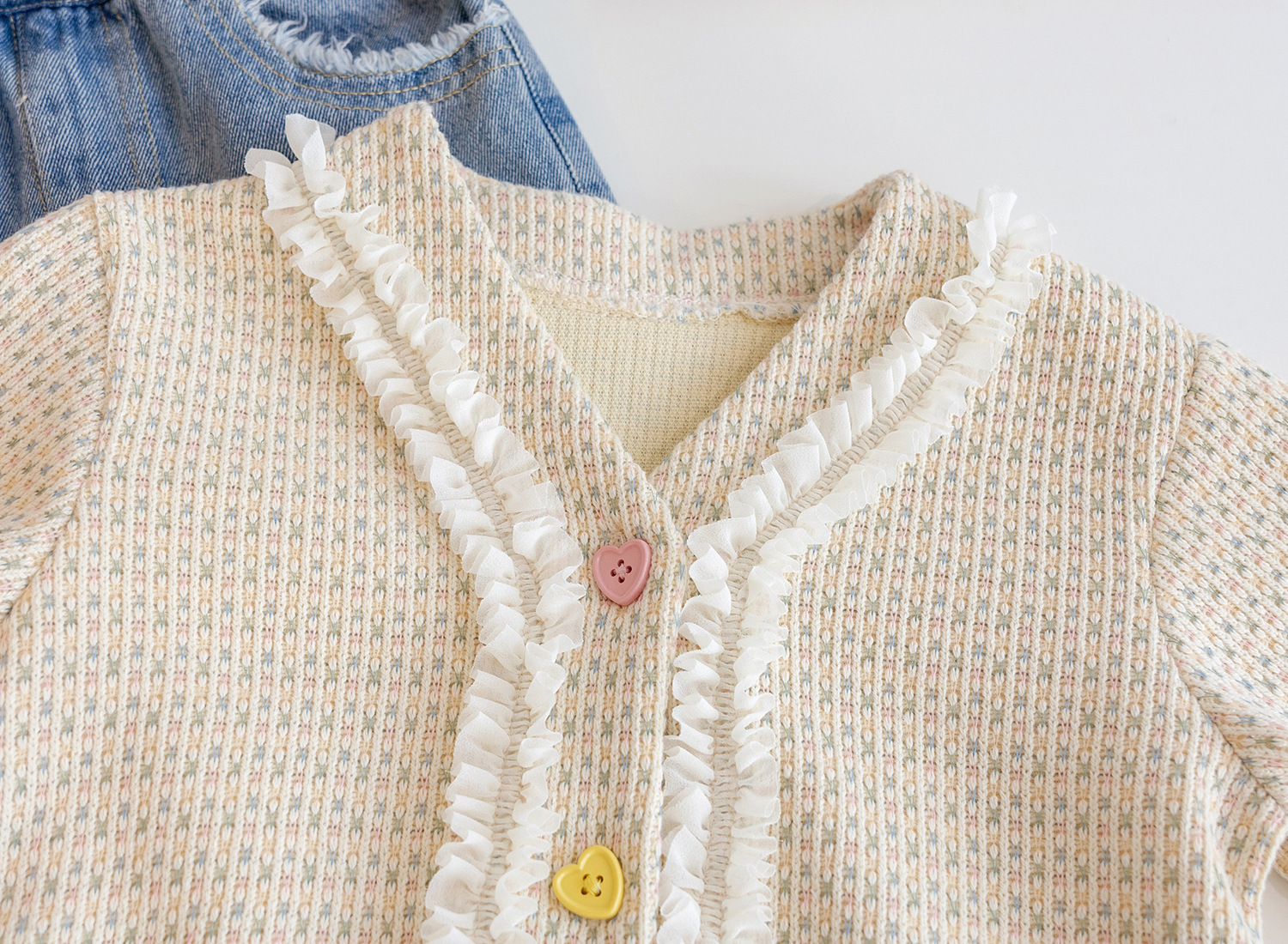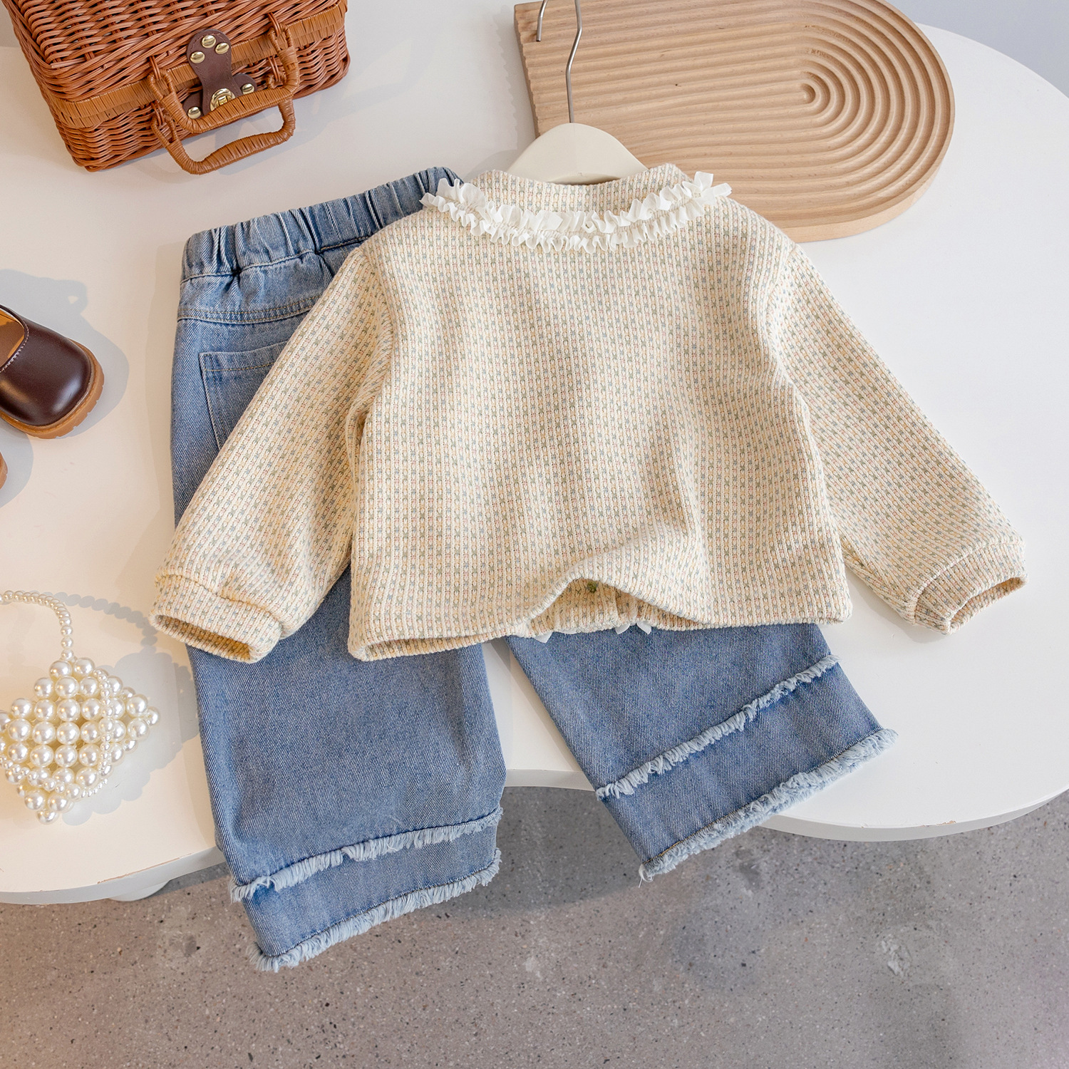 여아 2026 봄/가을 신상 아동복 귀여운 니트 가디건 상의와 청바지 투피스 세트 여아복스토어 가기