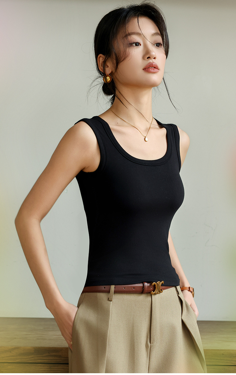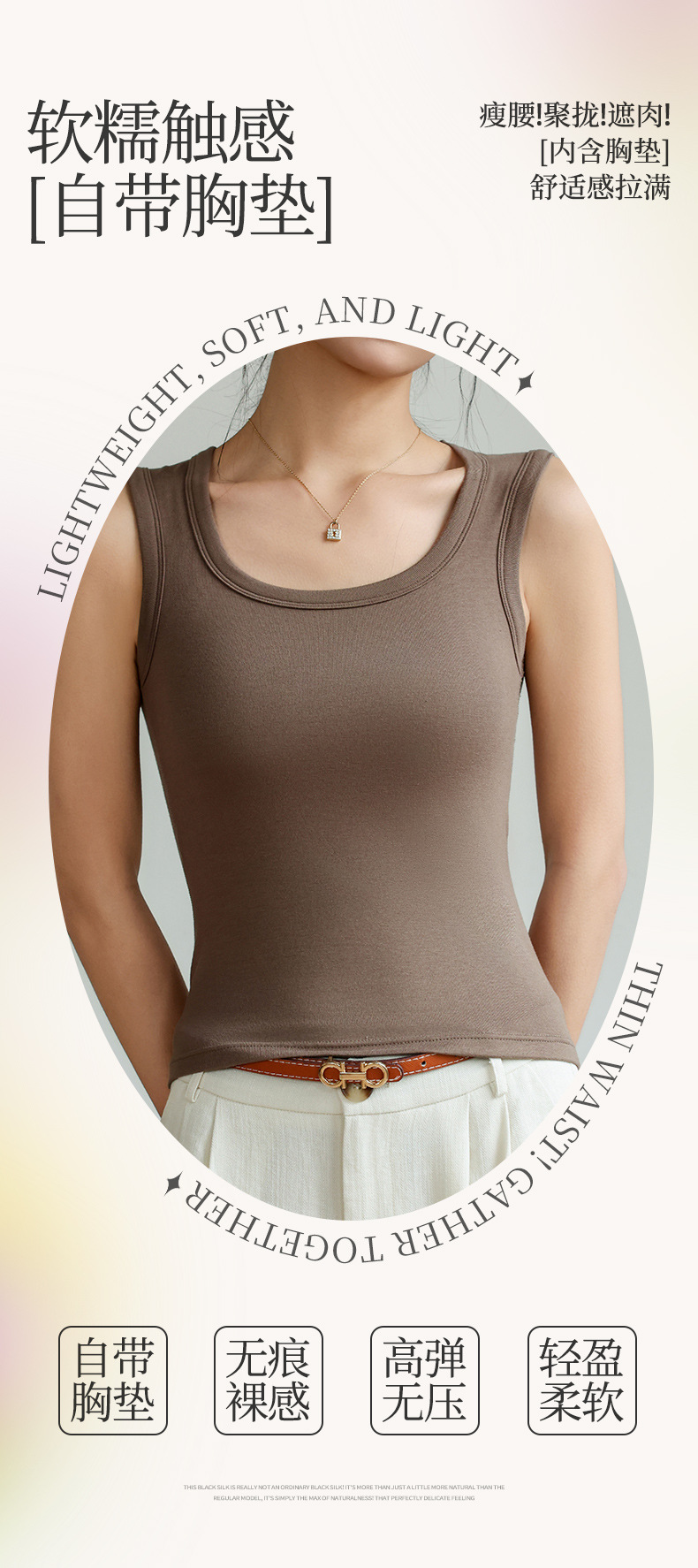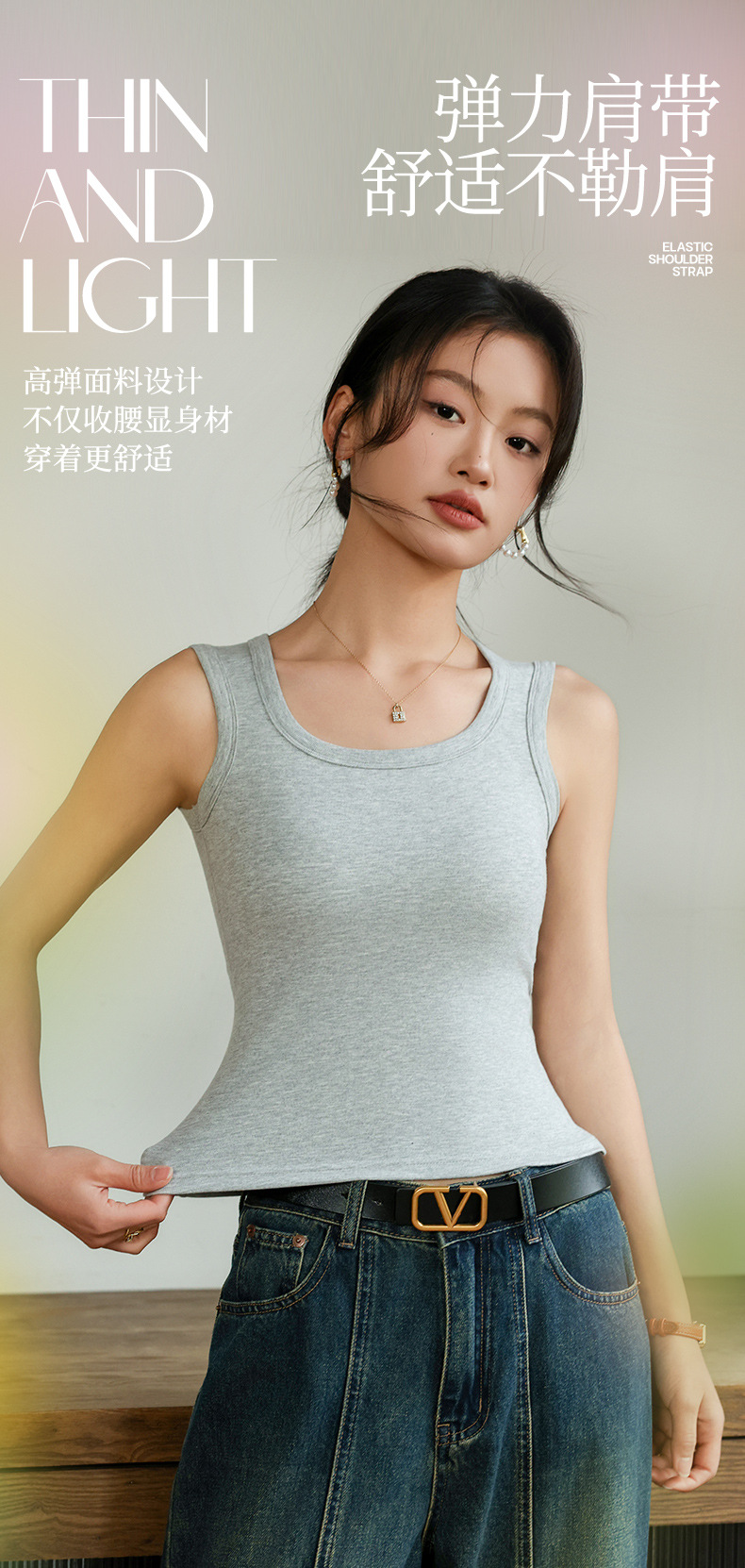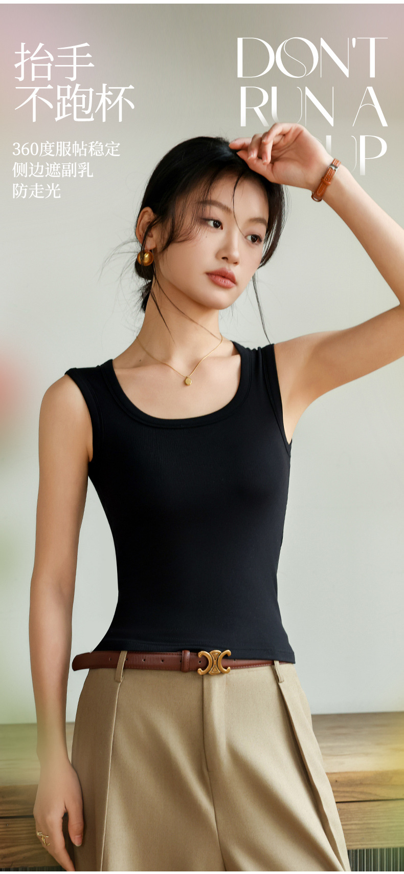 2024 와이드 숄더 스트랩 싱글웨어/아우터웨어 베스트 가슴 패드 내장 일체형 여성 상의 9914 멜빵 민소매 와이드 숄더 베스트스토어 가기