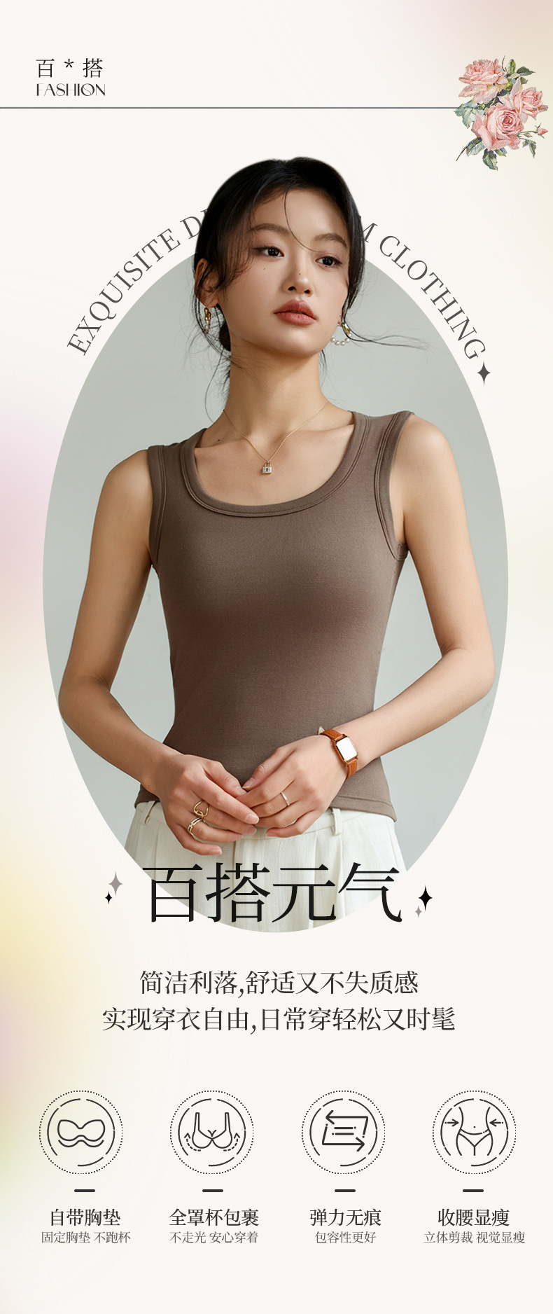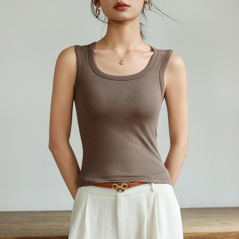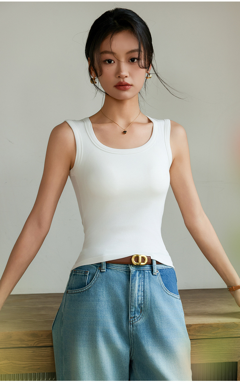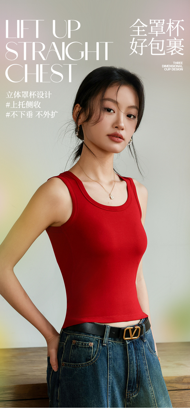 2024 와이드 숄더 스트랩 싱글웨어/아우터웨어 베스트 가슴 패드 내장 일체형 여성 상의 9914 멜빵 민소매 와이드 숄더 베스트스토어 가기