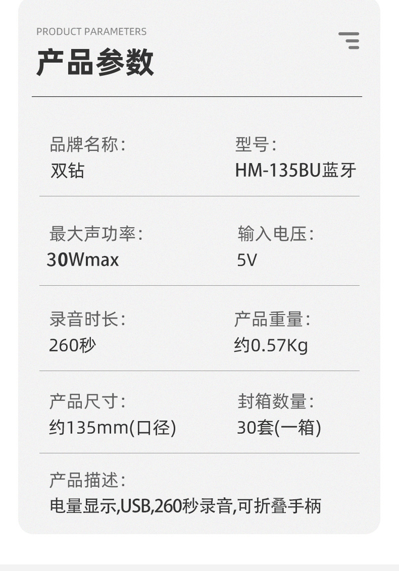 더블 드릴 20W 휴대용 라우드 스피커 접이식 야외 실속 녹음 경적 C 광고 블루투스 라우드 스피커스토어 가기