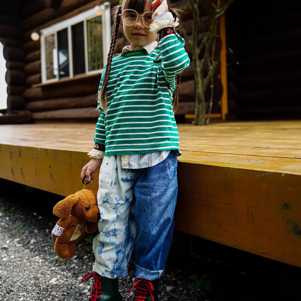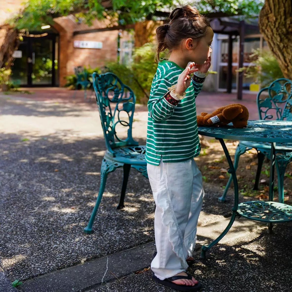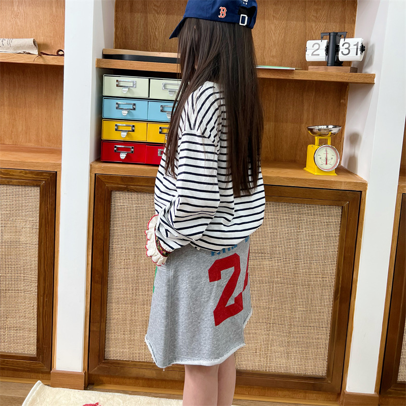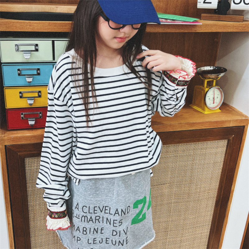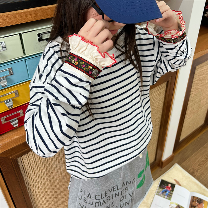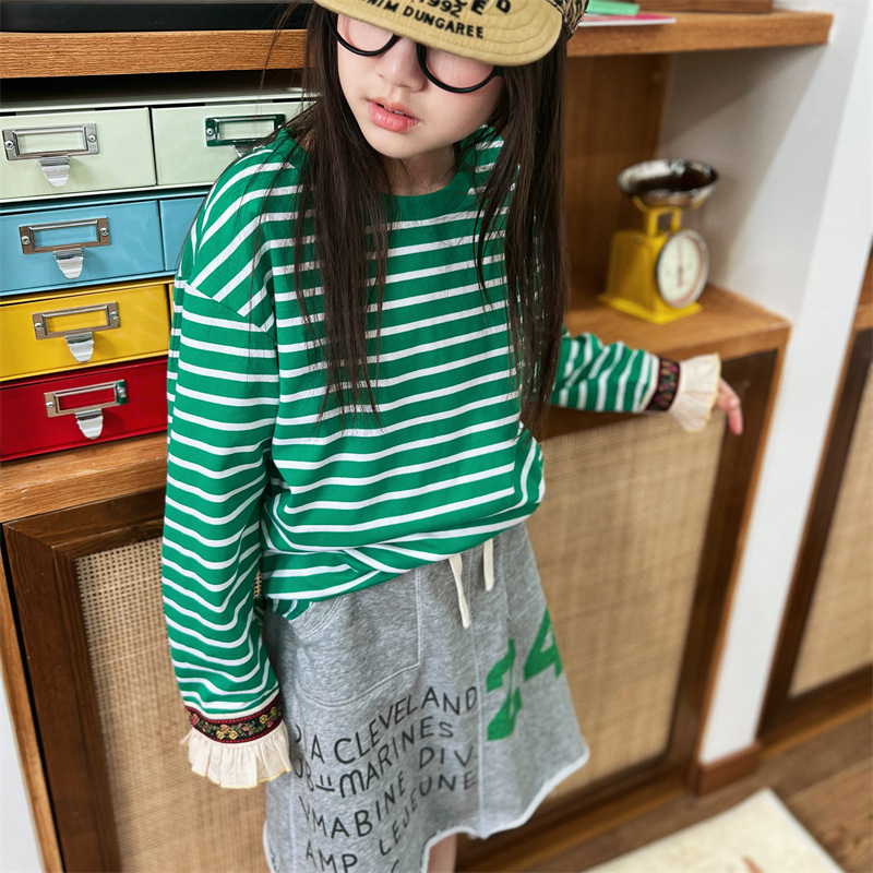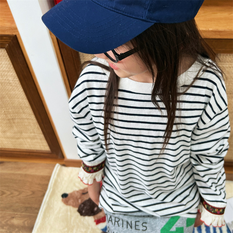 2025 봄 여름 신작 아동용 셔츠 소녀 레이스 슬리브 다용도 스트라이프 티셔츠