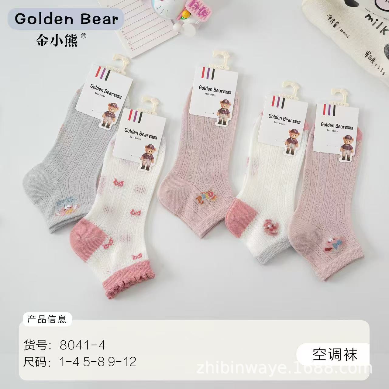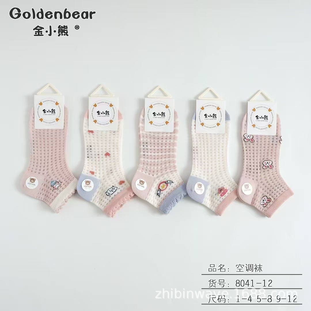 골든 베어 여름 새로운 어린이 초박형 아이스 실크 홀 에어컨 양말 만화 짧은 허리 양말 어린이 보트 배치