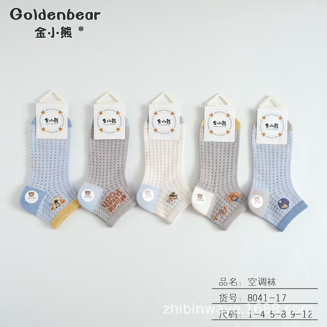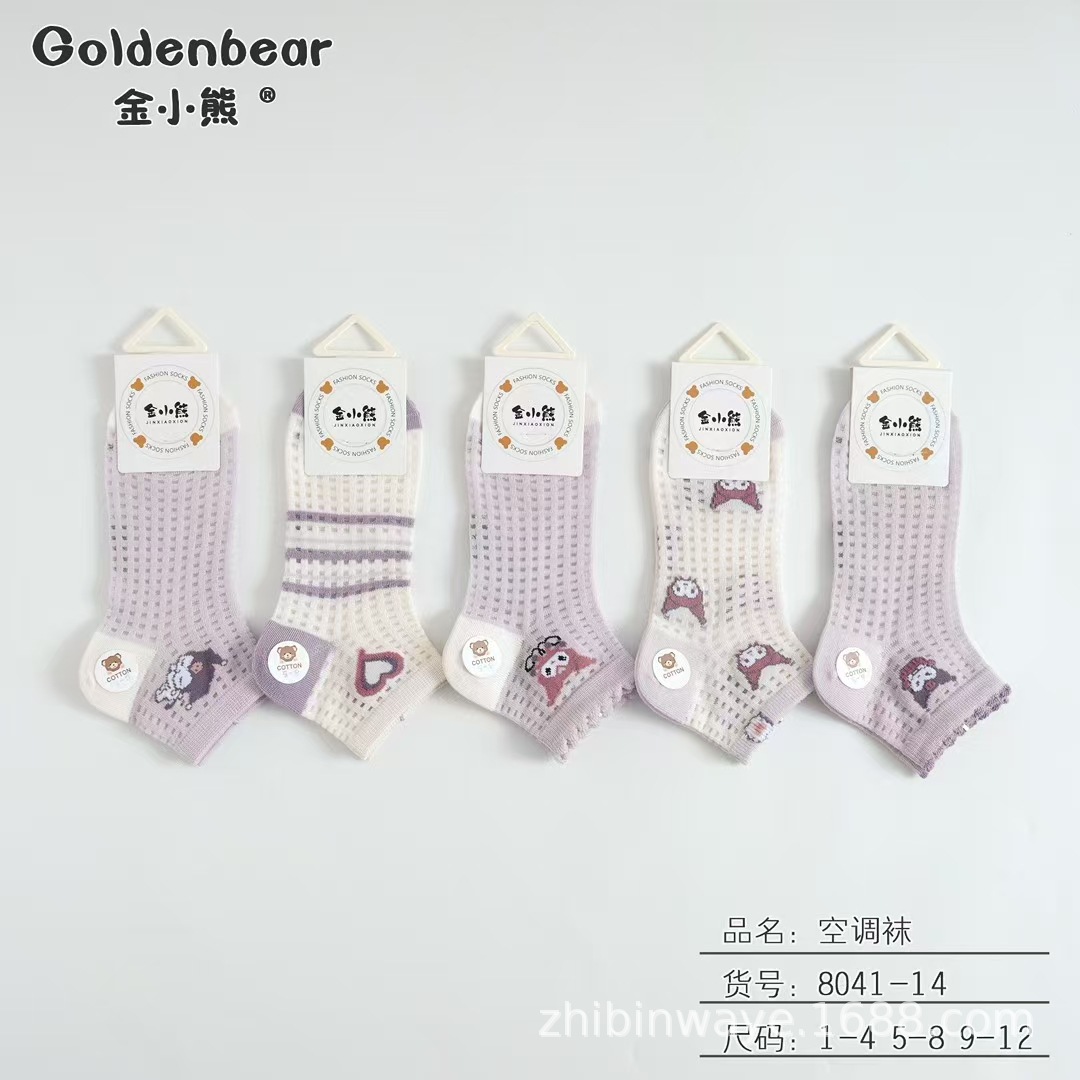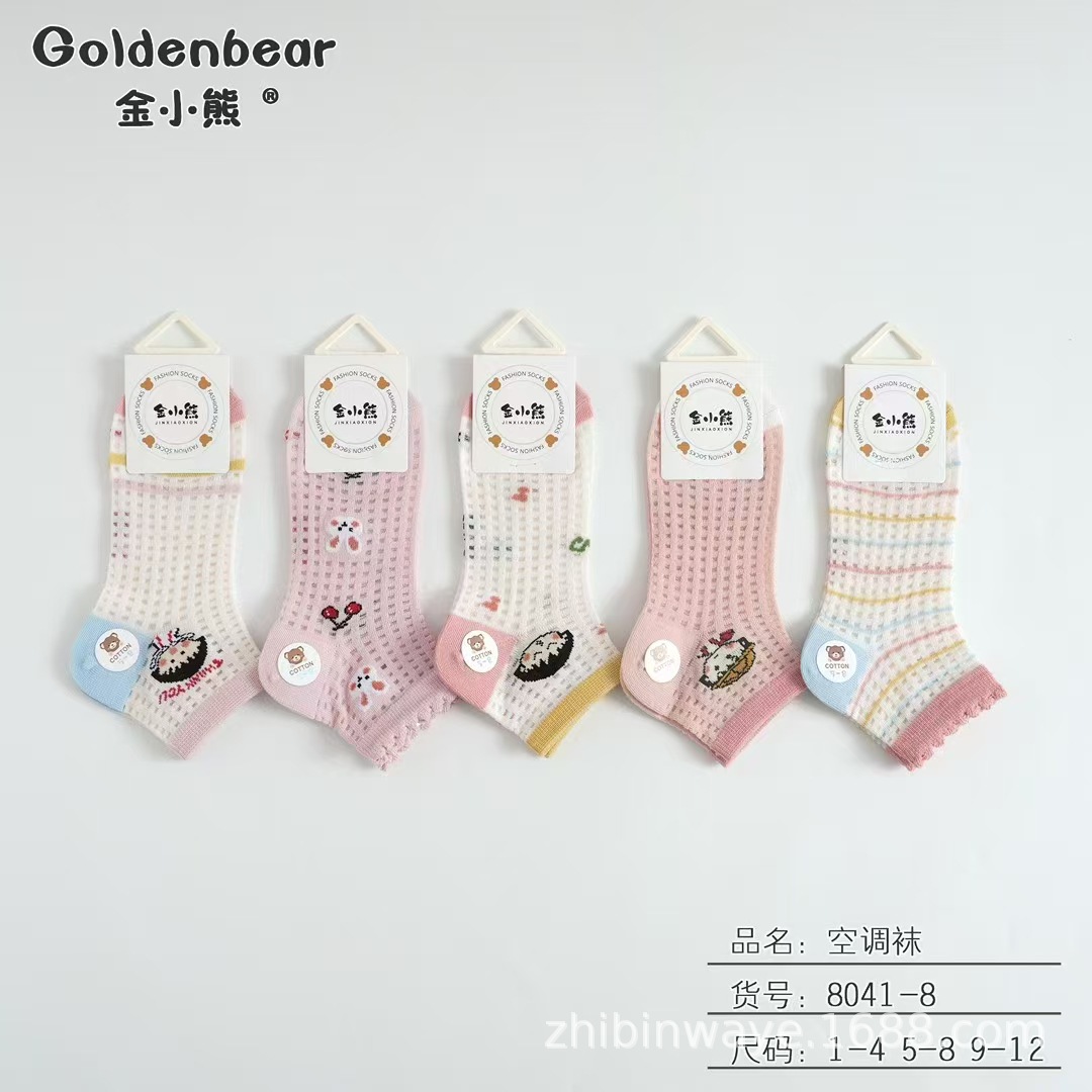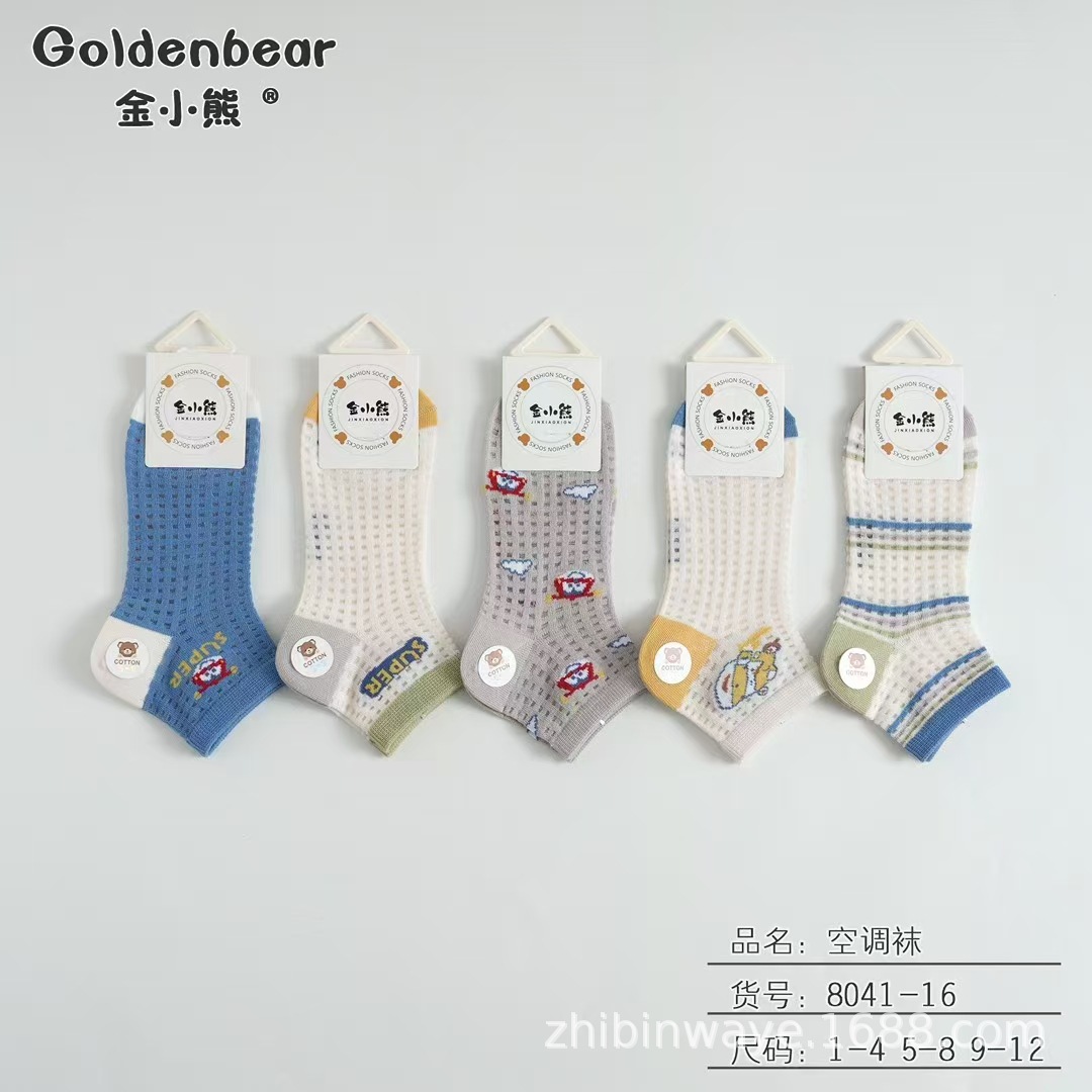 골든 베어 여름 새로운 어린이 초박형 아이스 실크 홀 에어컨 양말 만화 짧은 허리 양말 어린이 보트 배치스토어 가기