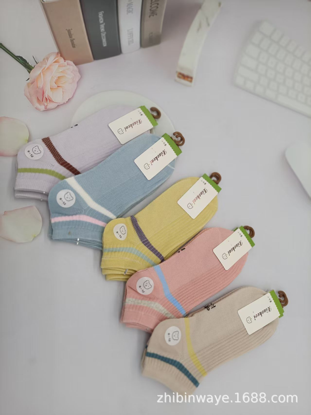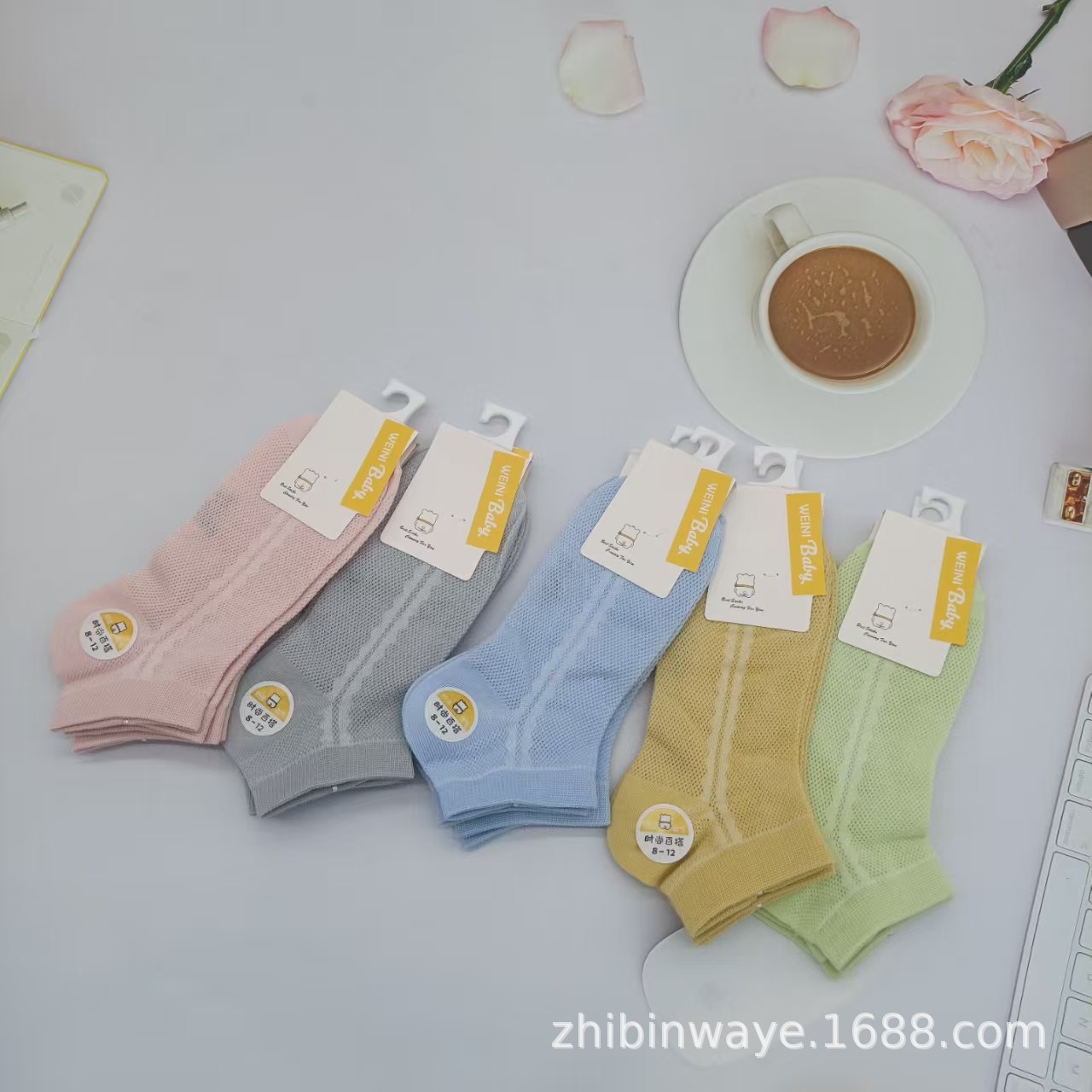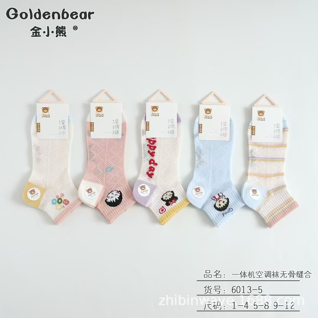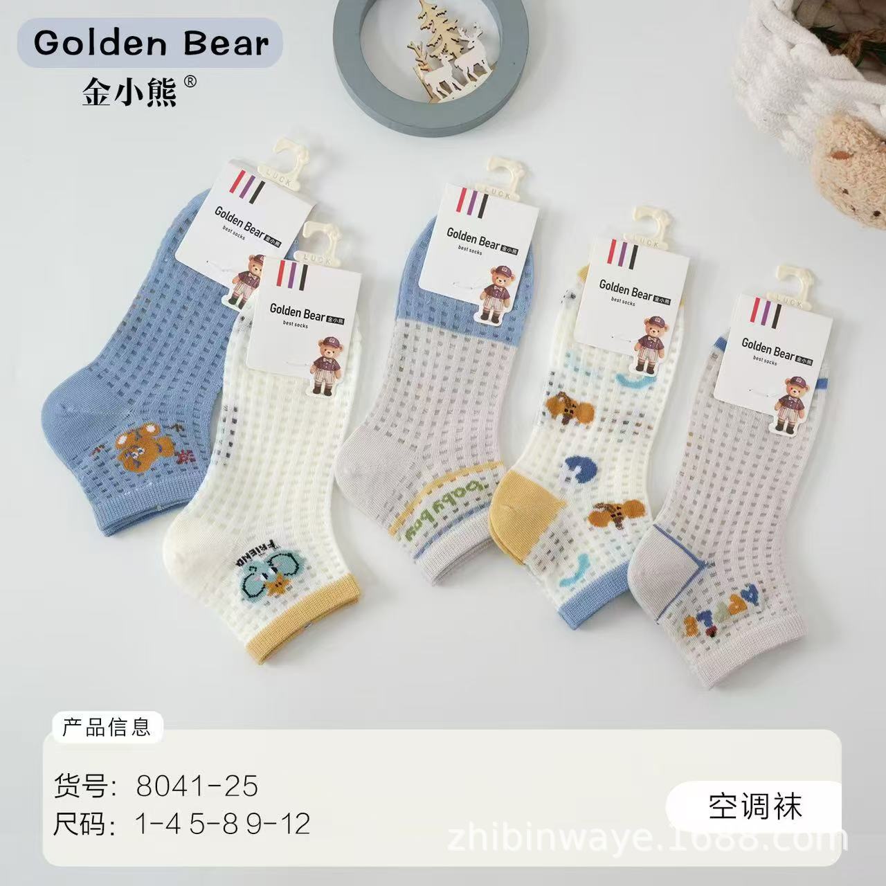 골든 베어 여름 새로운 어린이 초박형 아이스 실크 홀 에어컨 양말 만화 짧은 허리 양말 어린이 보트 배치스토어 가기