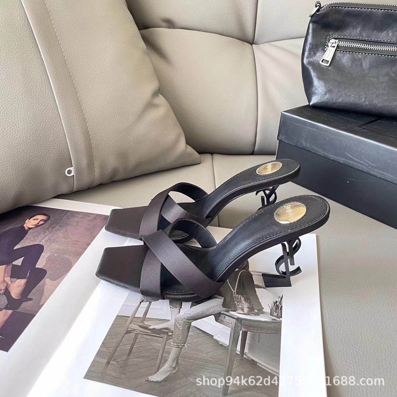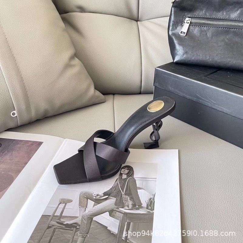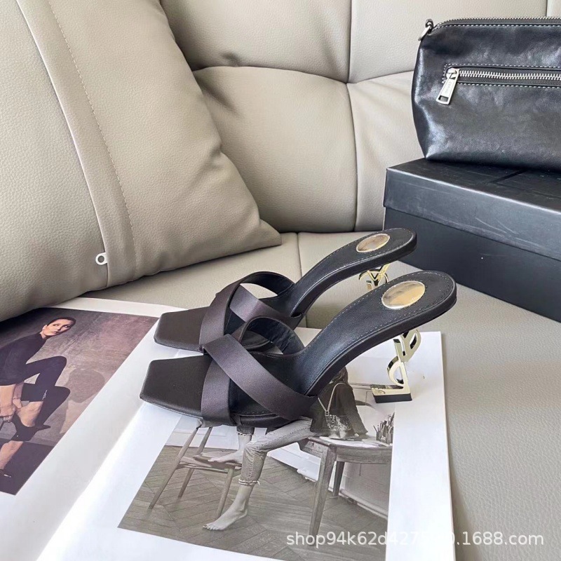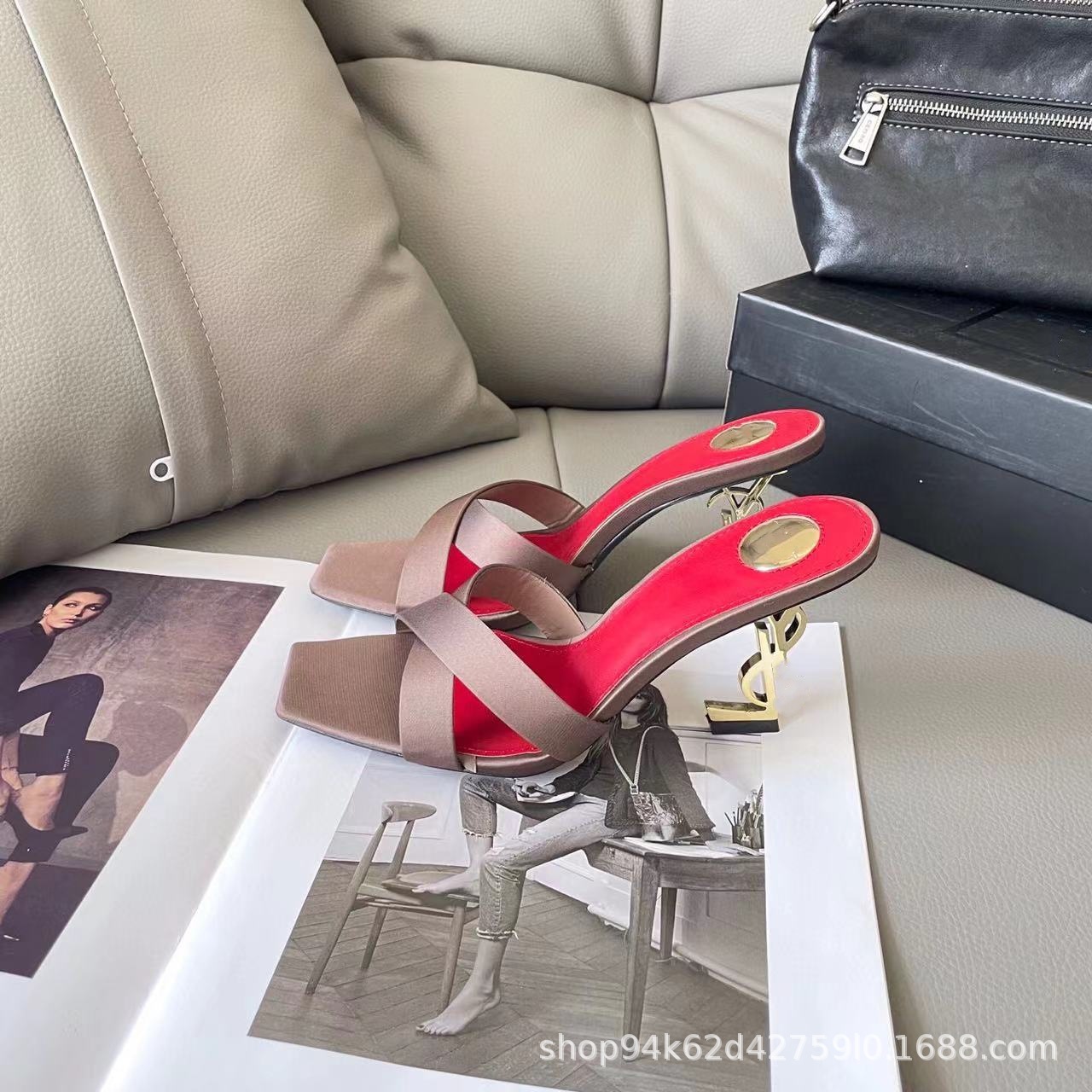 YS 하이힐 신발 봄 2022 새로운 하이힐 스퀘어 헤드 크로스 스트랩 샌들 여성 싱글 신발 로마 스타일 파인 힐 9CM스토어 가기