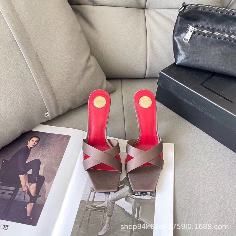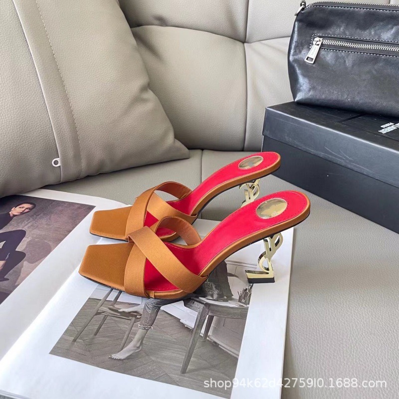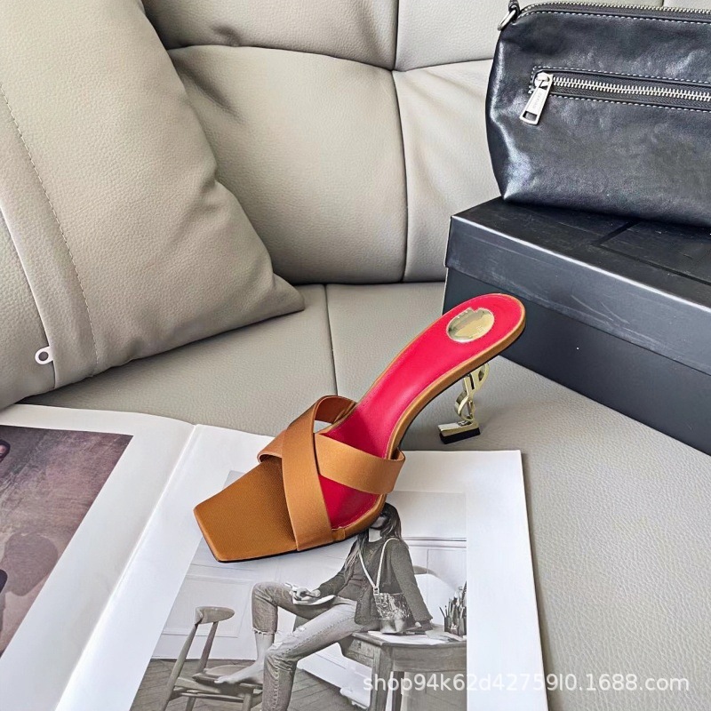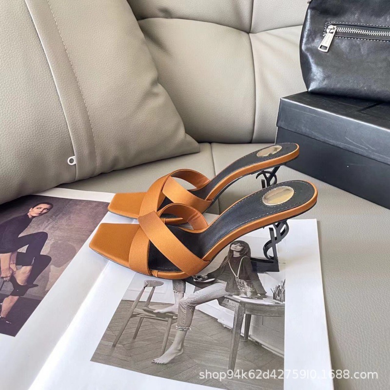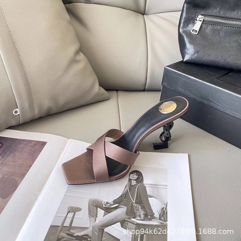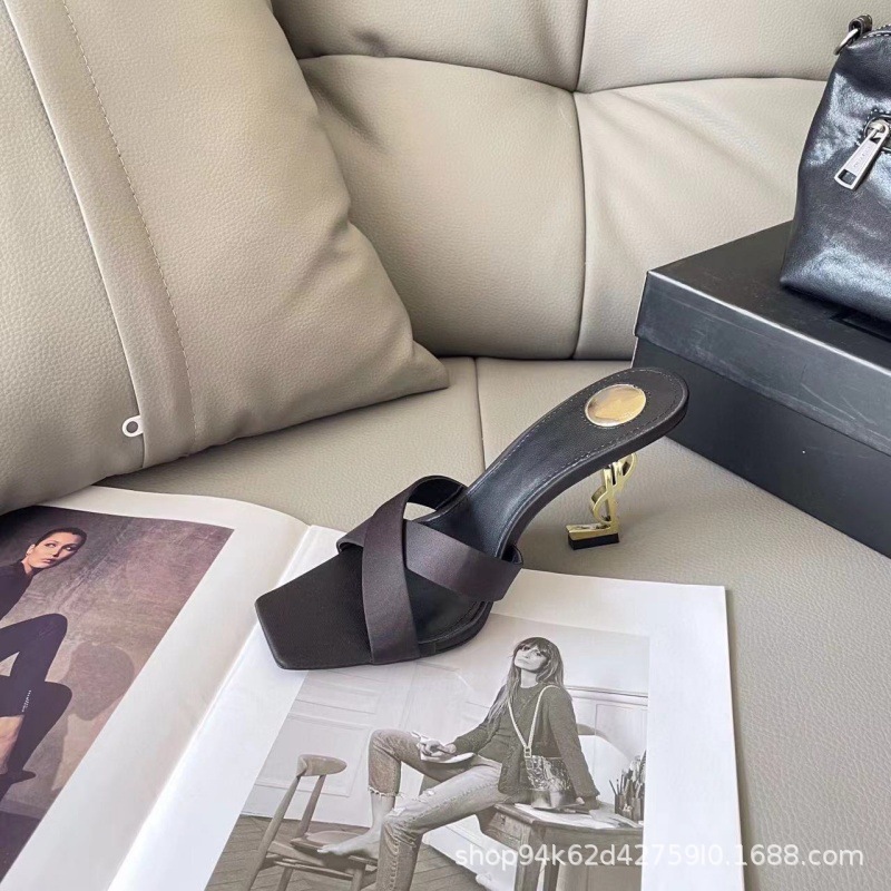 YS 하이힐 신발 봄 2022 새로운 하이힐 스퀘어 헤드 크로스 스트랩 샌들 여성 싱글 신발 로마 스타일 파인 힐 9CM스토어 가기