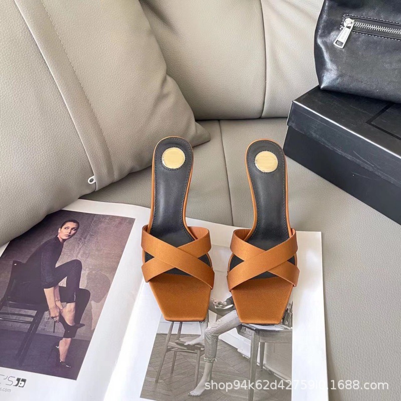 YS 하이힐 신발 봄 2022 새로운 하이힐 스퀘어 헤드 크로스 스트랩 샌들 여성 싱글 신발 로마 스타일 파인 힐 9CM