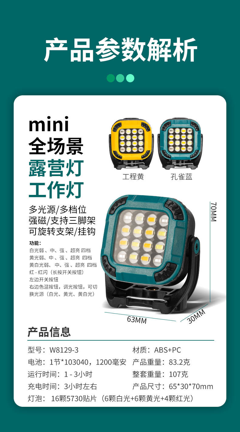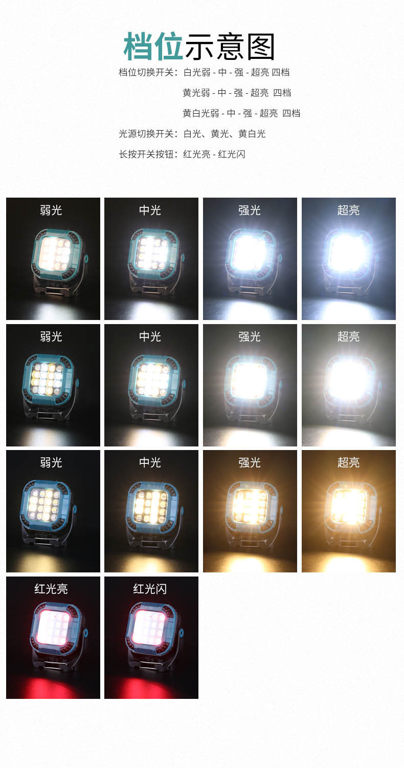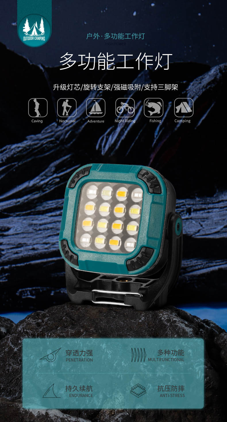 국경 전체 장면 작업 램프 멀티 기어 회전 램프 홀더 강한 자기 흡착 정원 램프 야외 캠핑 램프 검사 램프
