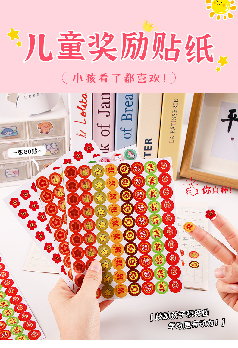 초등학생을위한 창의적인 작은 붉은 꽃 보상 스티커 귀여운 유치원 교사 엄지 손가락 보상 스티커 어린이 칭찬 스티커스토어 가기