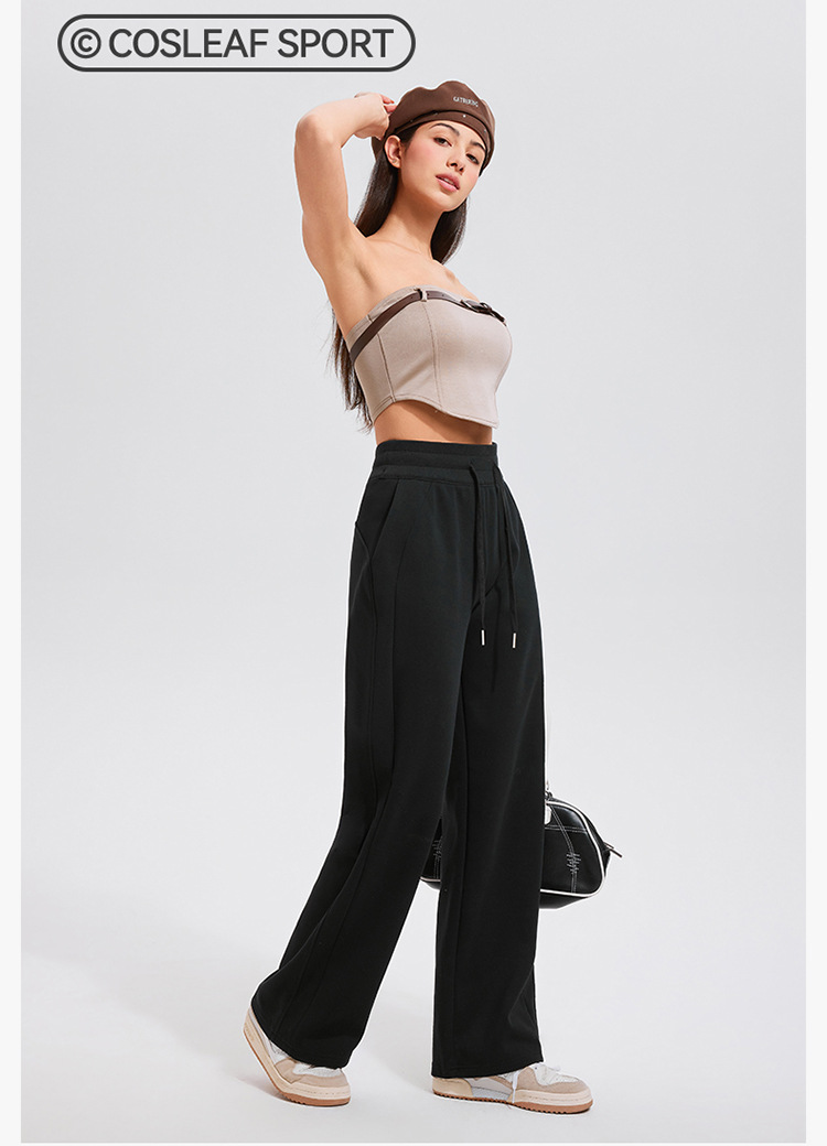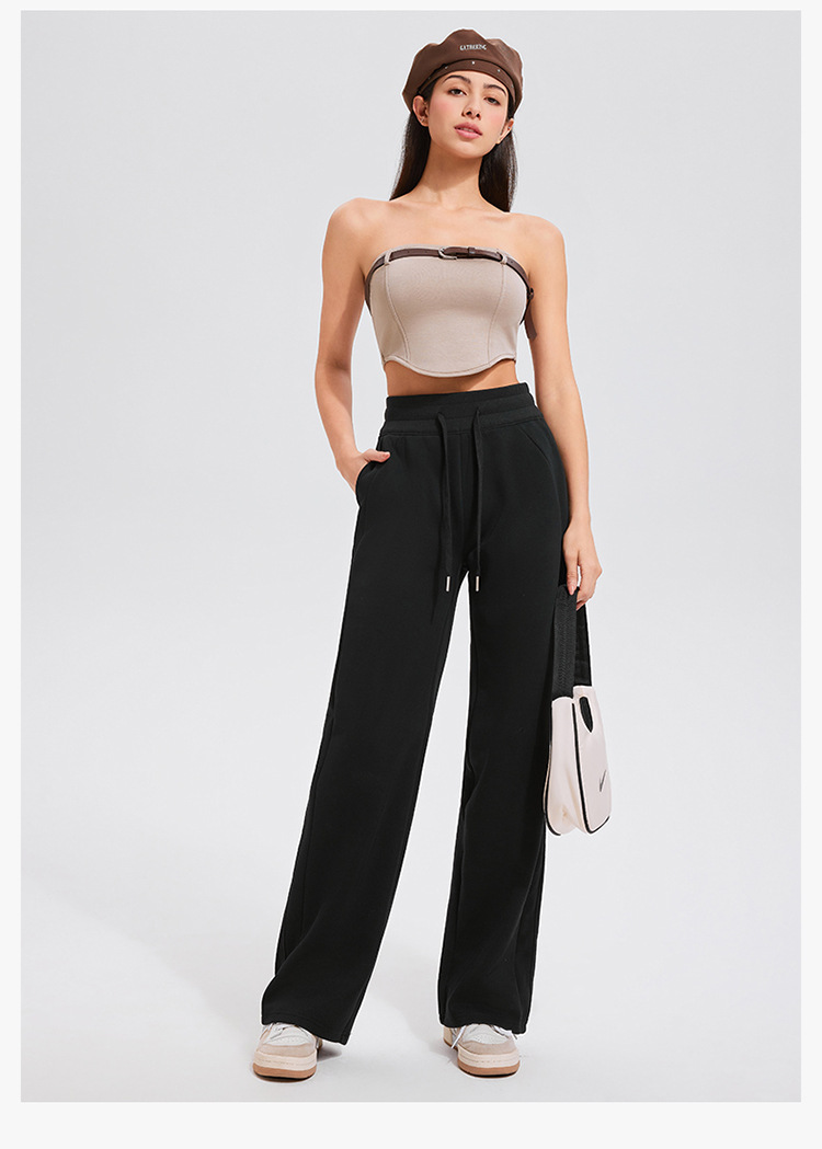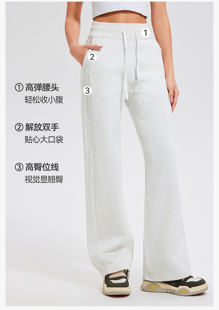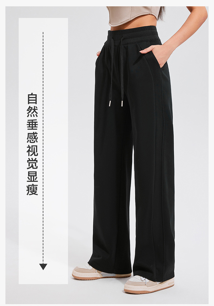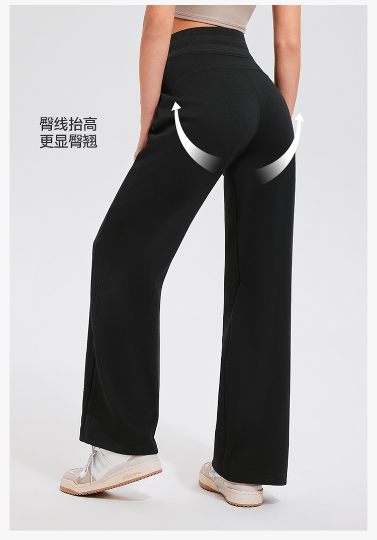 가을 겨울 신상 여성용 스포츠 바지, 뱃살 보정 하이웨이스트 드레이프 피트니스 와이드 팬츠, 스트레이트 루즈핏 캐주얼 롱 팬츠스토어 가기