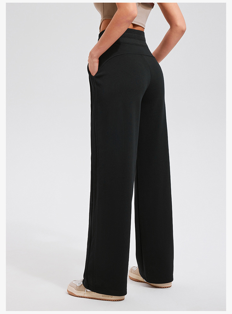 가을 겨울 신상 여성용 스포츠 바지, 뱃살 보정 하이웨이스트 드레이프 피트니스 와이드 팬츠, 스트레이트 루즈핏 캐주얼 롱 팬츠
