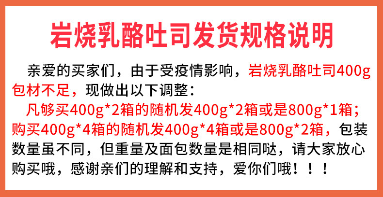 • 400g 1박스(바위구이 토스트) 2개를 800g 1박스로 보내드립니다.