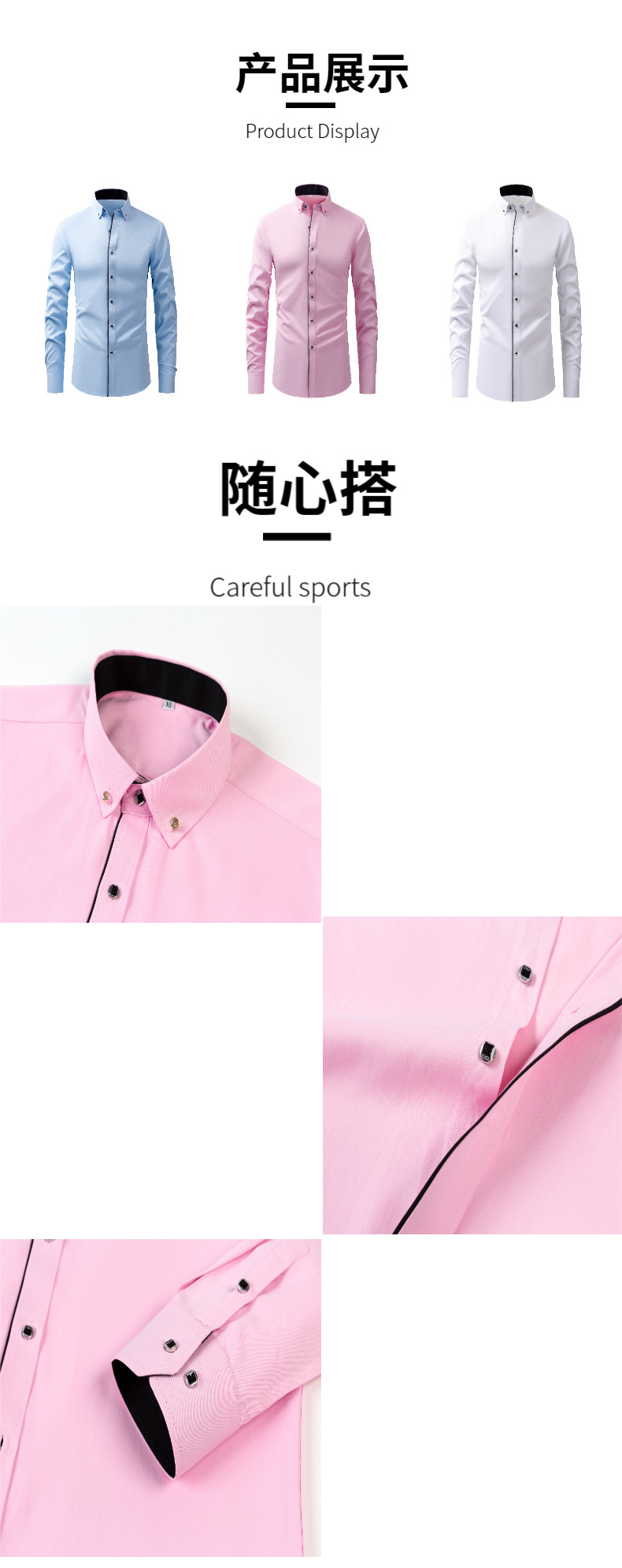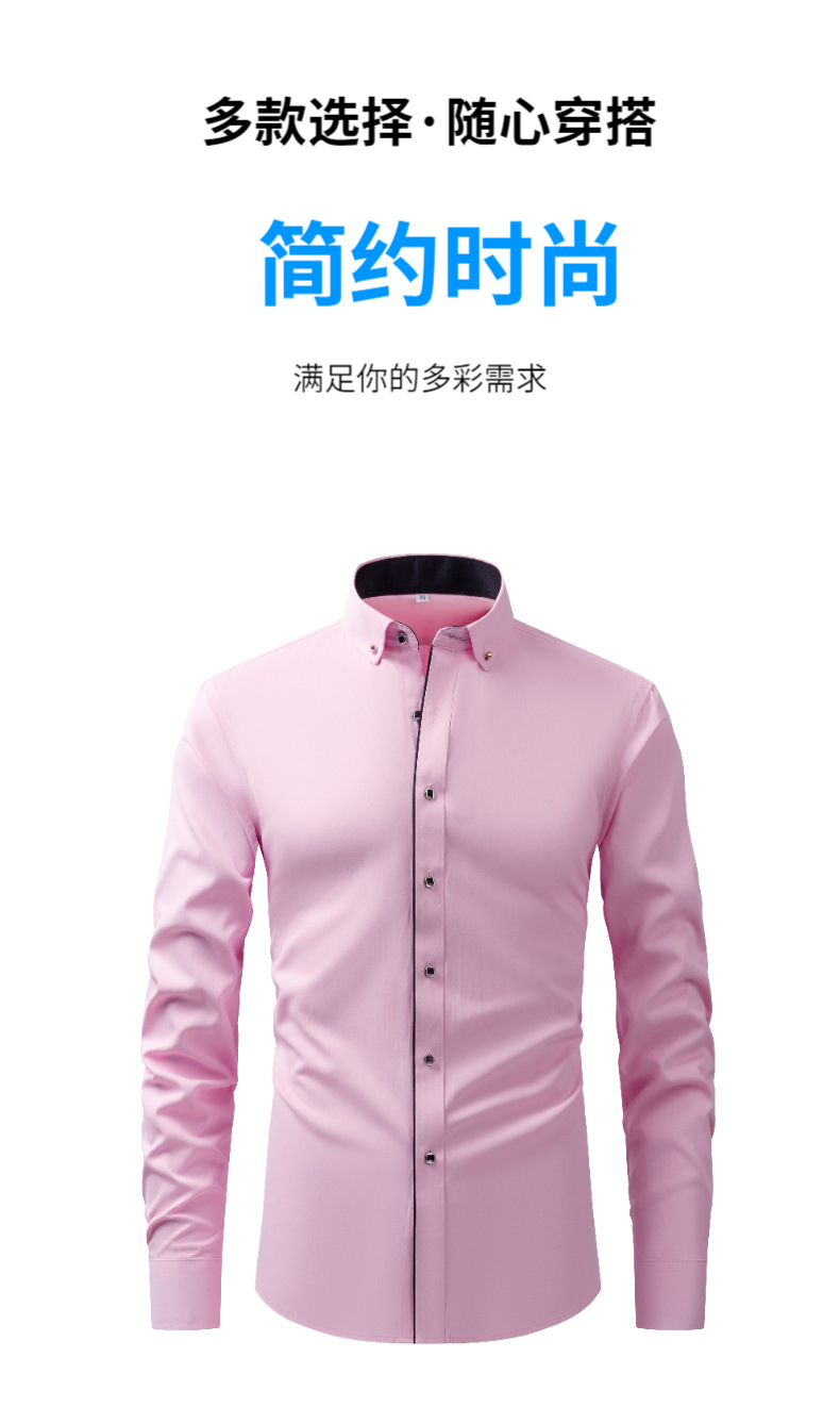 컬러 블록 스탠드 칼라 셔츠 남성 긴팔 셔츠 남성 여름 비즈니스 단색 통기성 셔츠 청년 및 중년 전문 정장스토어 가기