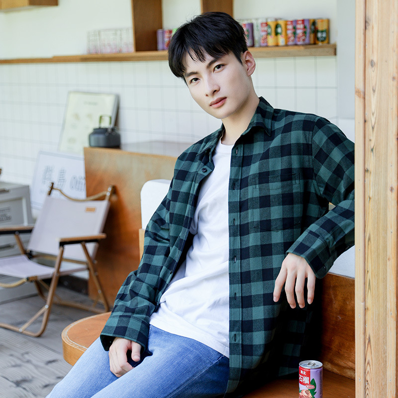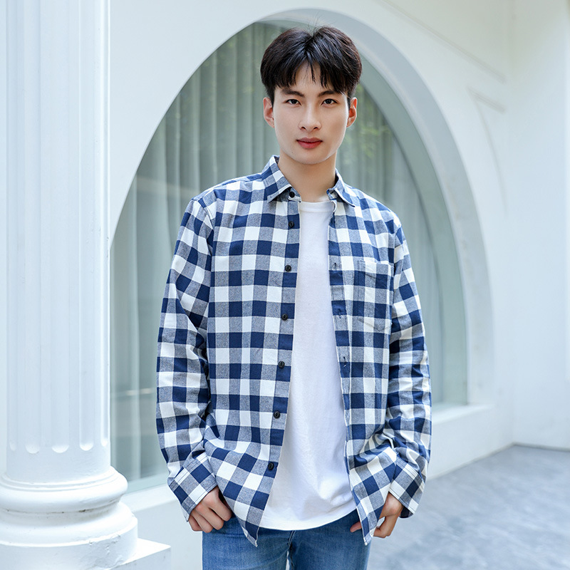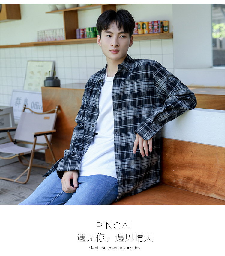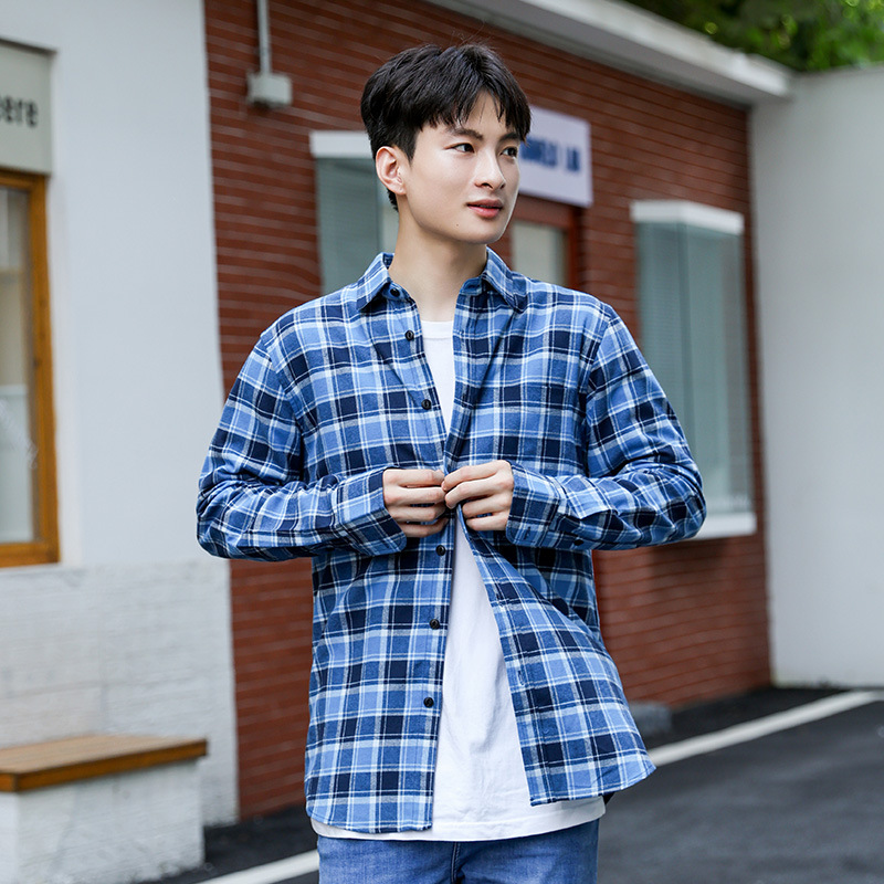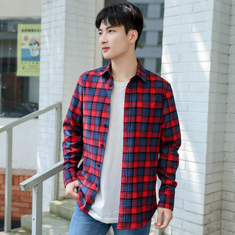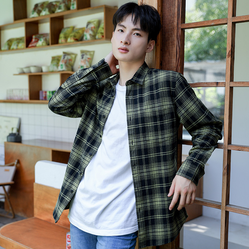 2025 새로운 옷깃 남자 격자 무늬 셔츠 탑 캐주얼 봄 셔츠 한국식 코튼 코트 셔츠스토어 가기