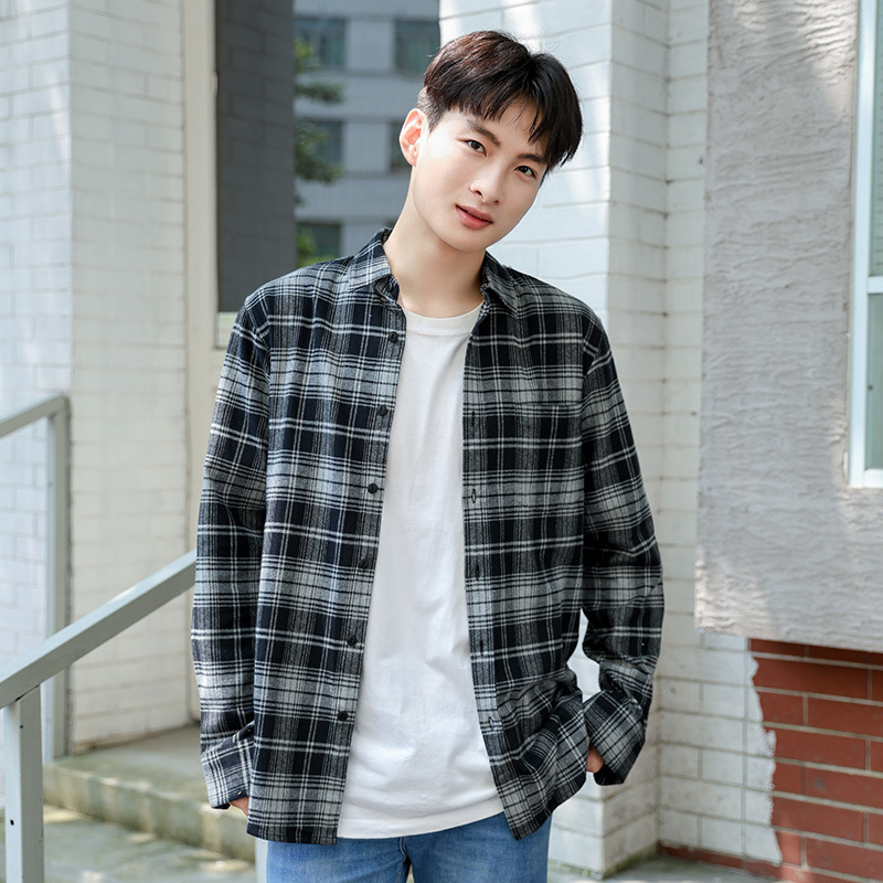 2025 새로운 옷깃 남자 격자 무늬 셔츠 탑 캐주얼 봄 셔츠 한국식 코튼 코트 셔츠