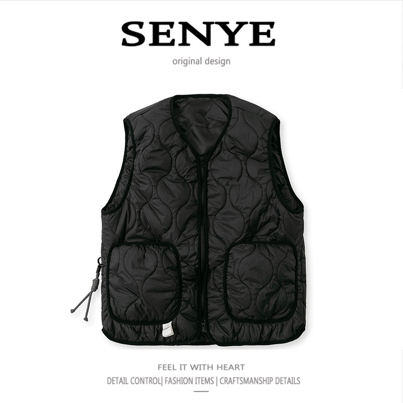 가을과 겨울 경량 다이아몬드 면 패딩 재킷 조끼 남성용 매일웨어 허리 코트 느슨한 유행 조끼 민소매 캐주얼 올 매치 재킷스토어 가기