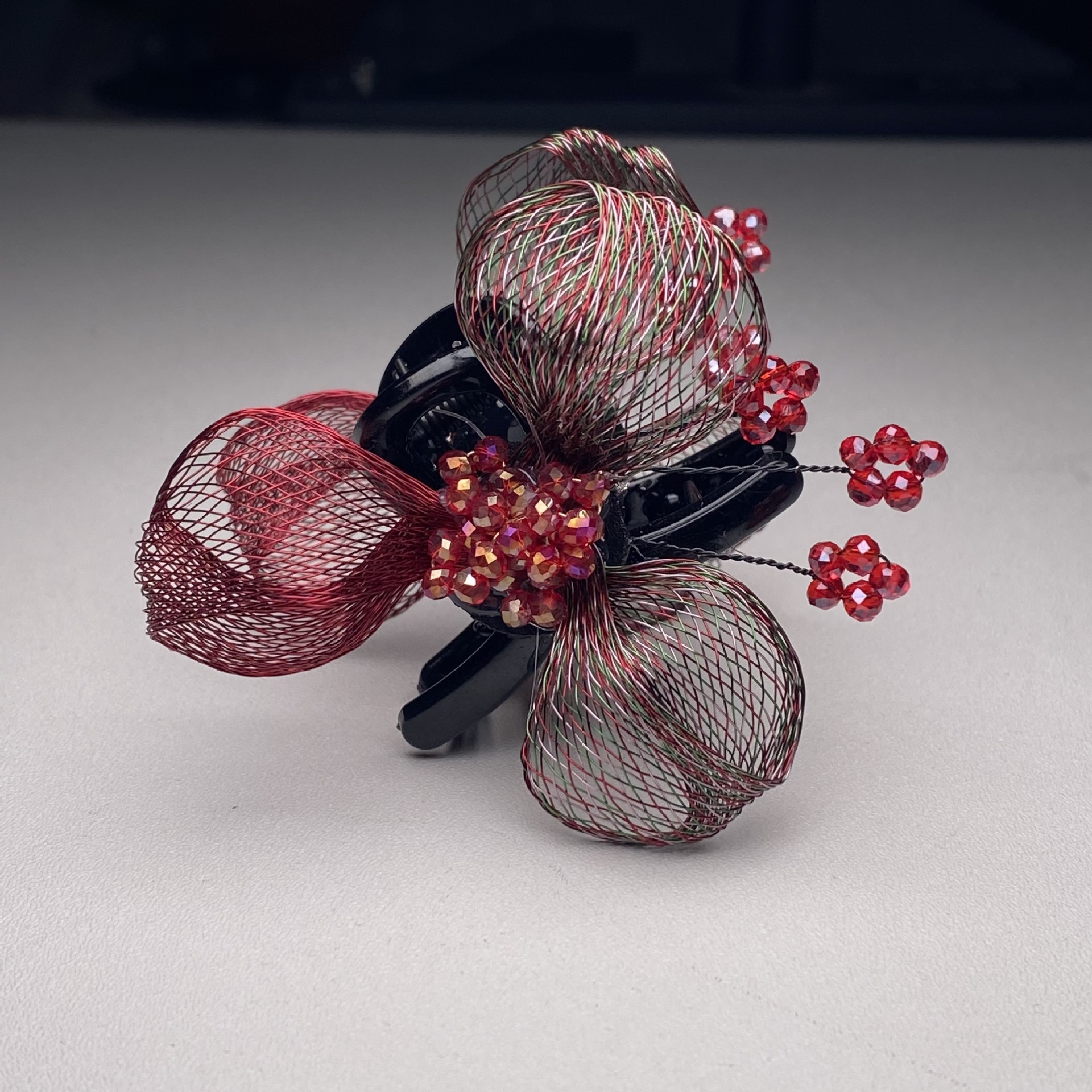 • 실크 구리 와이어 플라워 와인 레드 [그리퍼 약 11cm 38g