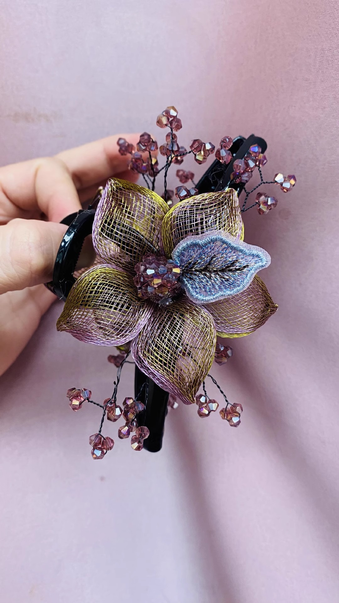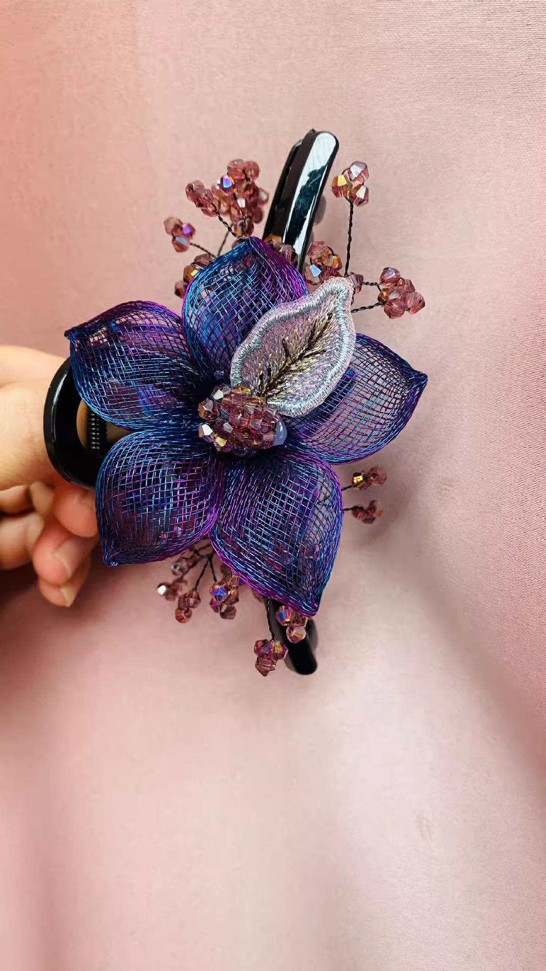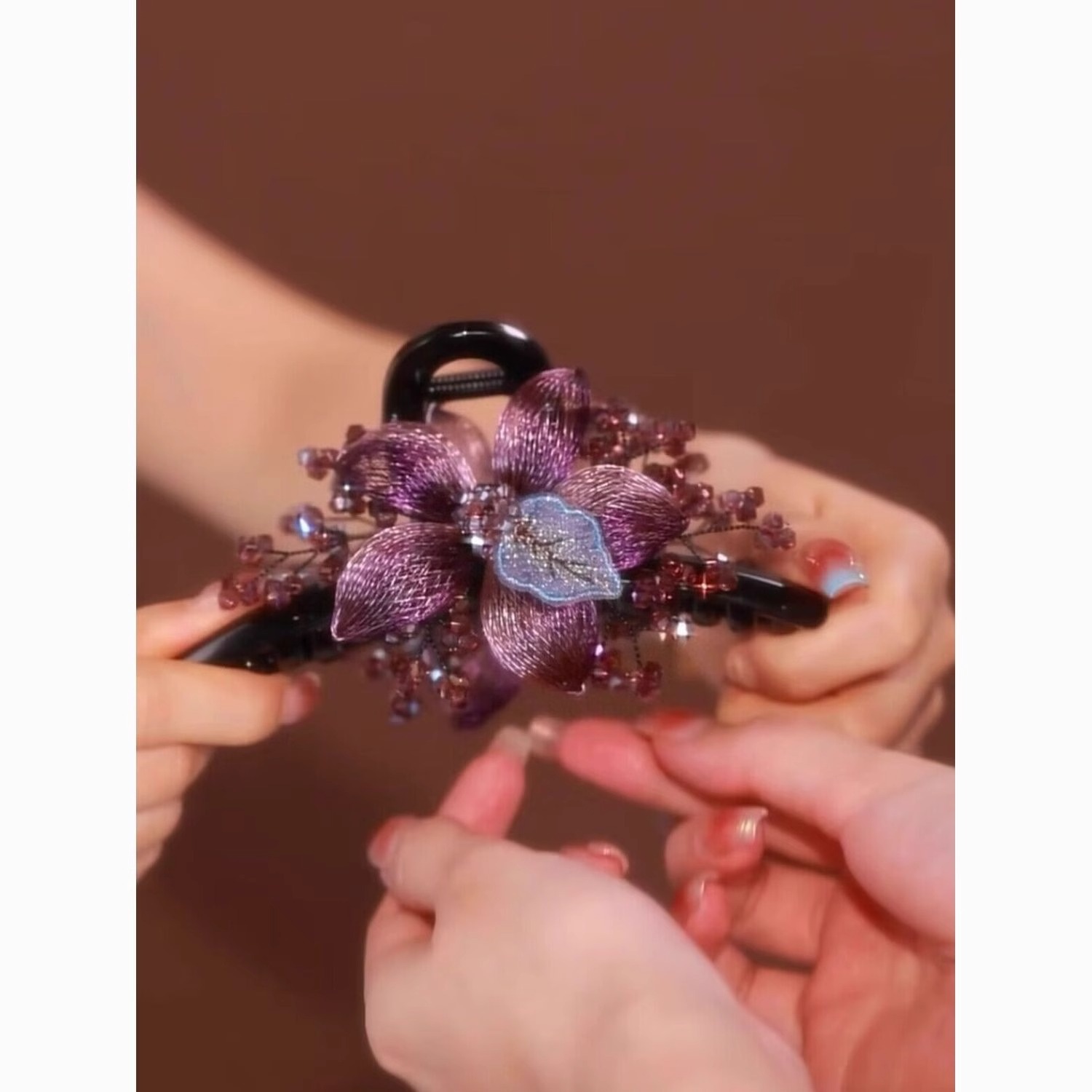 • 퍼플 레드 블랙 싱글 플라워 양면 비즈 클립 13cm