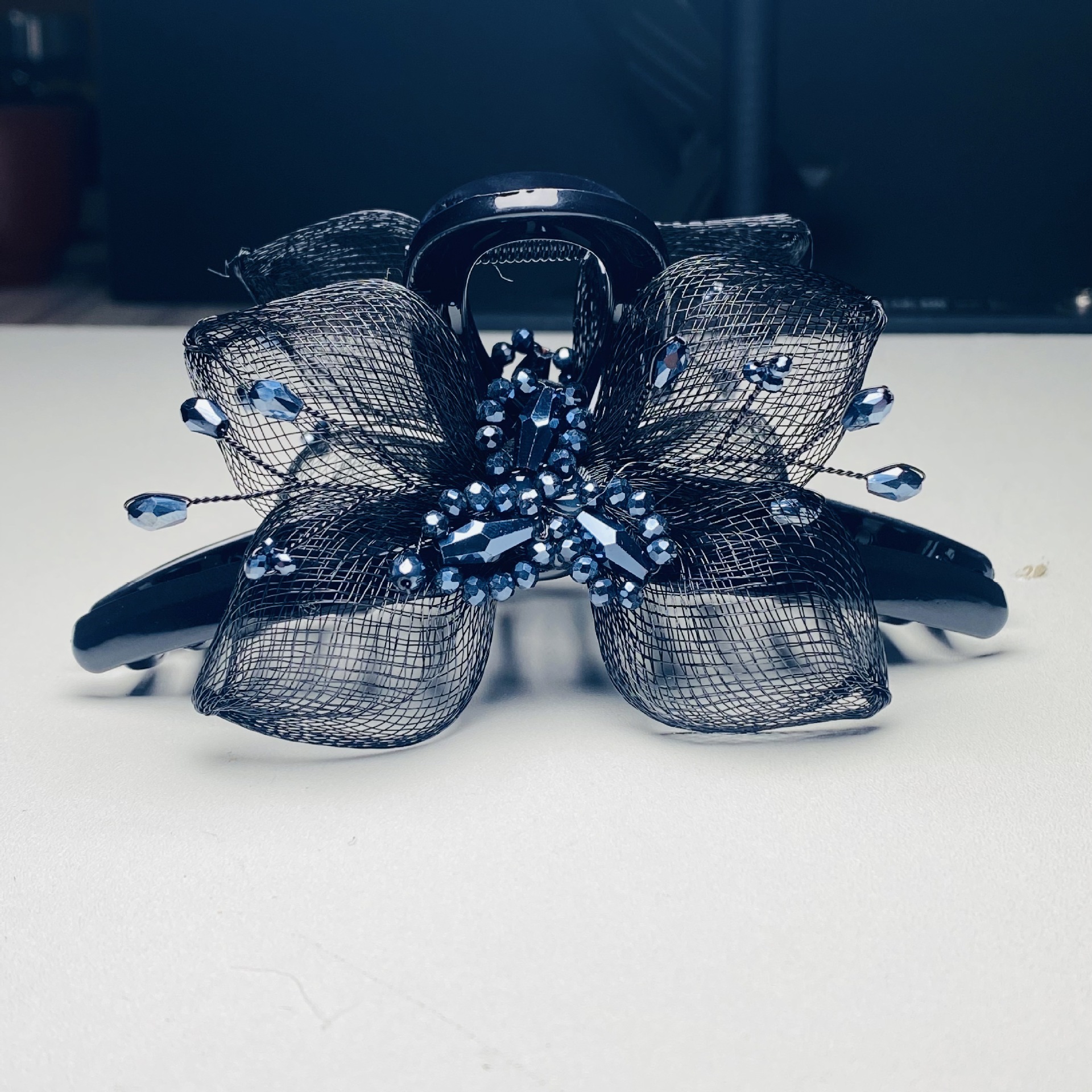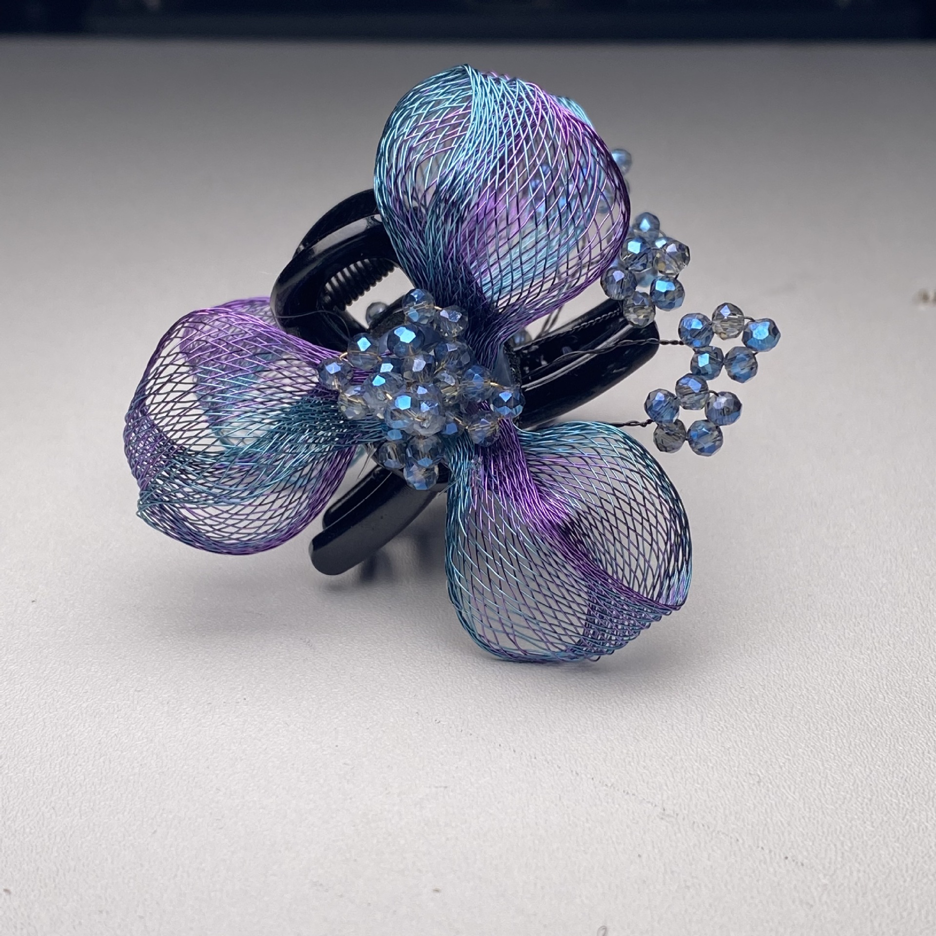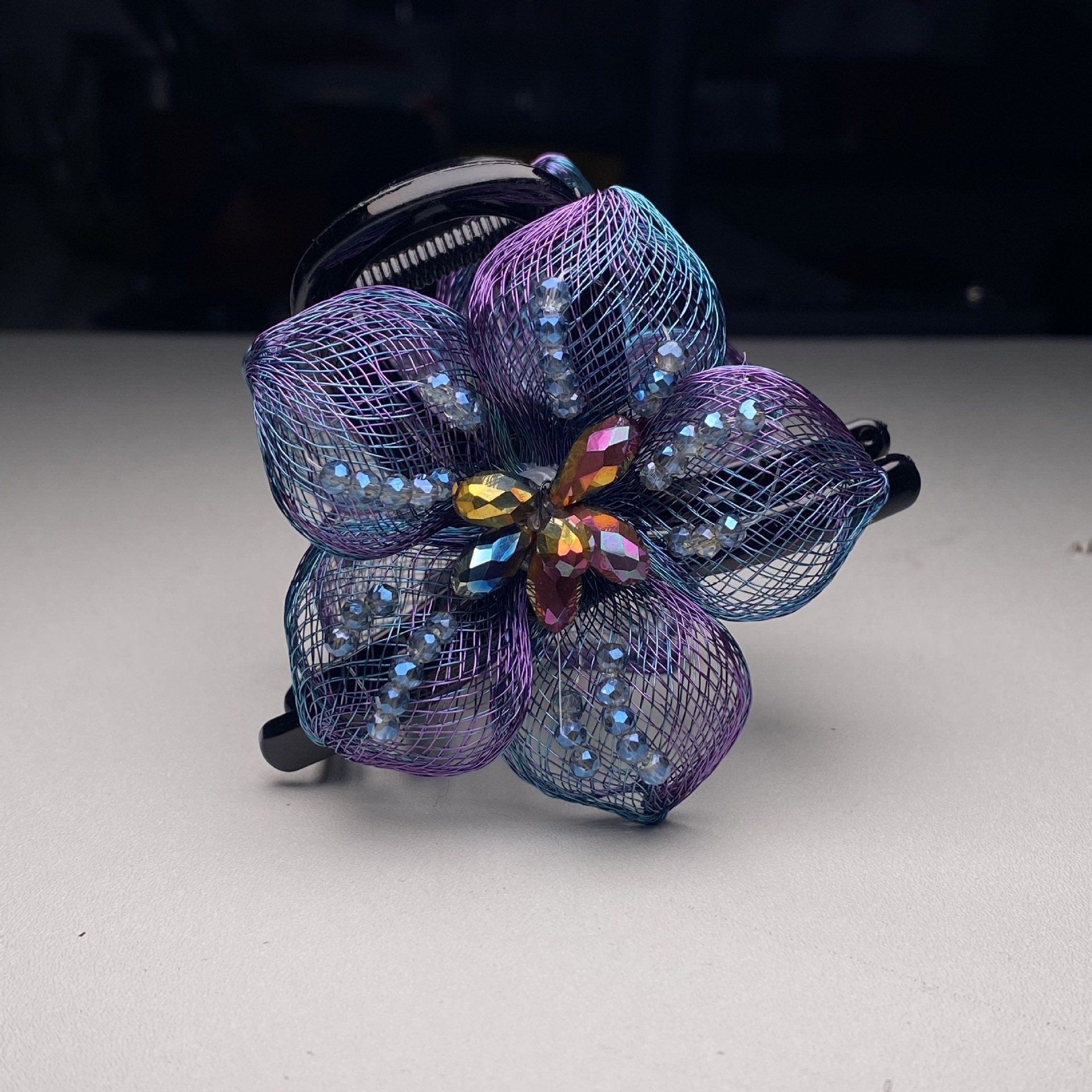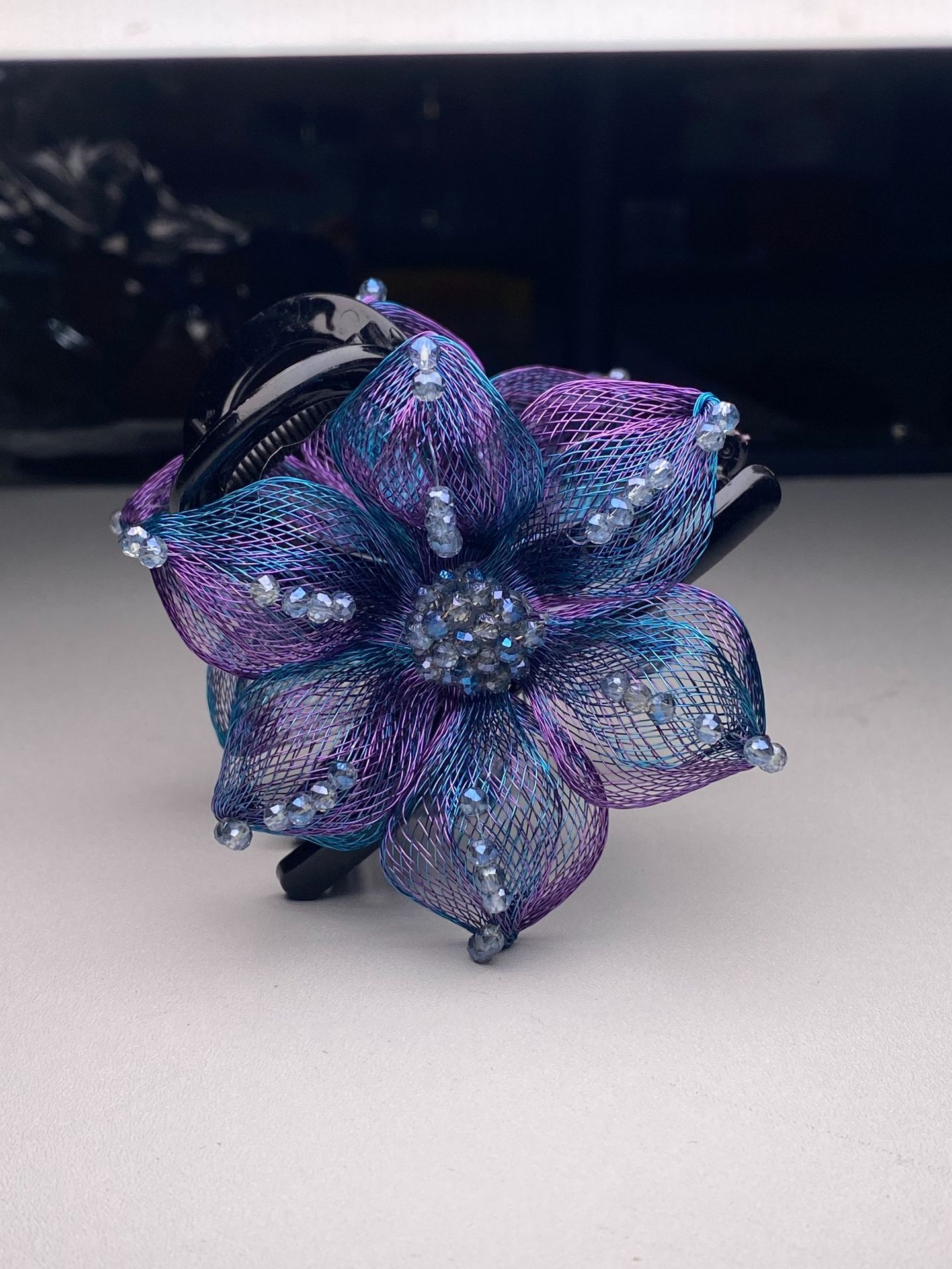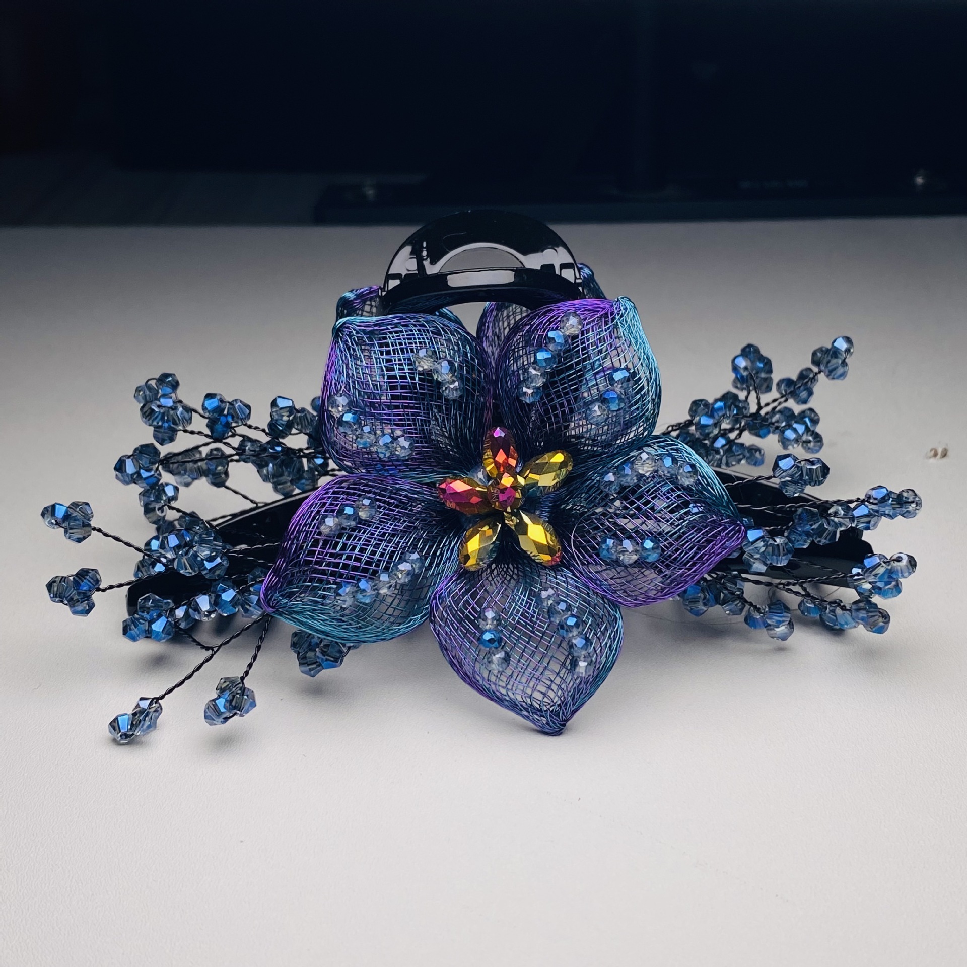 • 파란색 6잎 비즈 플라워 집게핀 약 8cm 34g