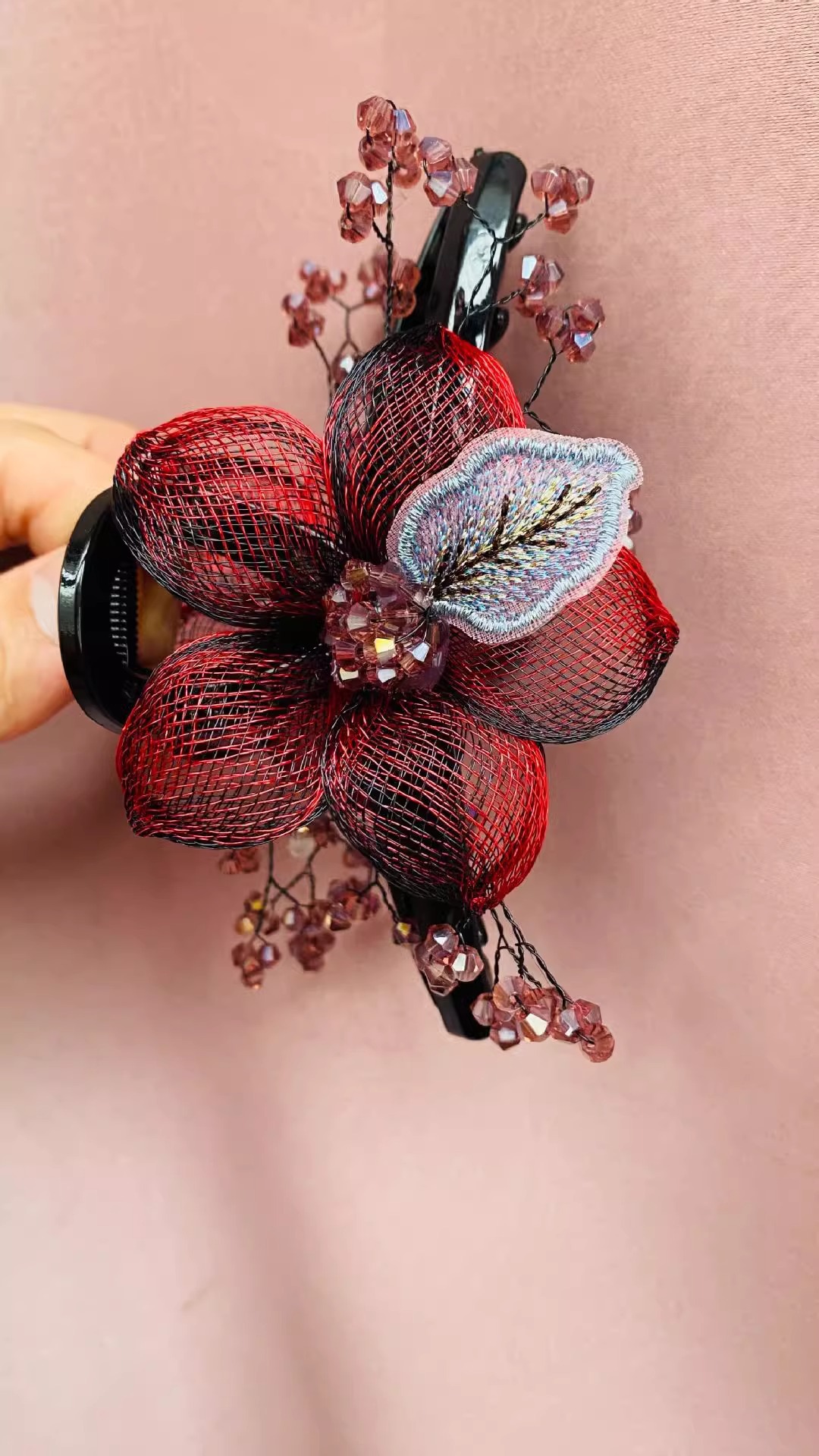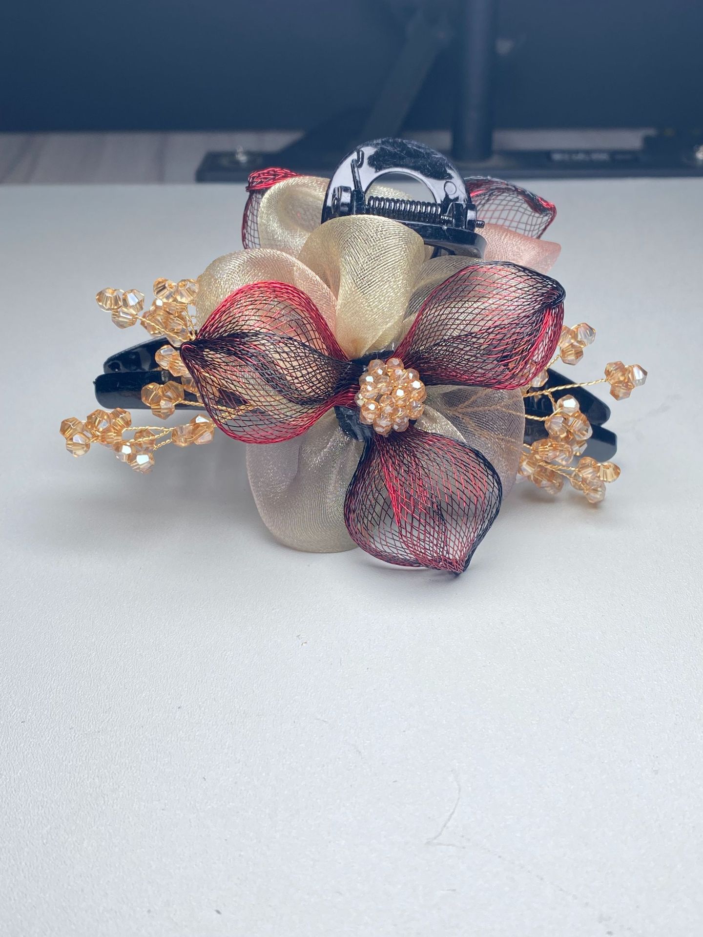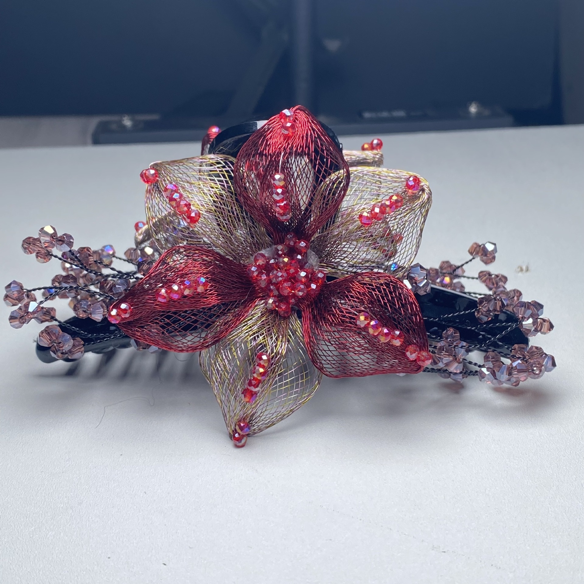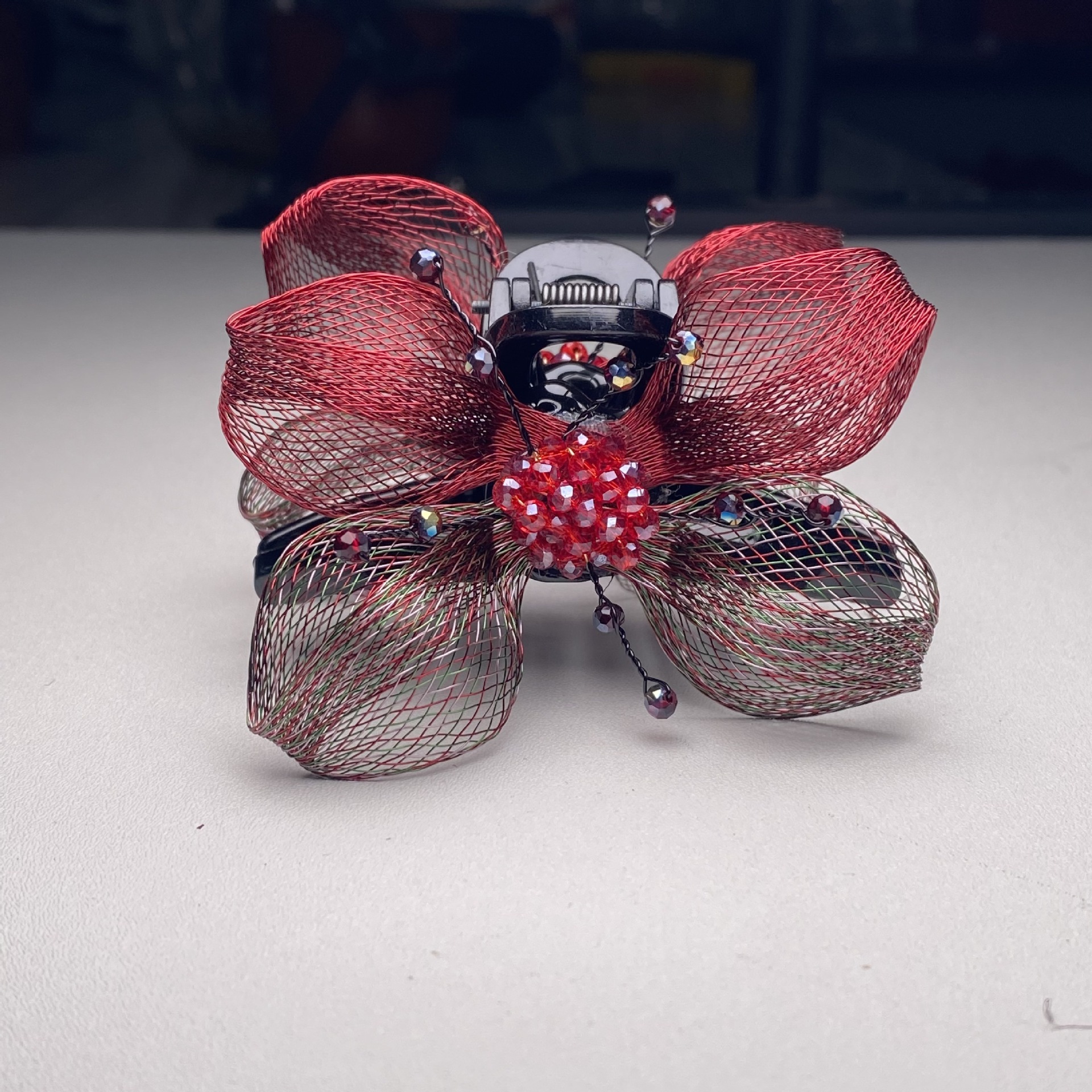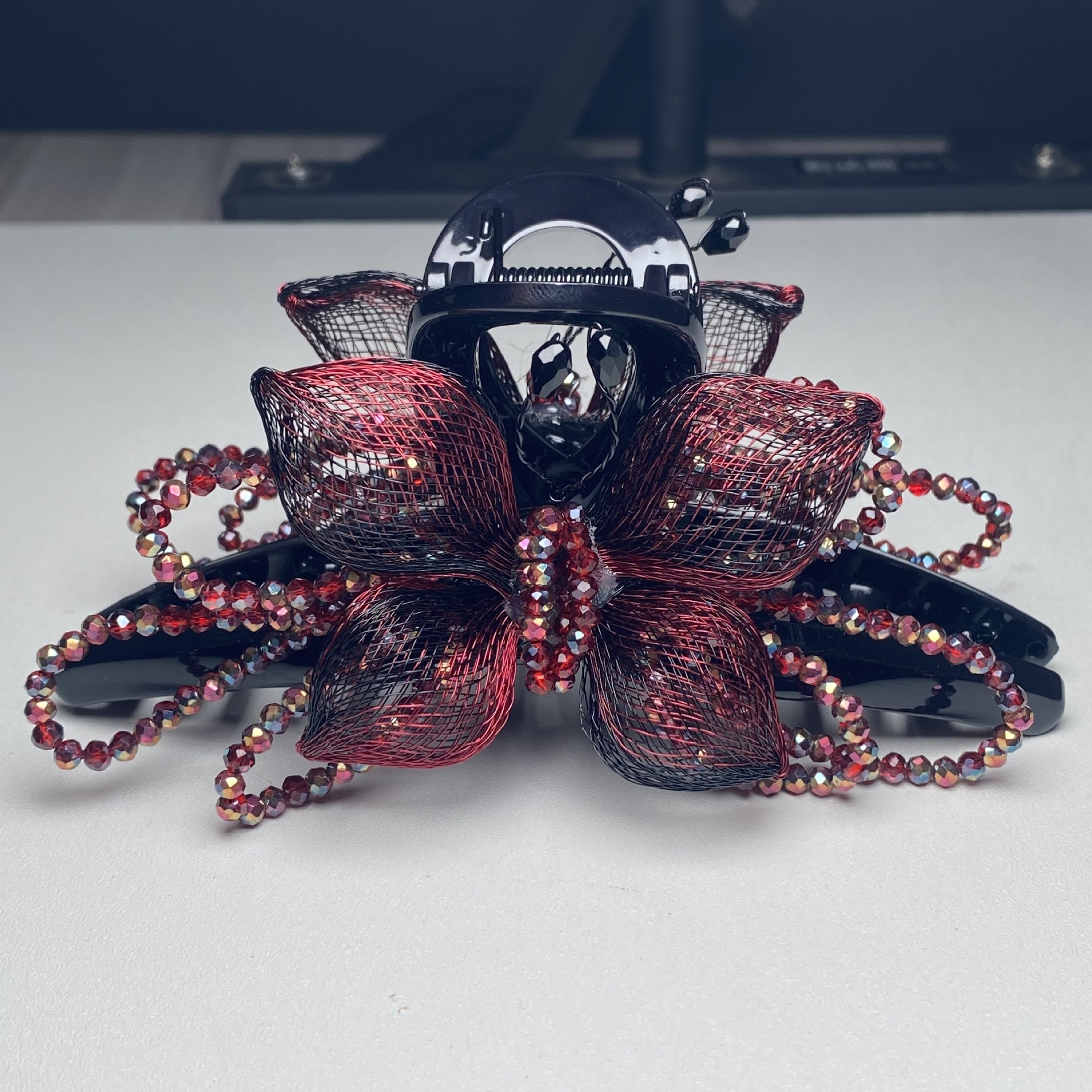 • 다채로운 레드 모조 크리스탈 비즈 집게핀 약 8cm, 약 34g